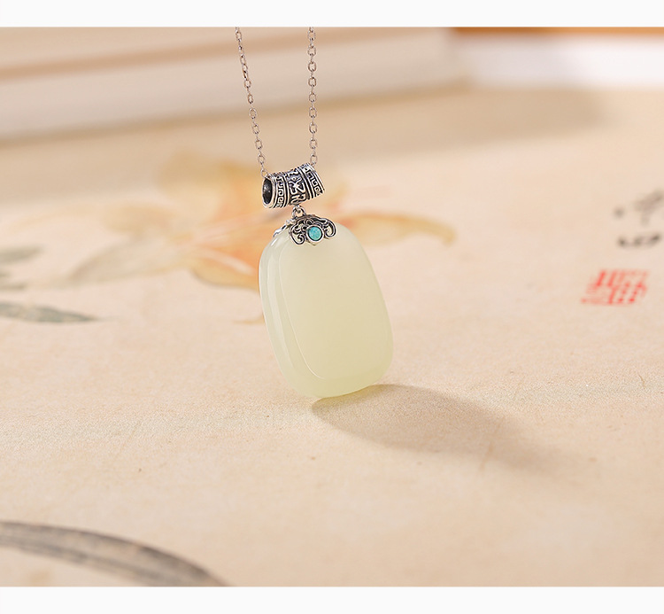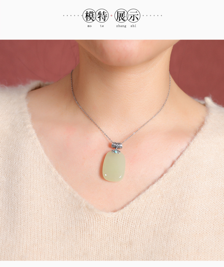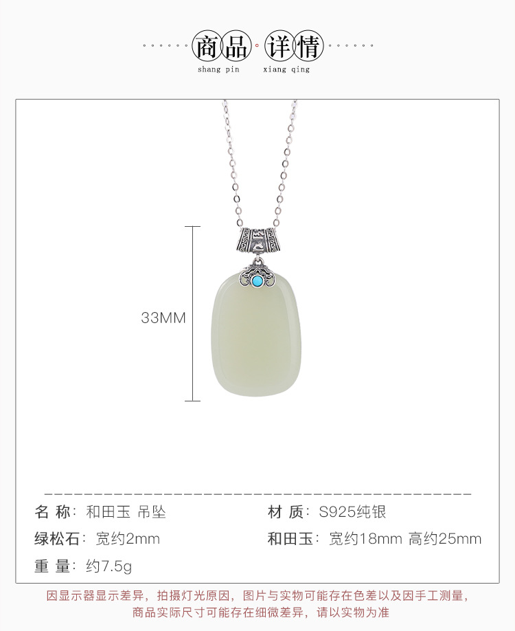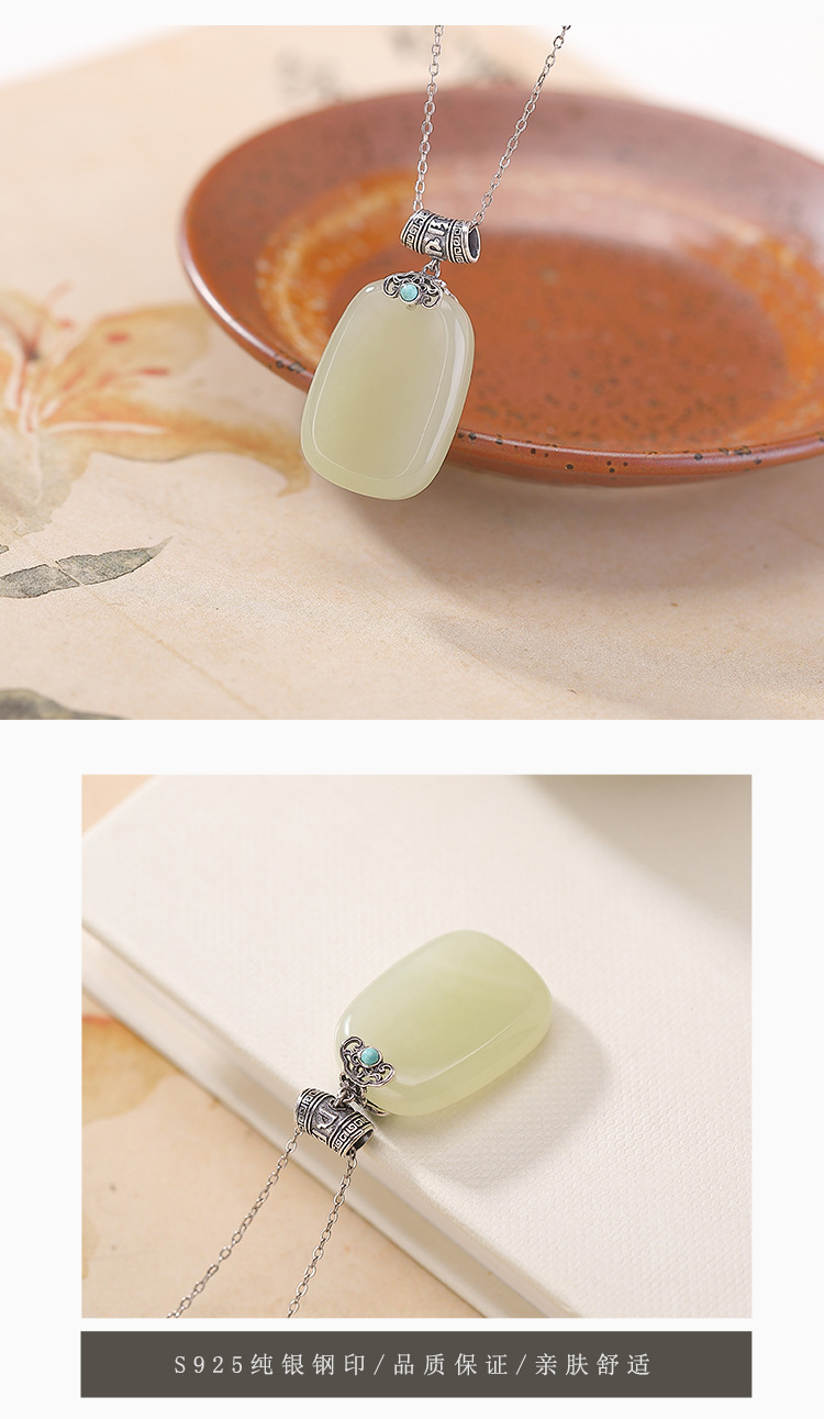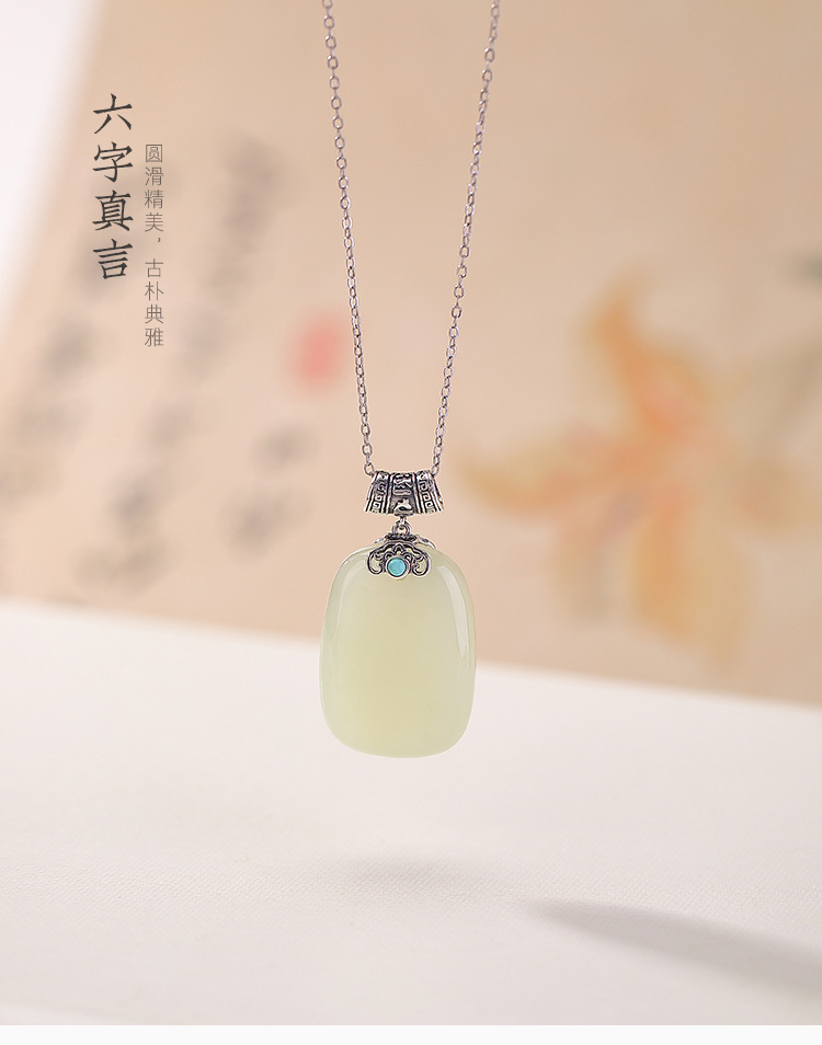 【真言无事】S925纯银天然和田玉回纹六字真言平安无事牌银吊坠【CW-DZ07141】