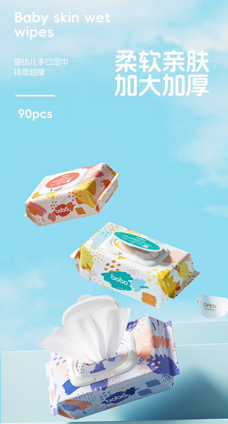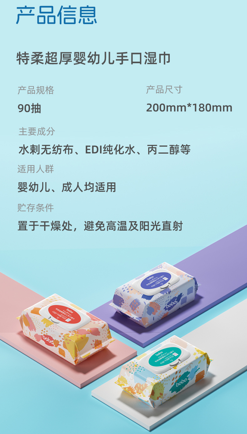 【箱规】bobo 特柔加厚 手口 湿巾 90抽