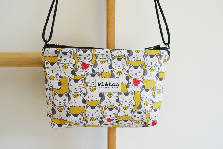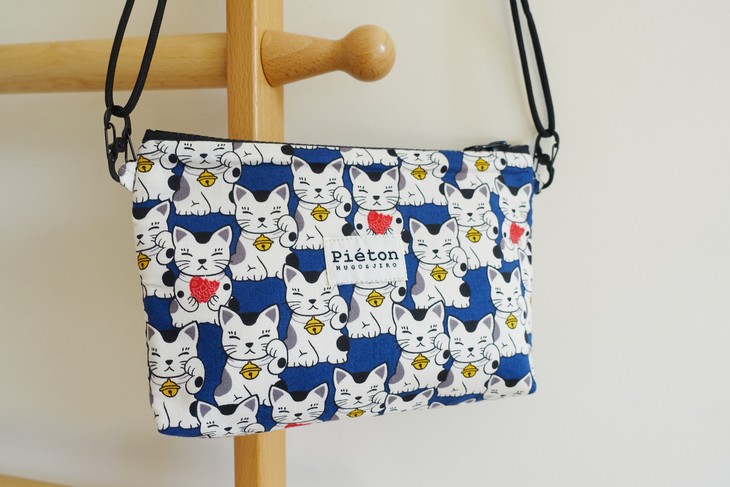 HUJI祤集pieton斜挎包风の花招财猫猫和小鱼