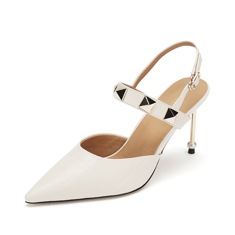 westory女鞋春季新款羊皮尖头高跟鞋细跟浅口婚鞋52641