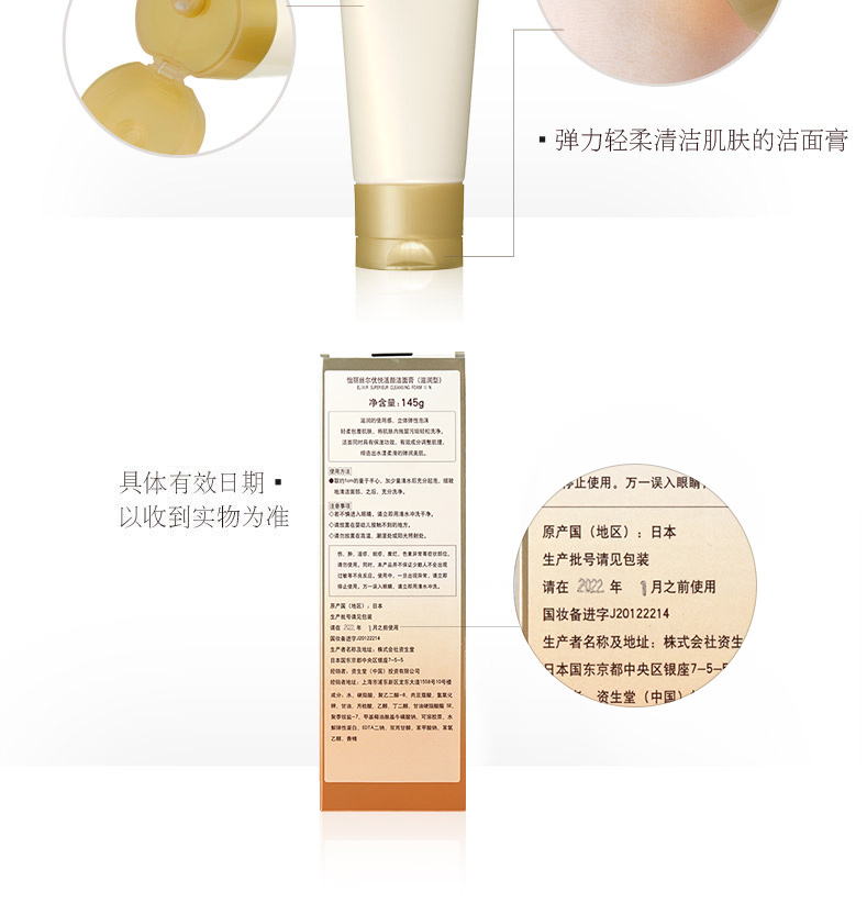 【新老包装随机】日本怡丽丝尔优悦活颜洁面膏145g 深层清洁保湿滋润洗面奶