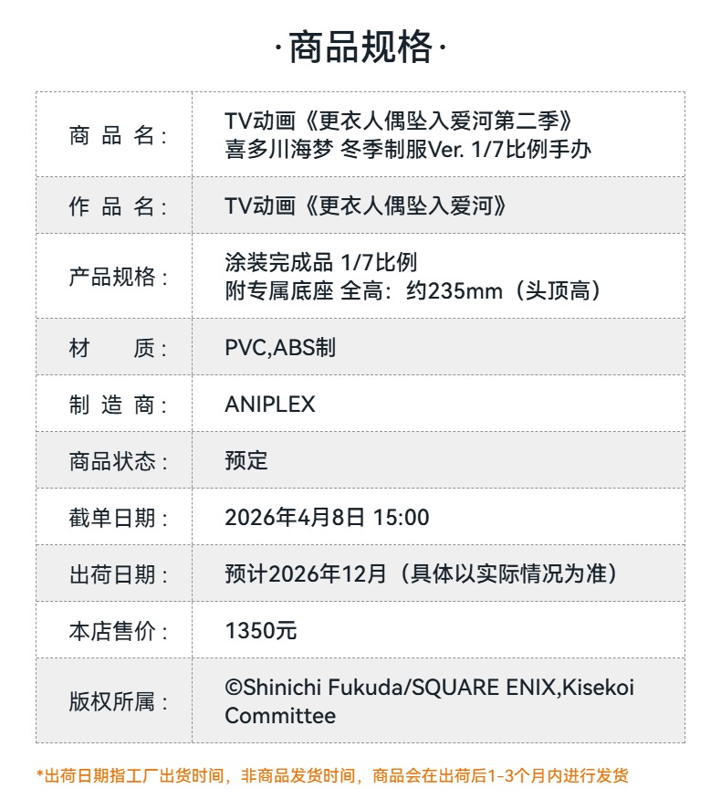 【GSC预售定金】1/7标准比例 喜多川海梦 冬季制服Ver. TV动画《更衣人偶坠入爱河第二季》