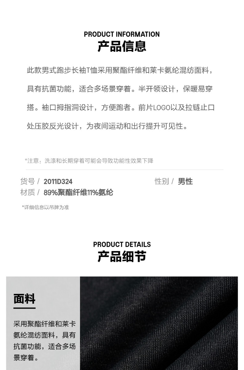 ASICS亚瑟士男式速干抗菌跑步长袖舒适保暖透气半开领运动T恤2011D324