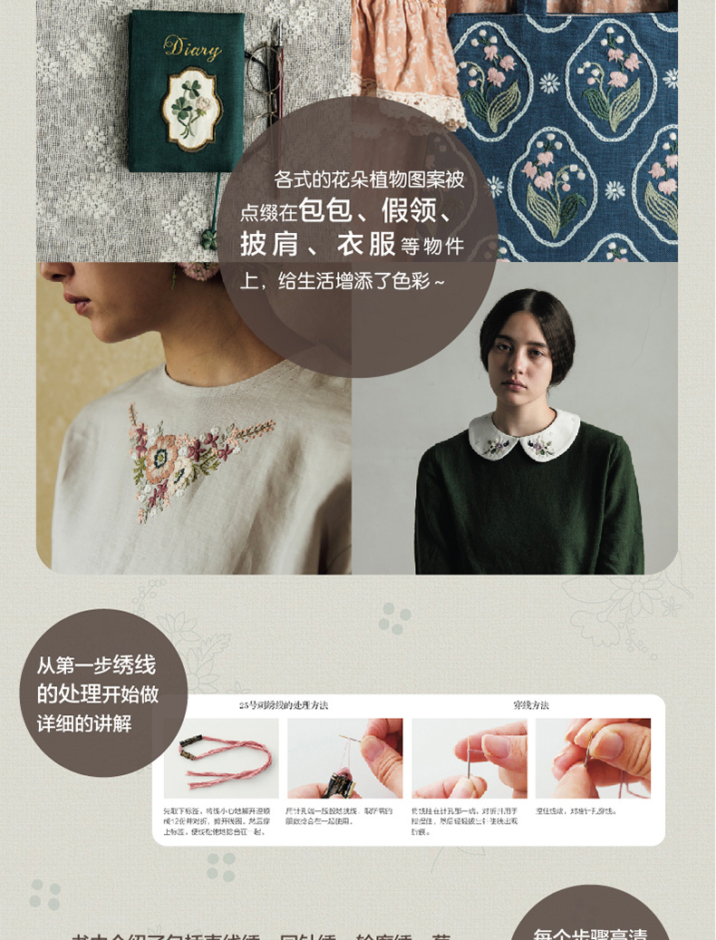 蓬莱和歌子 用刺绣装点的每日装束 刺绣书籍零基础图解步骤基本针法刺绣技巧 迷你小包三角形花束刺绣口金包束口包钥匙包制作diy书
