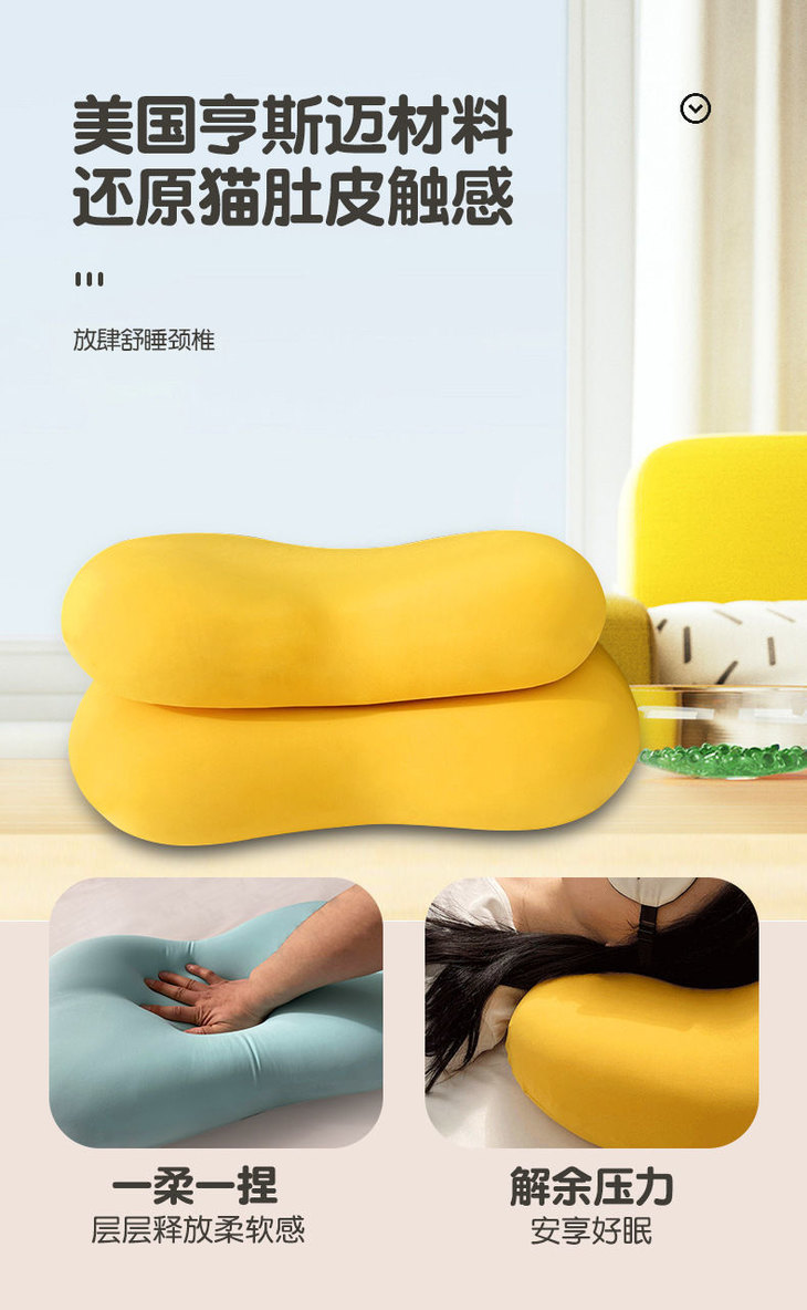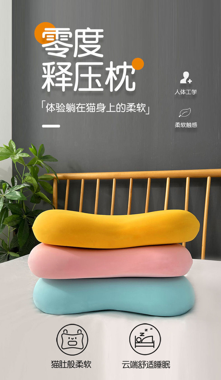 【躺在猫肚皮上睡觉有多爽?】美妆蛋猫肚皮枕 记忆棉枕 回弹护颈 卧室侧睡枕 柔软单人解压枕头