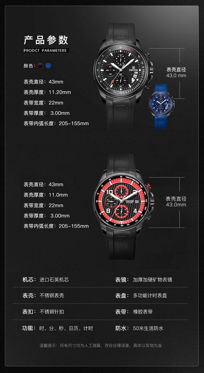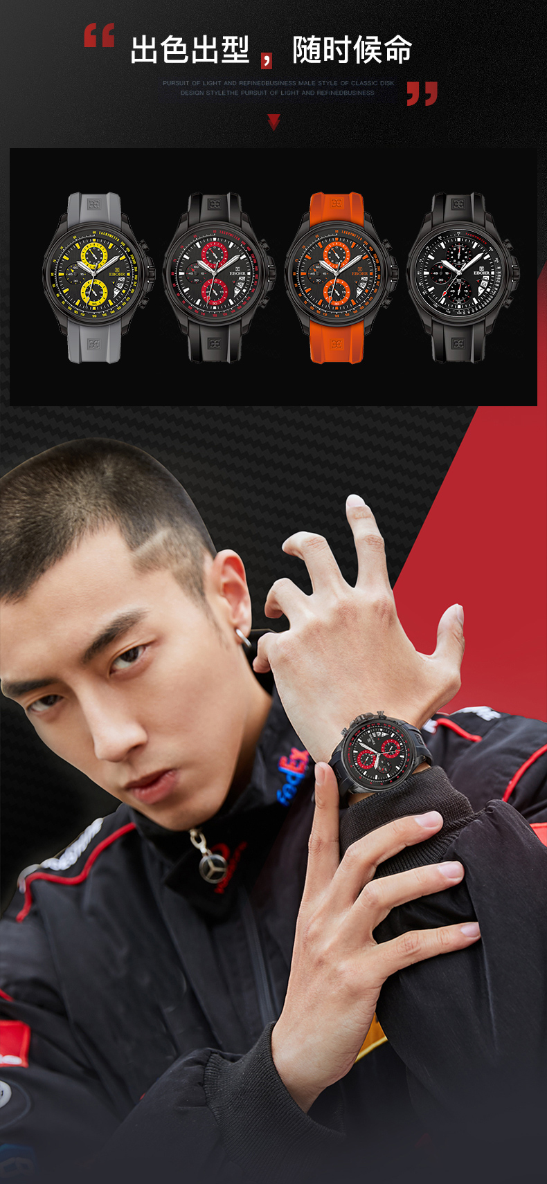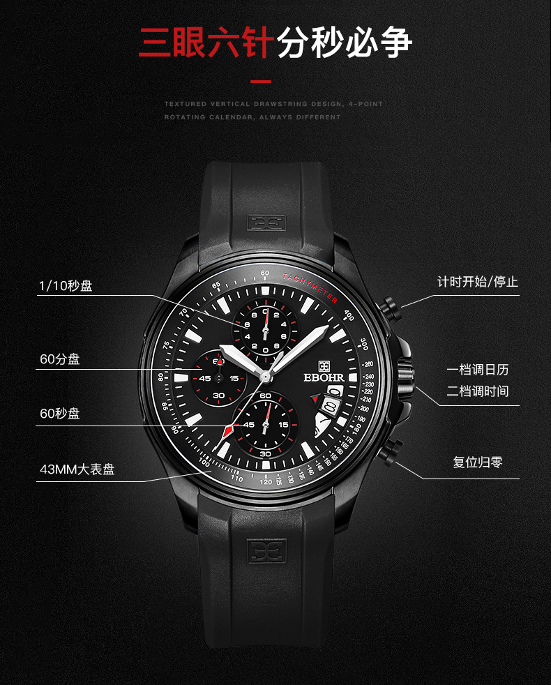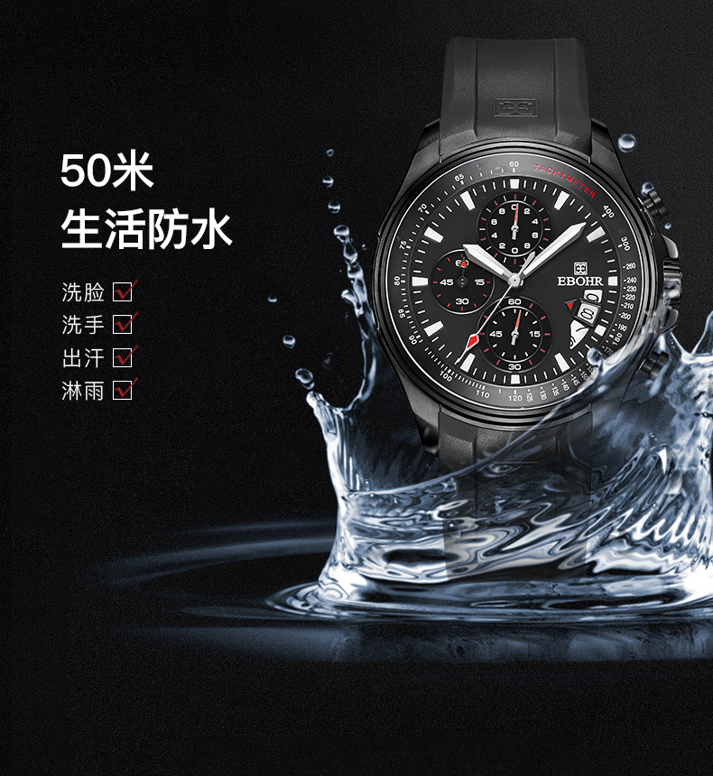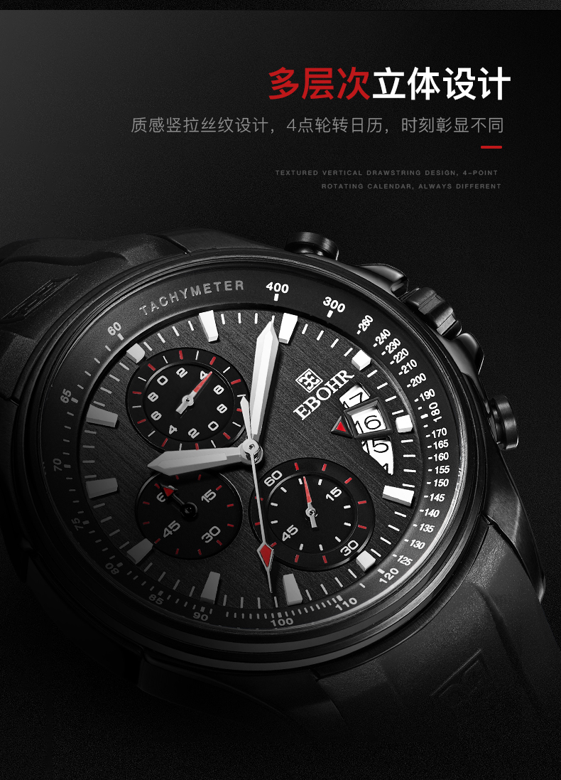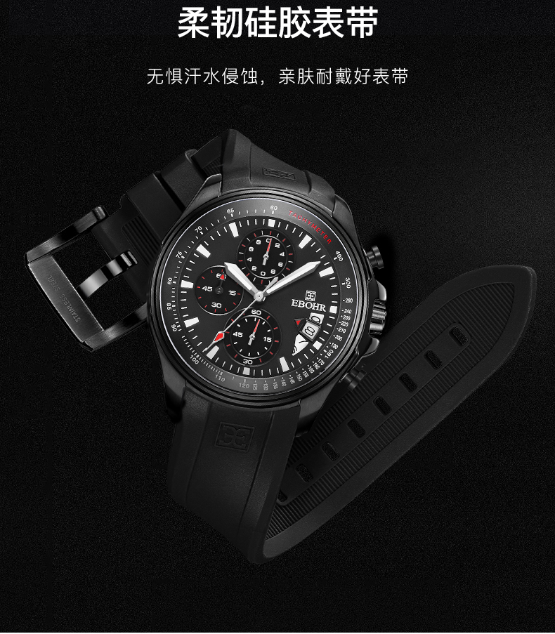 依波表EBOHR男表潮流飞驰系列时尚百搭石英表男防水运动手表5134