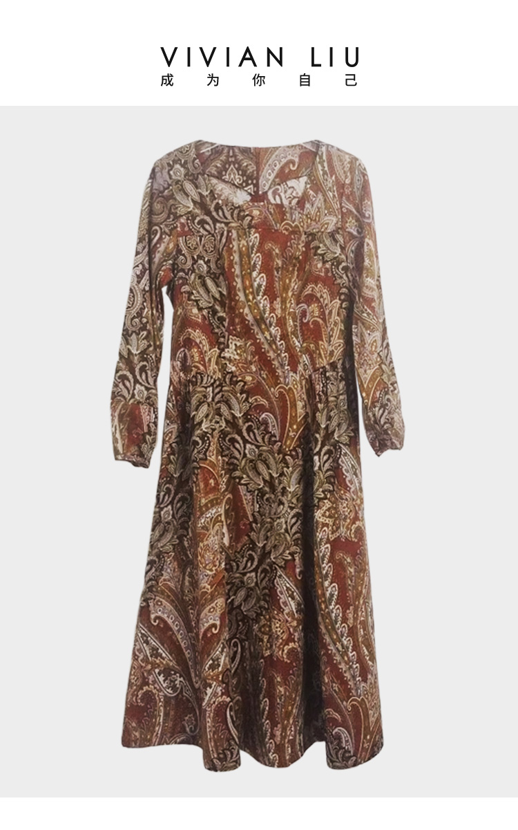 VIVIAN LIU薇薇安刘F2544103秋季女装新款灯笼袖收腰印花连衣裙