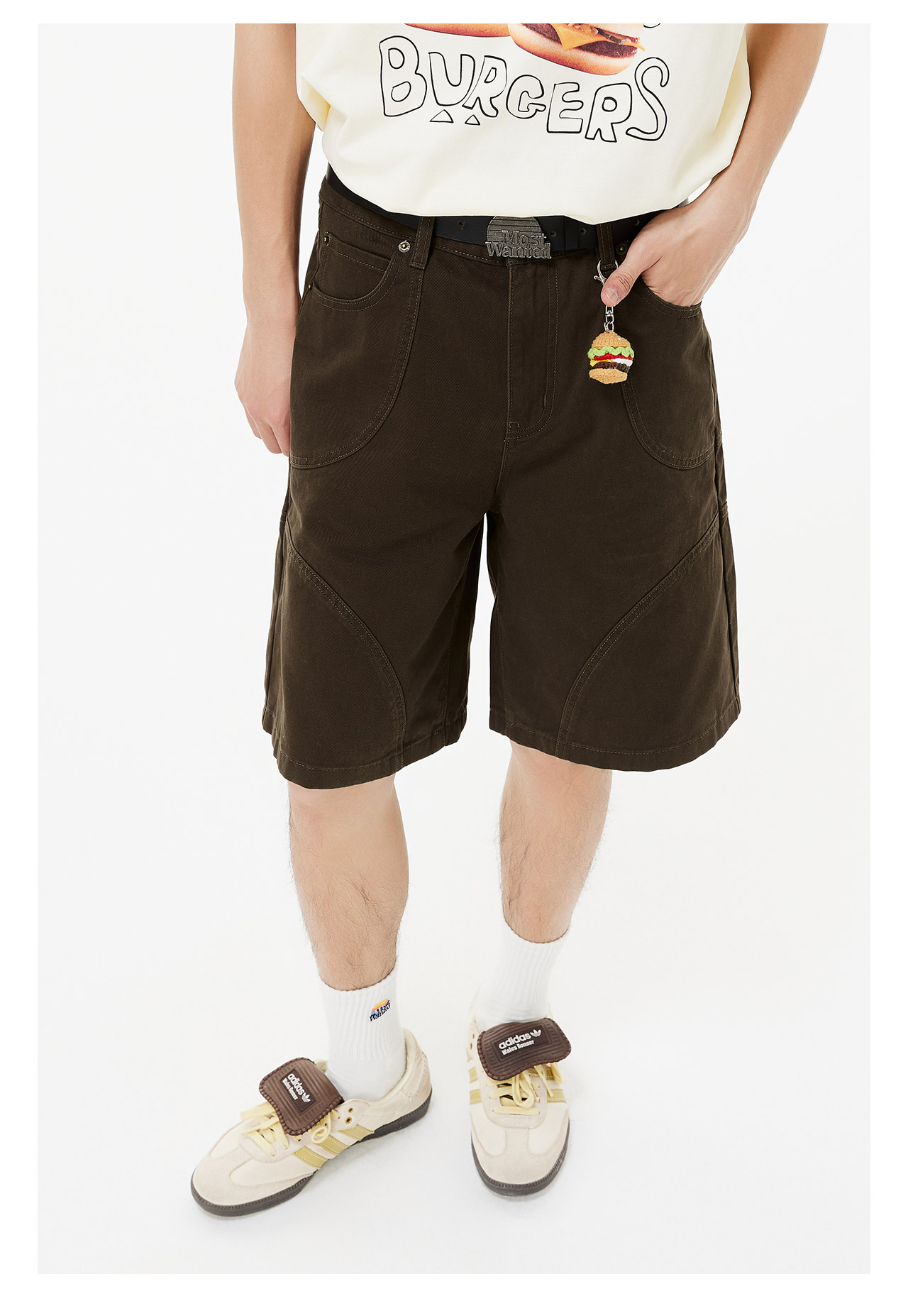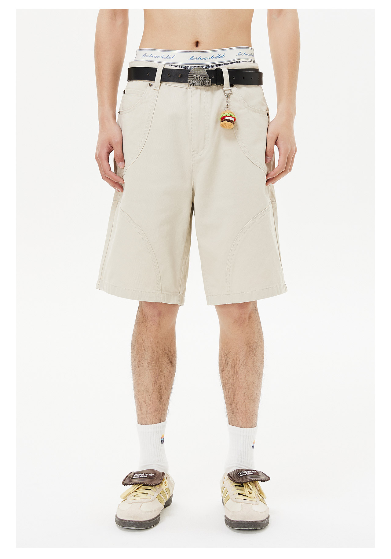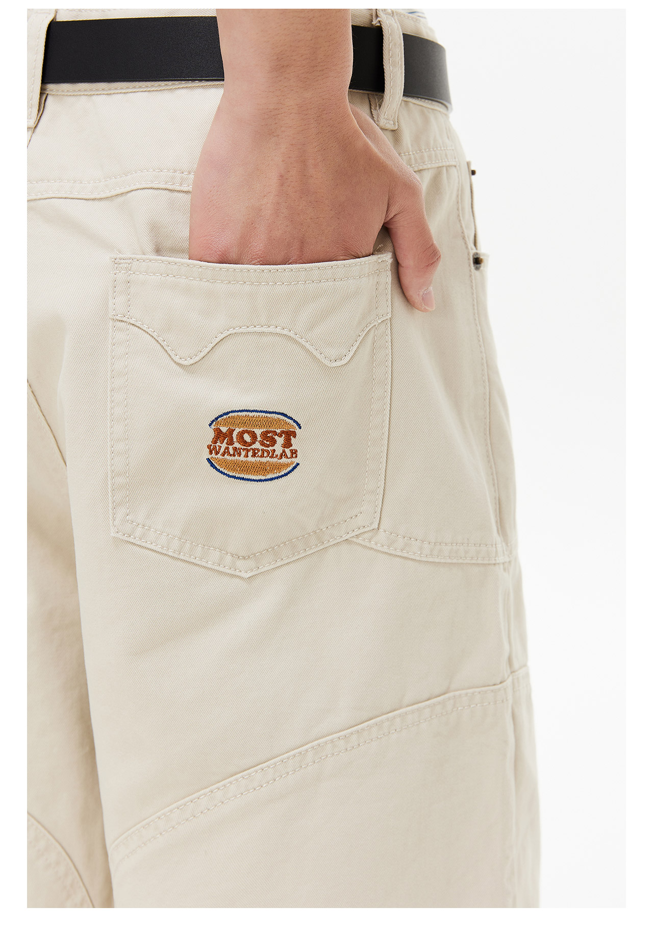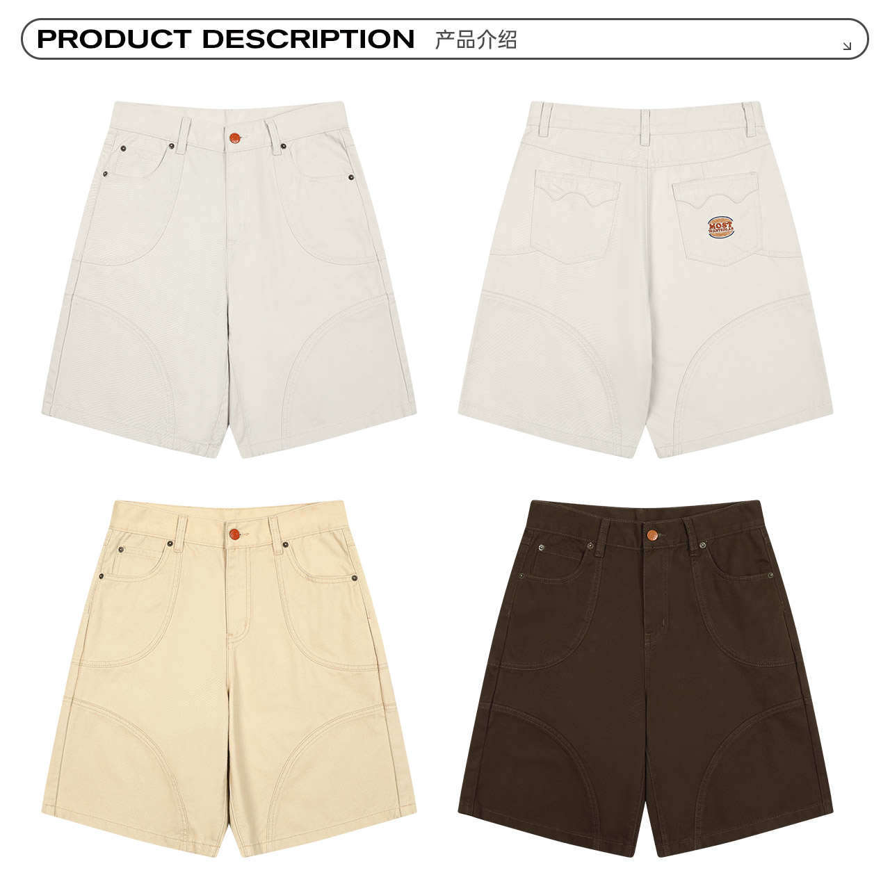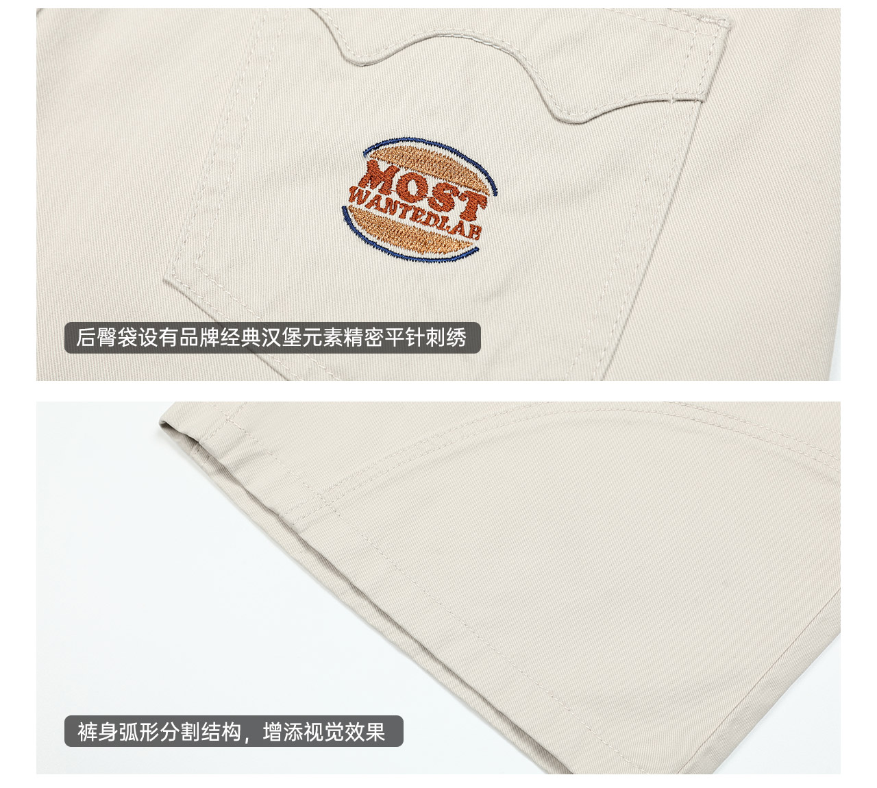 mostwantedlab彩虹/M2412126/汉堡刺绣弧形分割5分裤新款夏季纯棉宽松短裤男