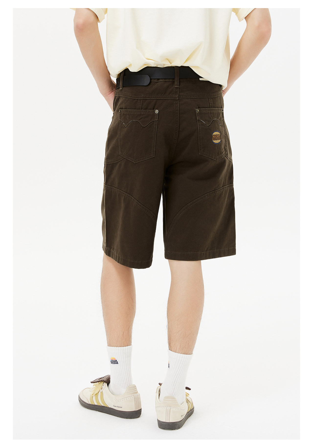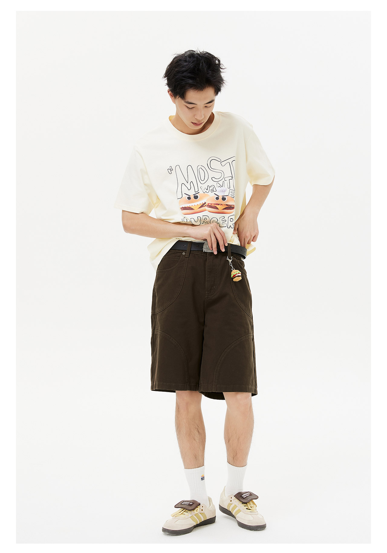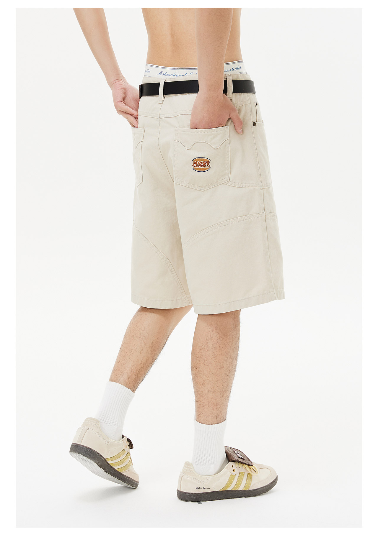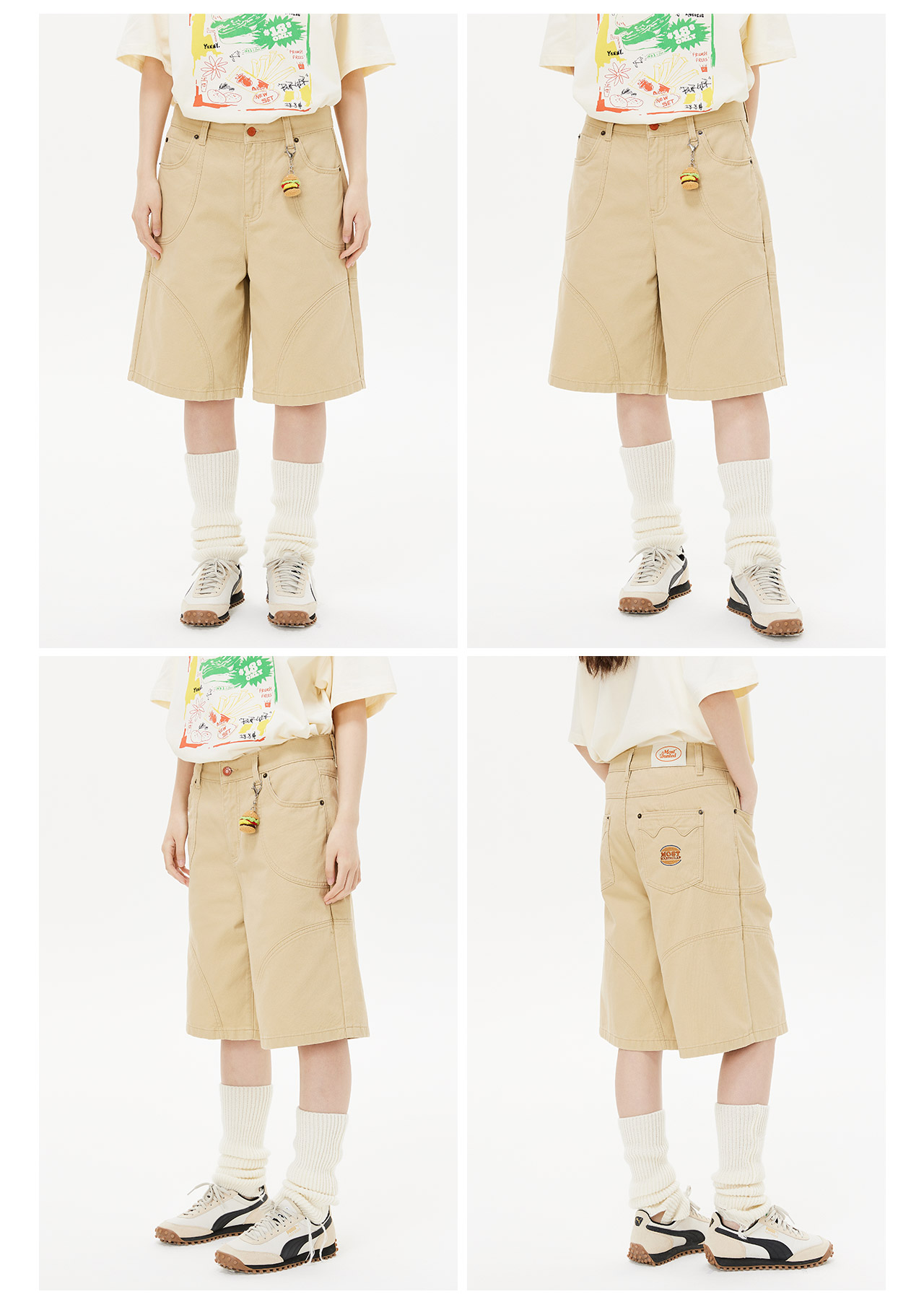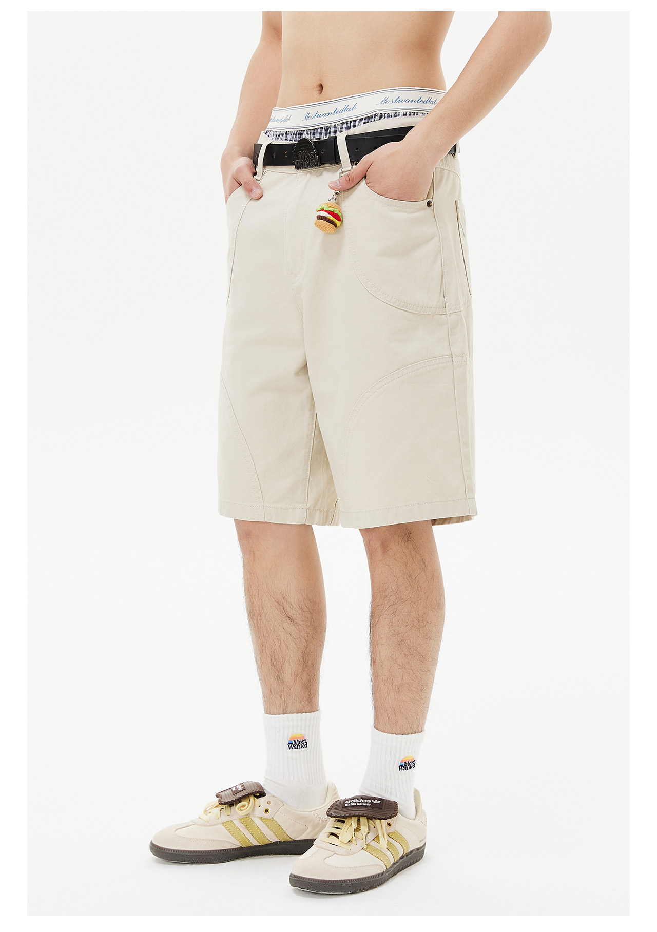 mostwantedlab彩虹/M2412126/汉堡刺绣弧形分割5分裤新款夏季纯棉宽松短裤男