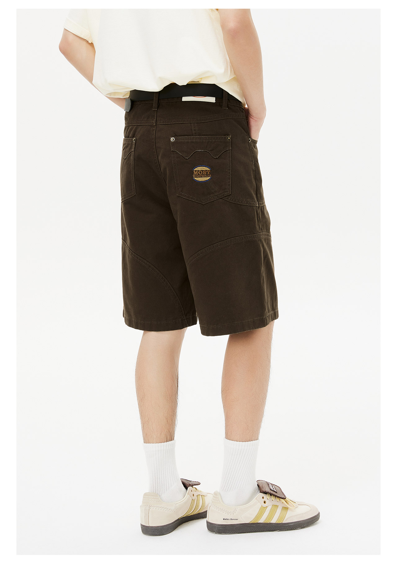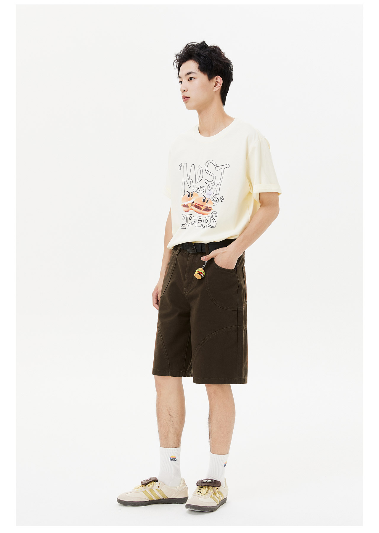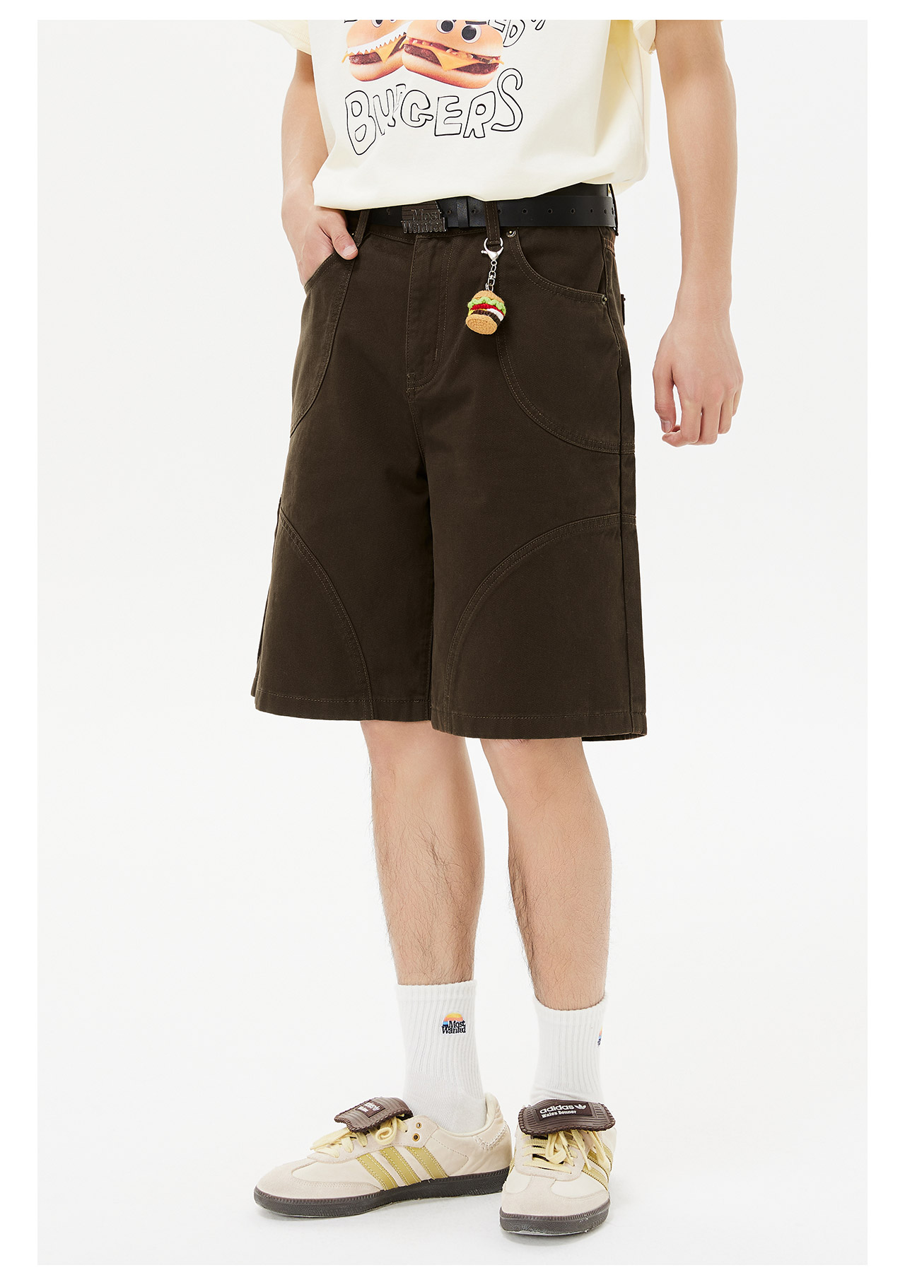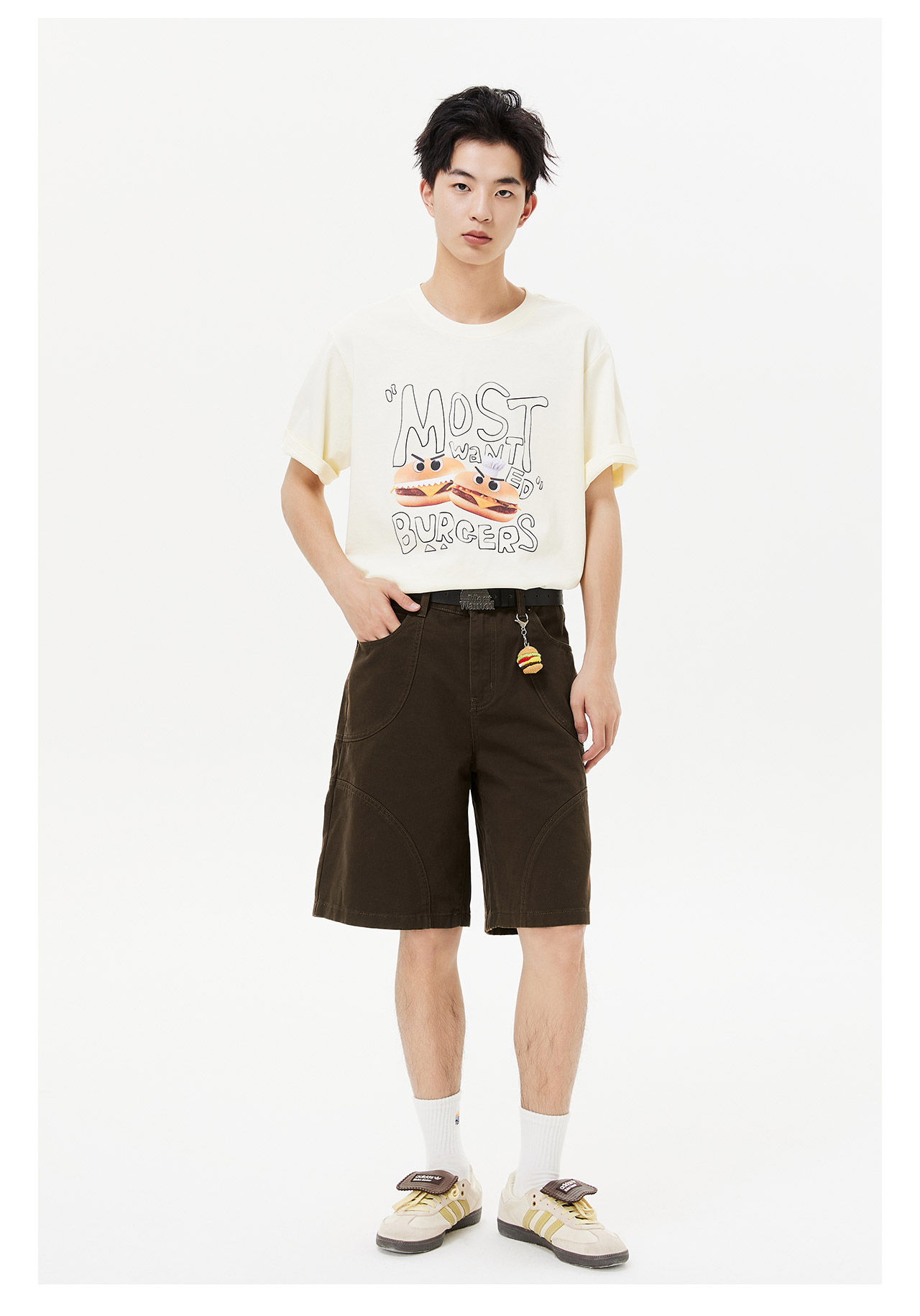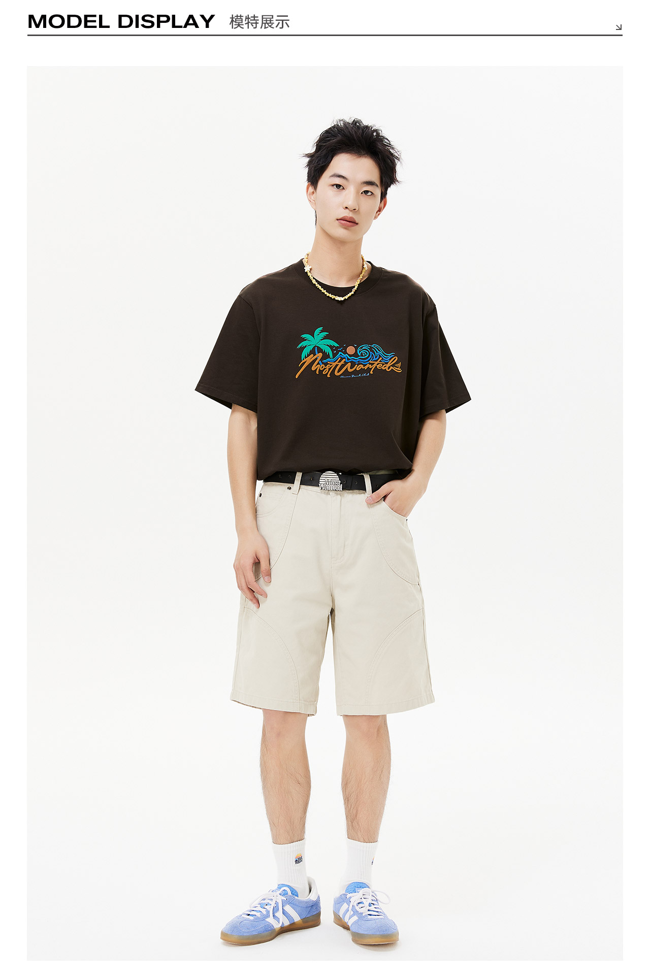 mostwantedlab彩虹/M2412126/汉堡刺绣弧形分割5分裤新款夏季纯棉宽松短裤男