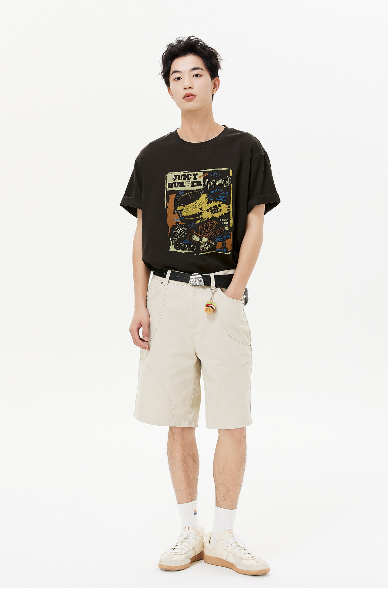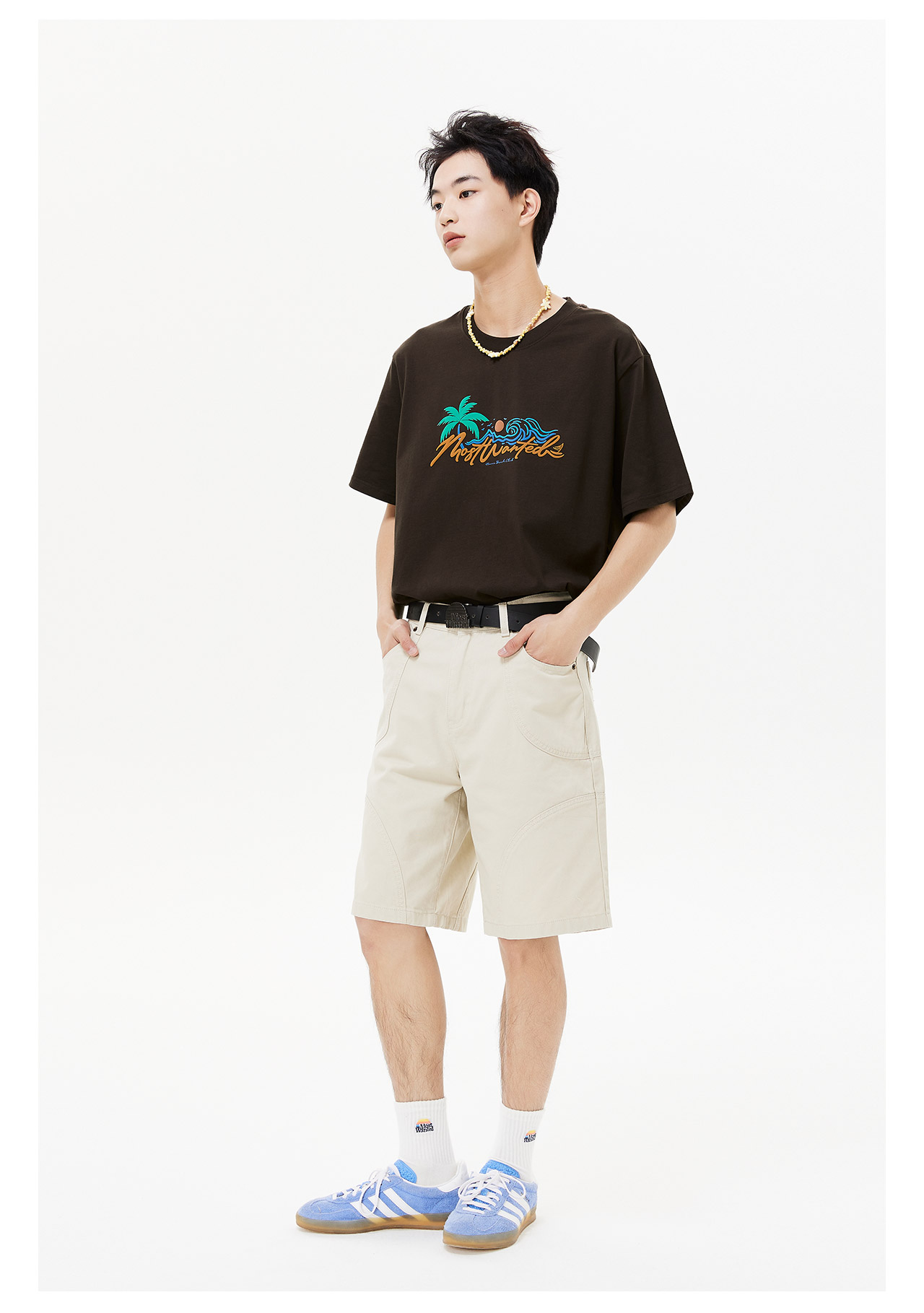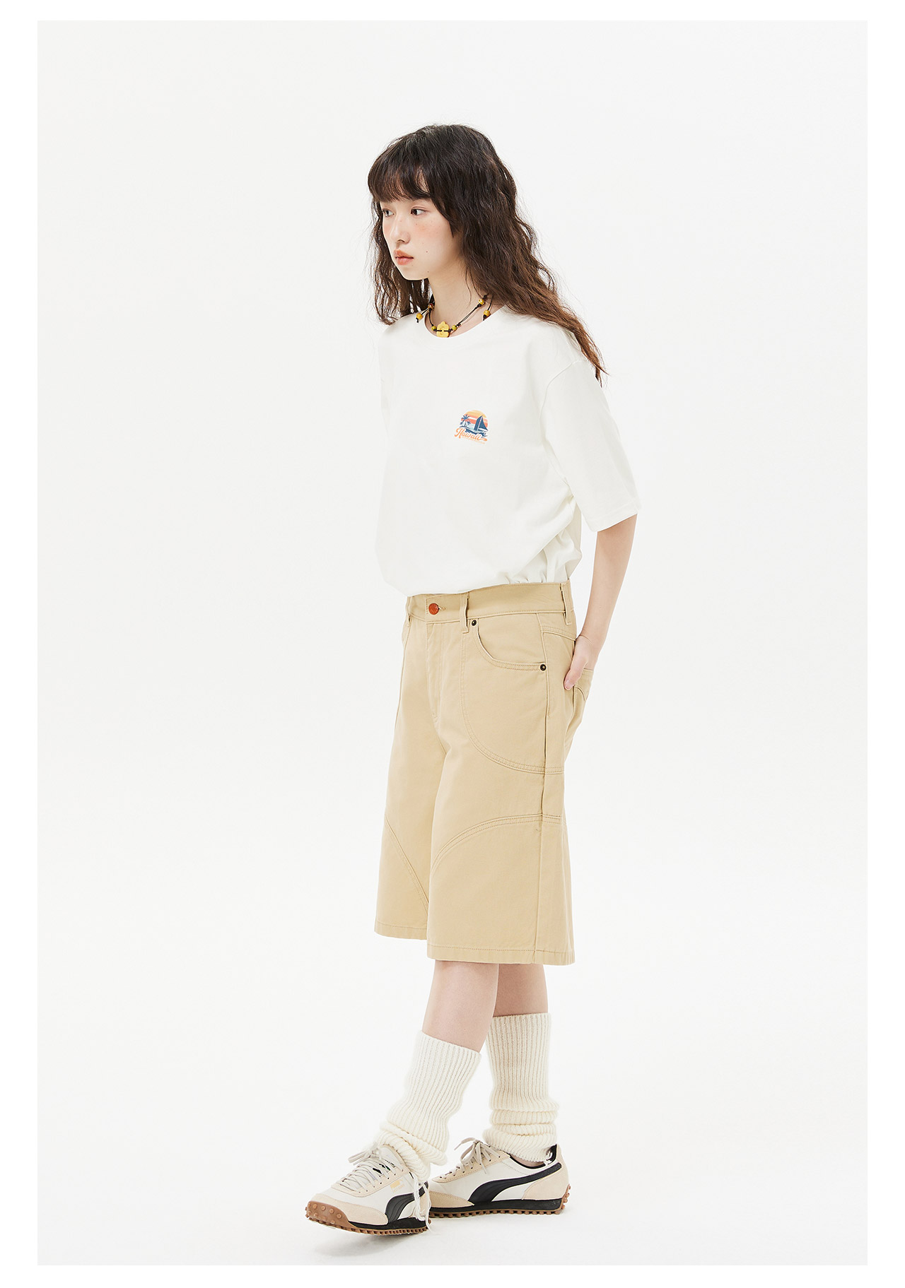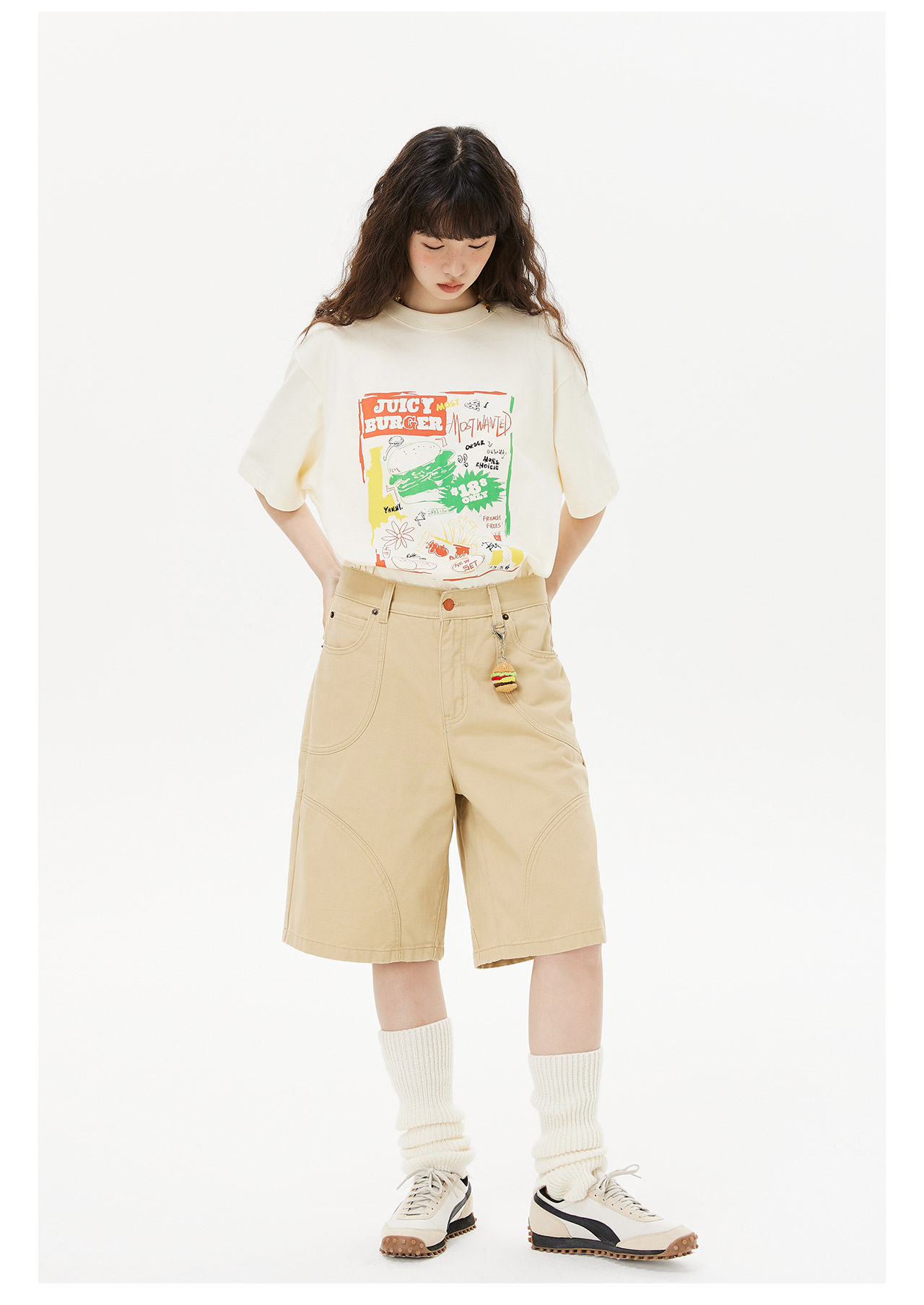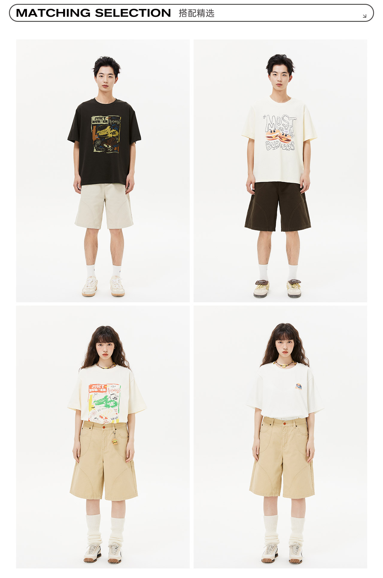 mostwantedlab彩虹/M2412126/汉堡刺绣弧形分割5分裤新款夏季纯棉宽松短裤男