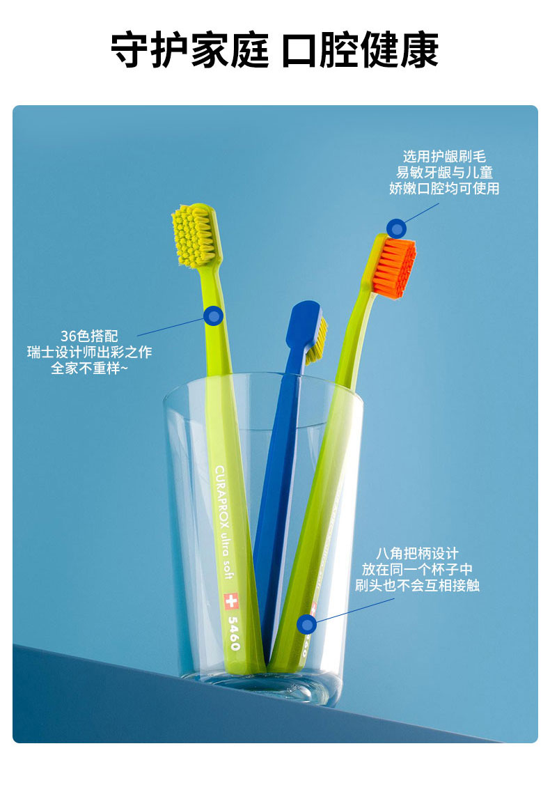 瑞士科瑞宝士CURAPROX5460牙刷3支家庭装