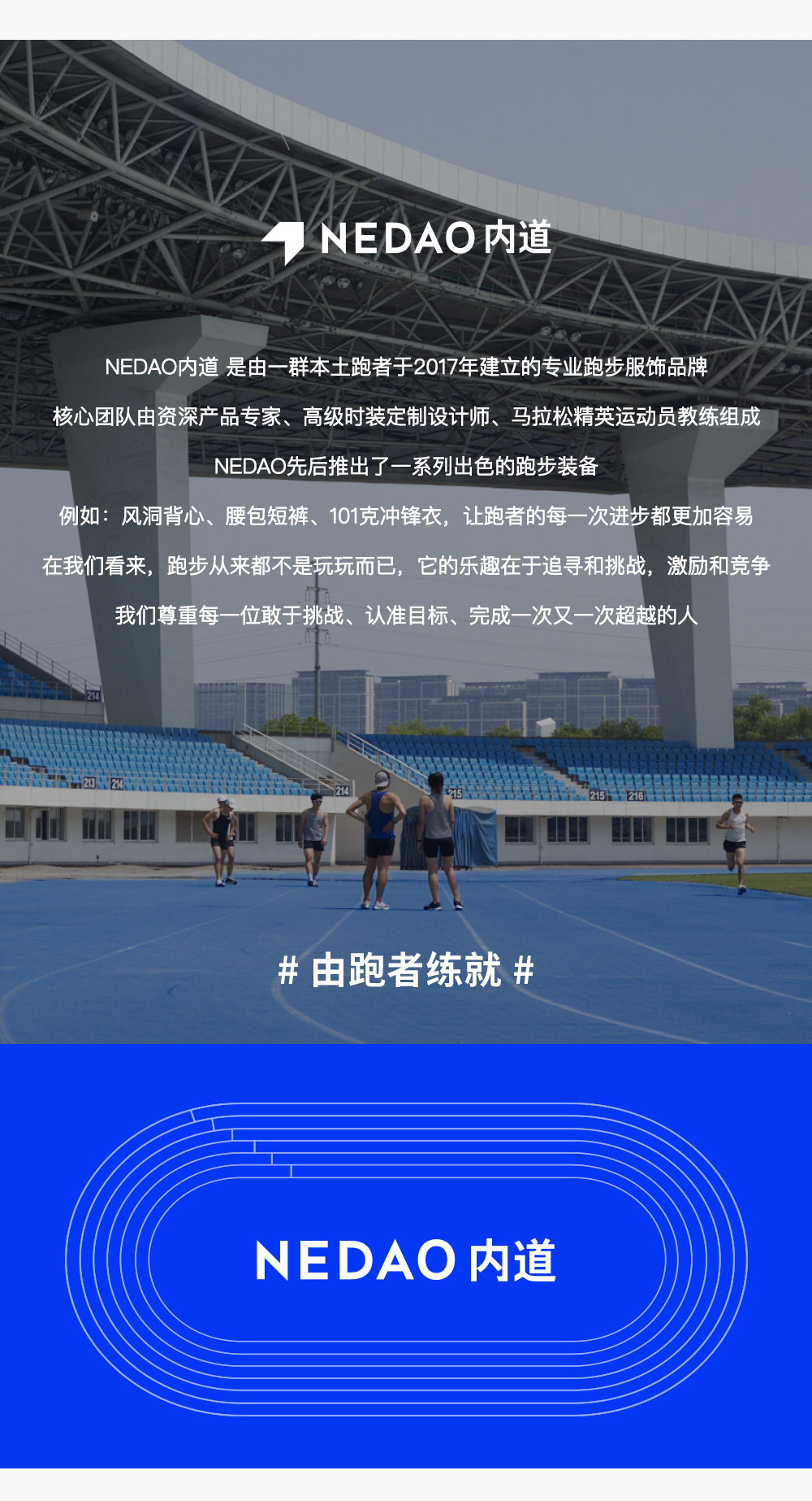 NEDAO脱胎于 GEARLAB(爱燃烧), 是由一群本土跑者建立的专业跑步服饰品牌。 在我们看来,跑步从来都不是玩玩而已。 它的乐趣在于追寻和挑战,激励和竞争。 而内道,属于每一位敢于挑战的跑者。