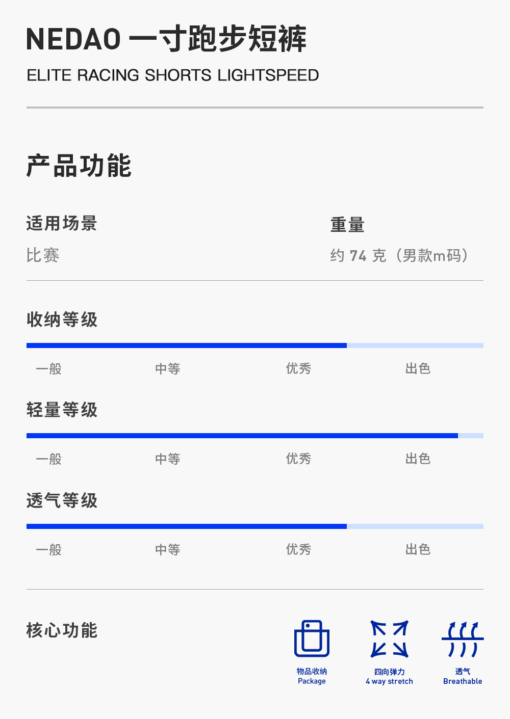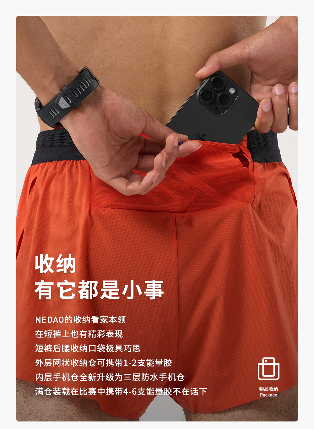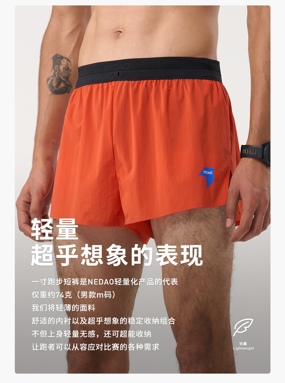 NEDAO 腰包1寸马拉松越野跑收纳男士跑步竞速短裤