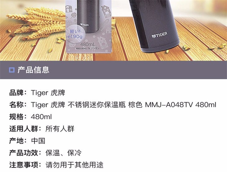 【保税仓】Tiger 虎牌||不锈钢迷你保温瓶||棕色 MMJ-A048TV 480ml