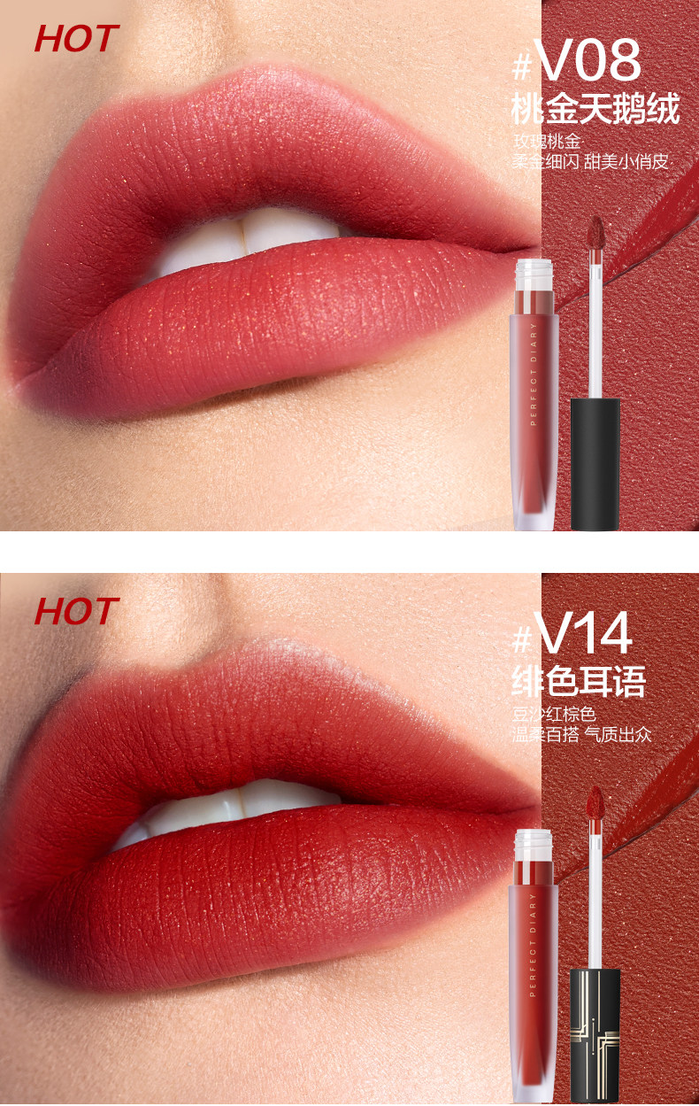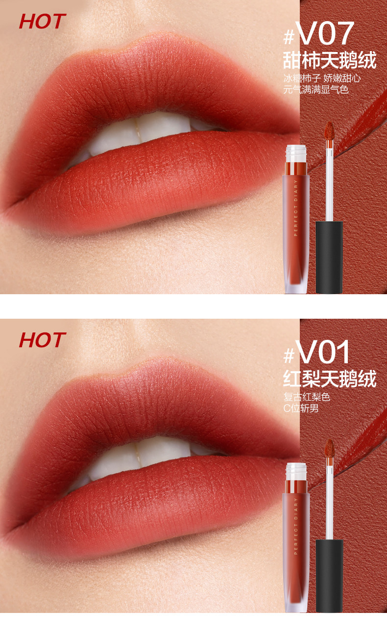 PERFECT DIARY完美日记天鹅绒唇釉 哑光口红丝绒显白不沾杯