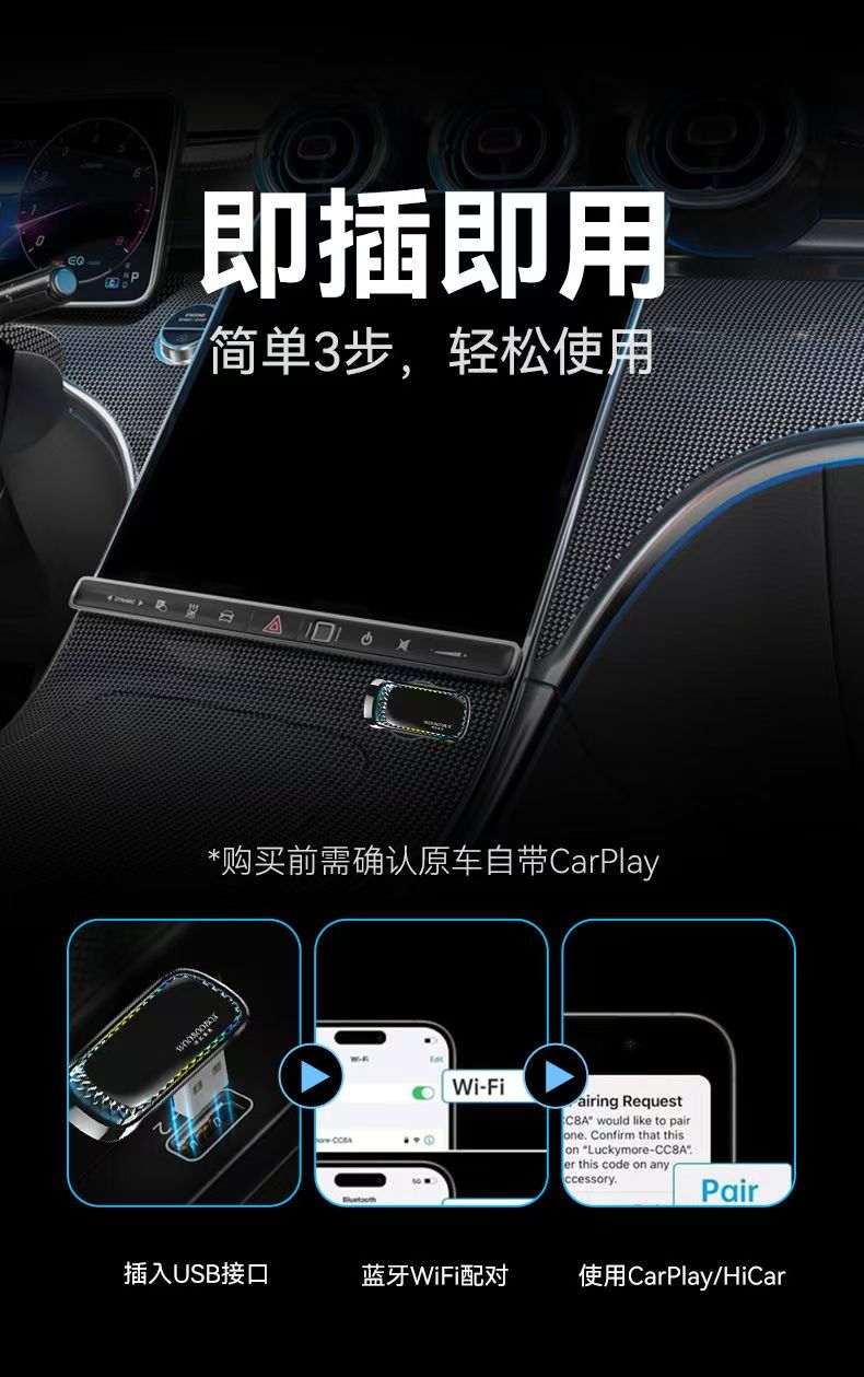 无线CarPlay华为hicar二合一适用奔驰速腾奥迪沃尔沃帕萨特互联盒
