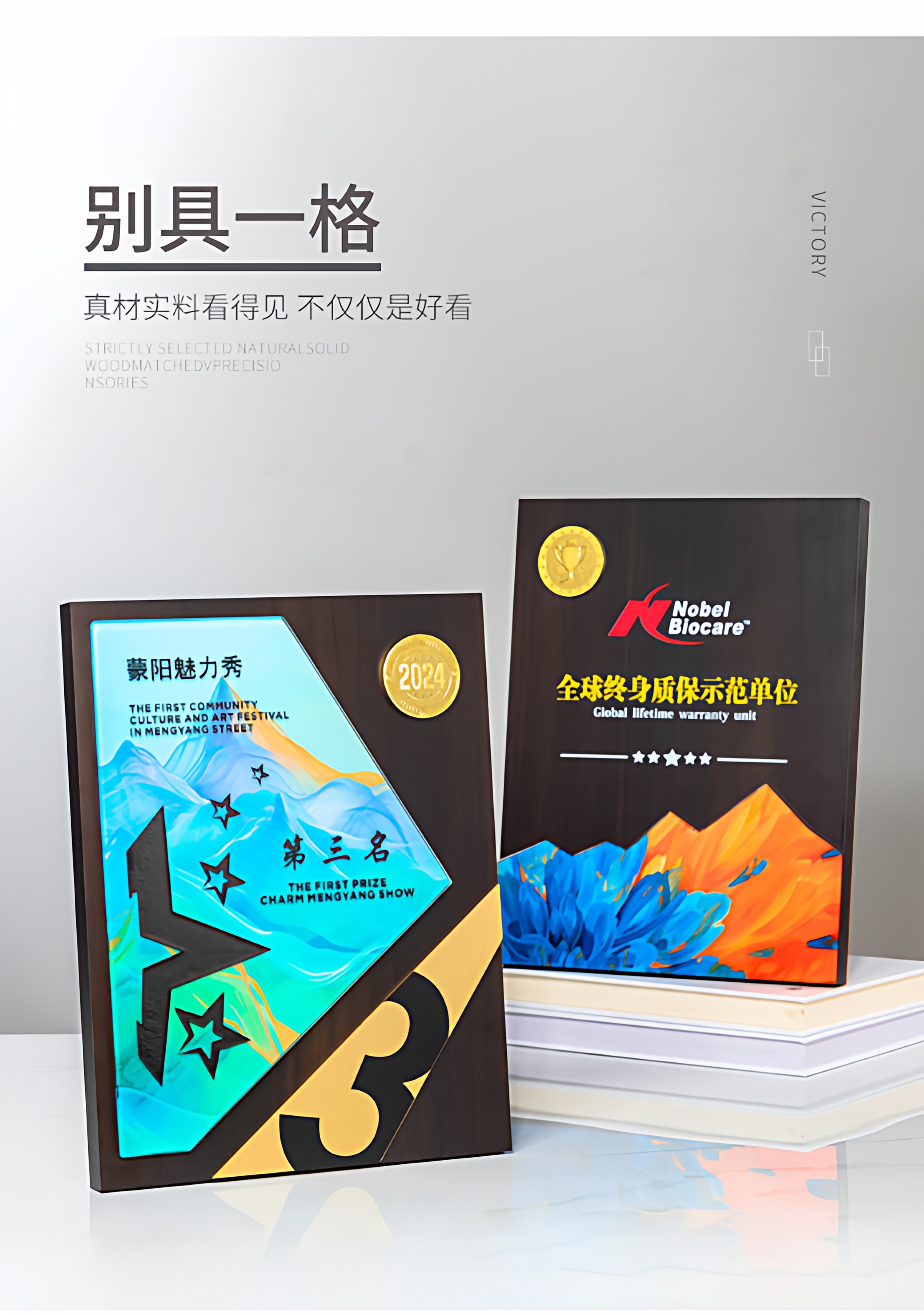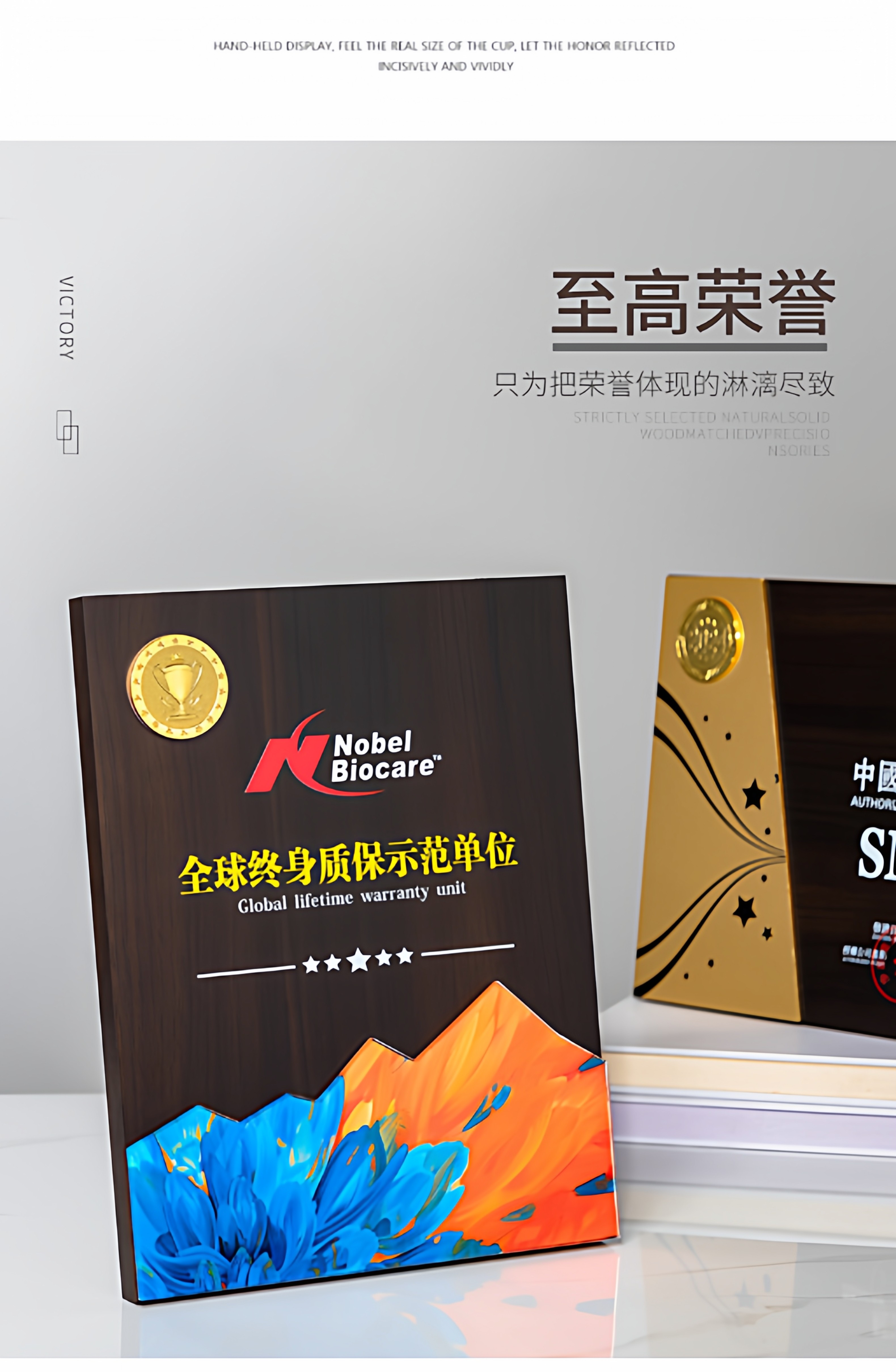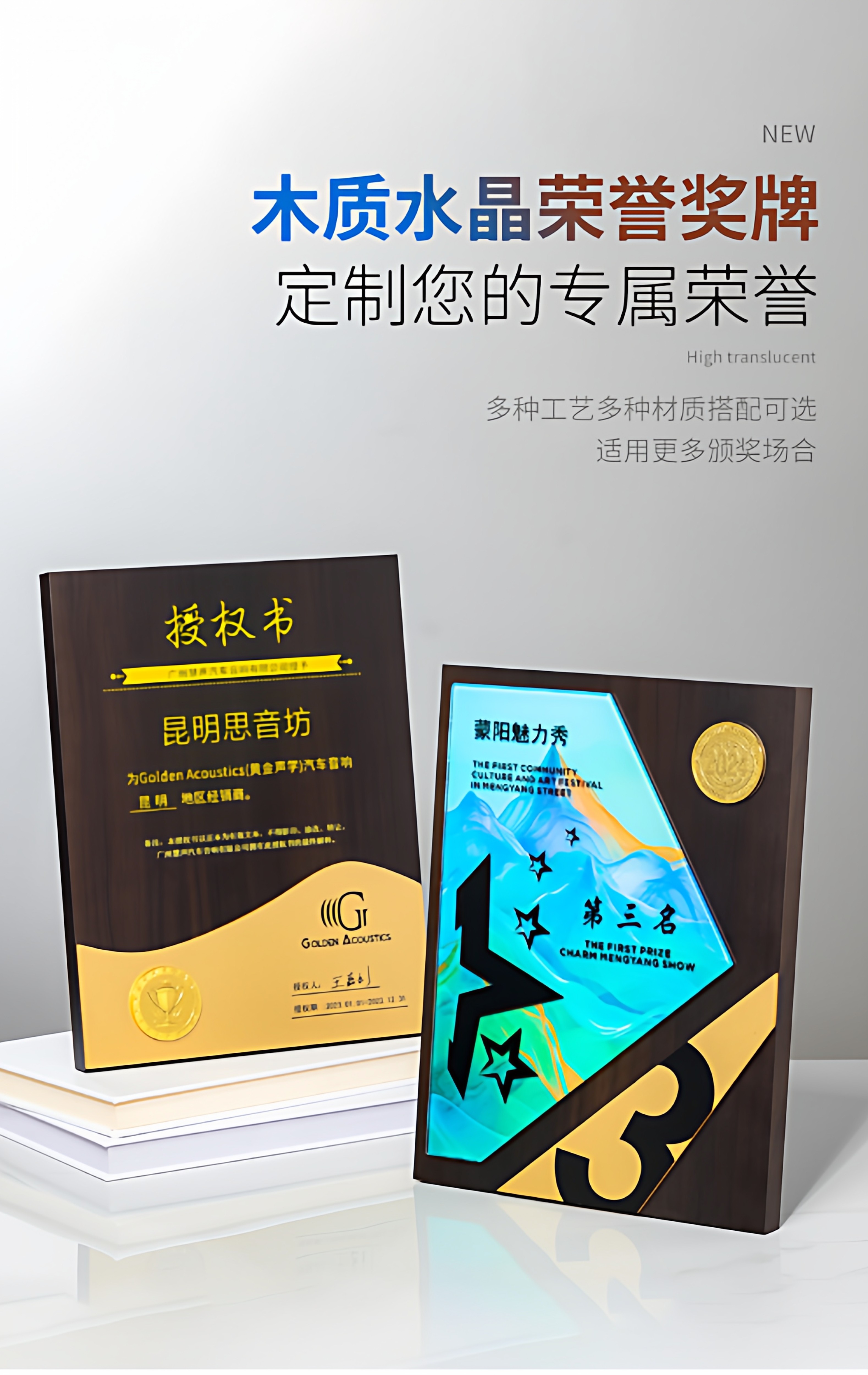 木质奖牌定制企业荣誉证书奖杯商务表彰金属奖章订制商会员大奖牌