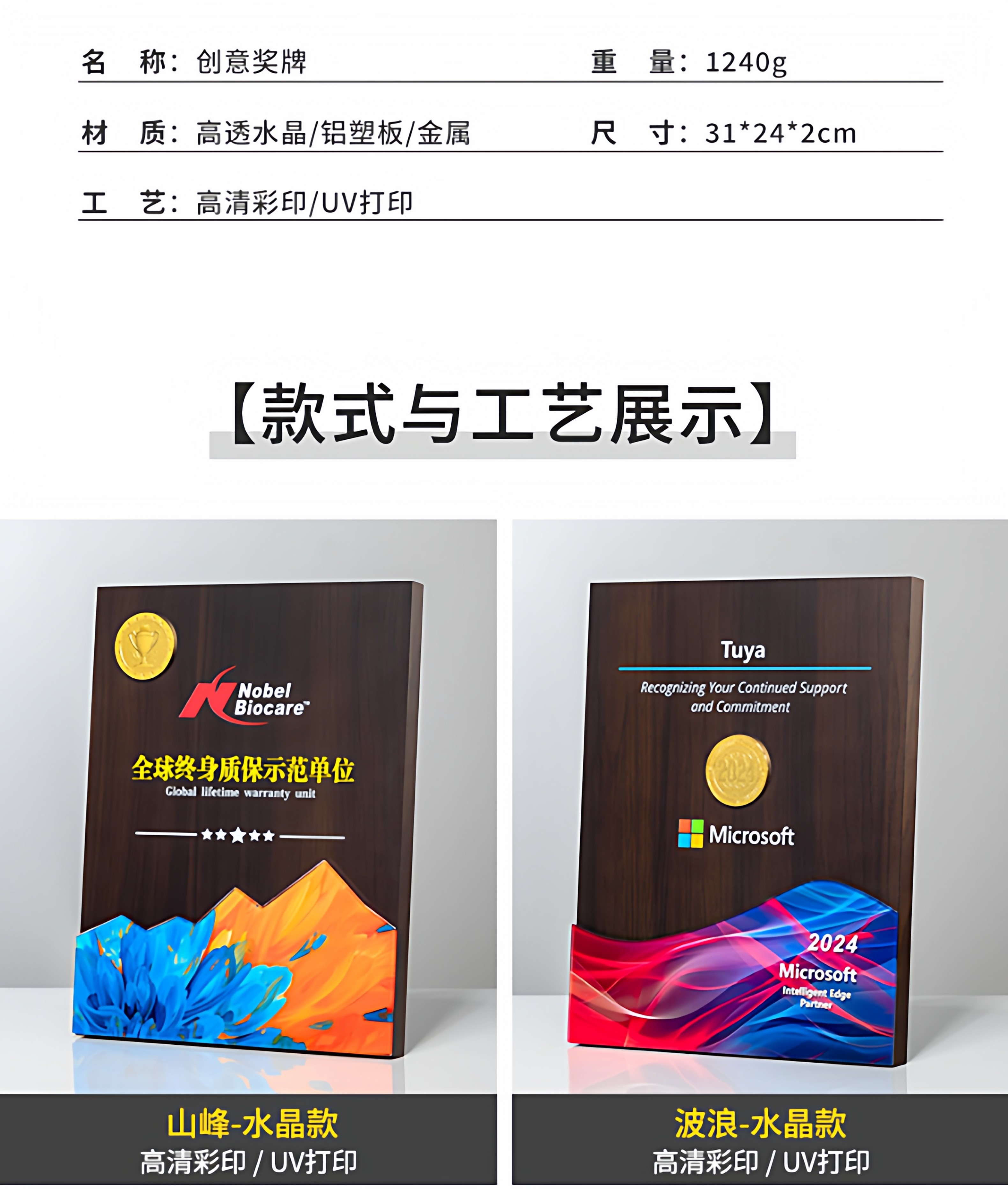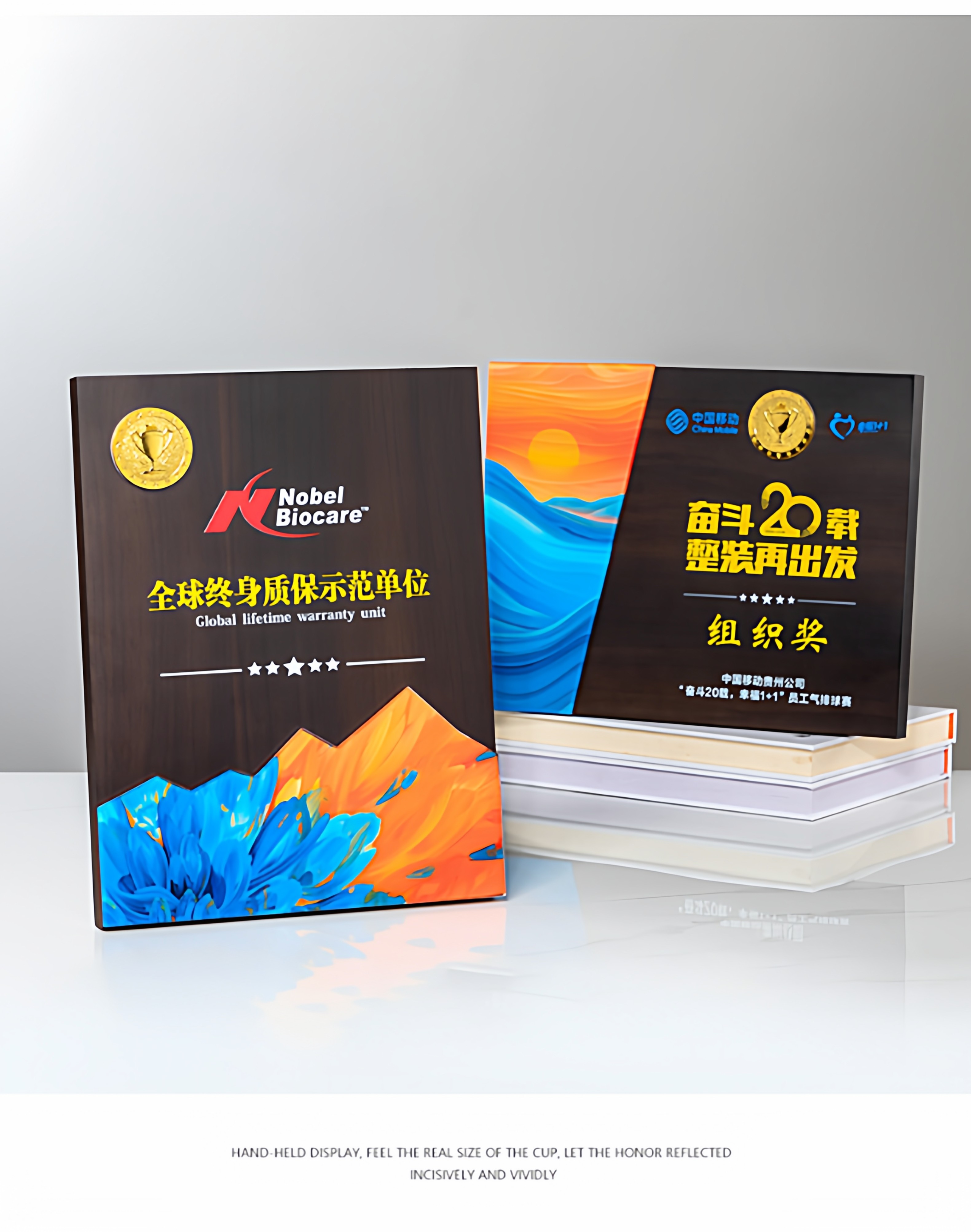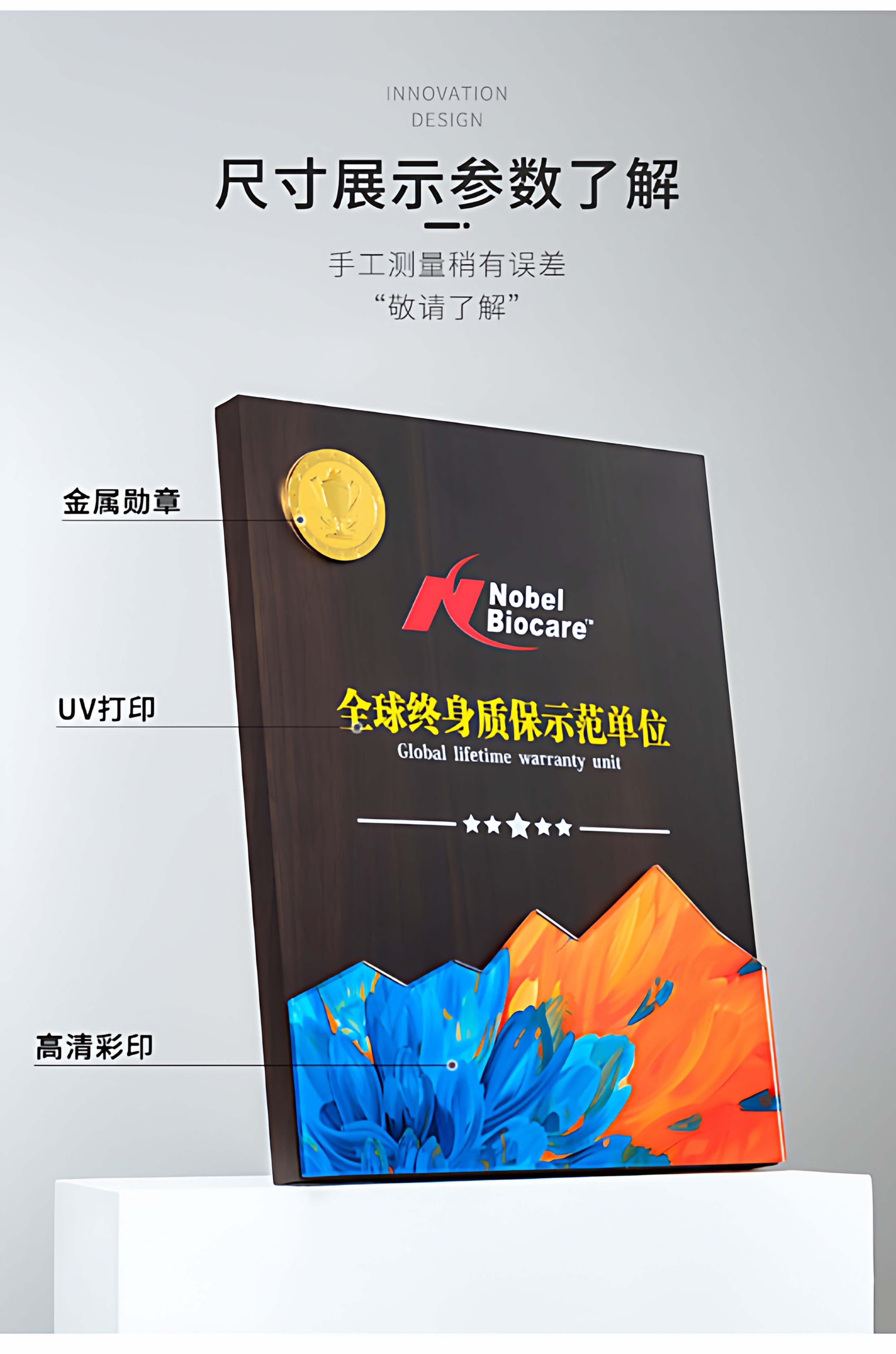 木质奖牌定制企业荣誉证书奖杯商务表彰金属奖章订制商会员大奖牌