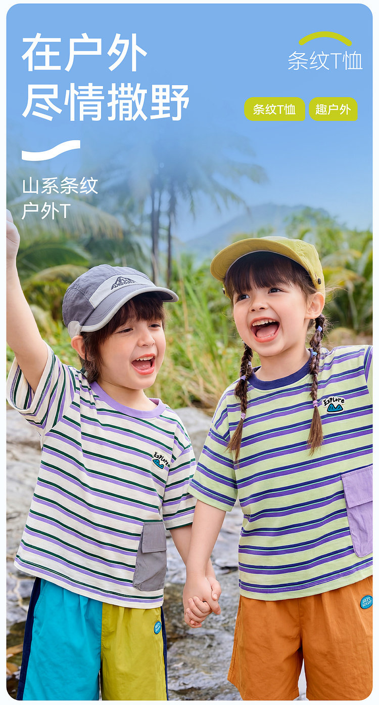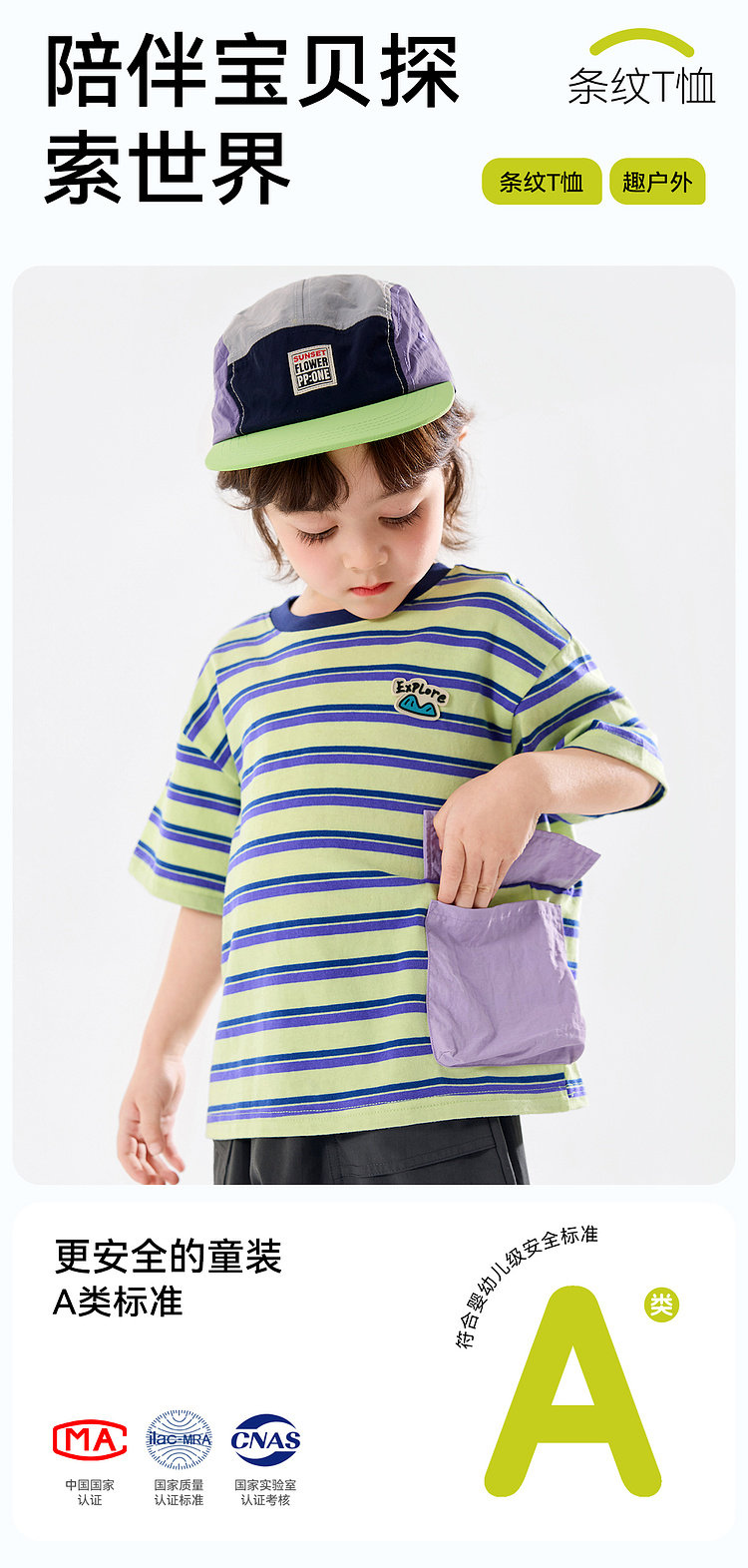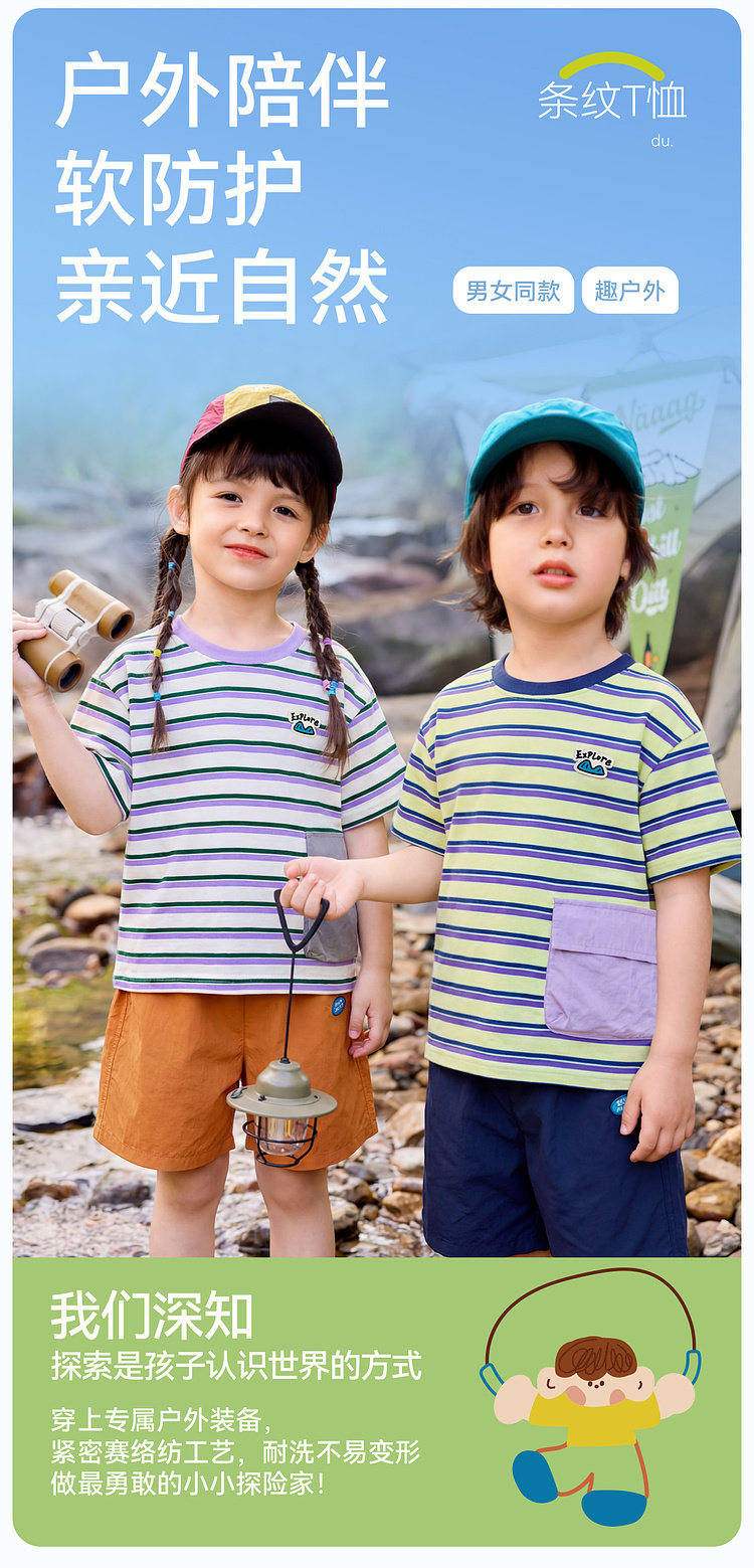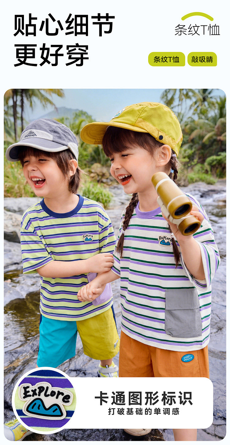 【纯棉】嘟嘟家男童T恤纯棉宝宝短袖上衣女童条纹衣服儿童童装aT6BTX221