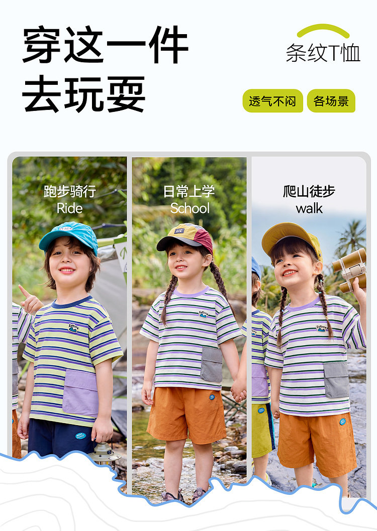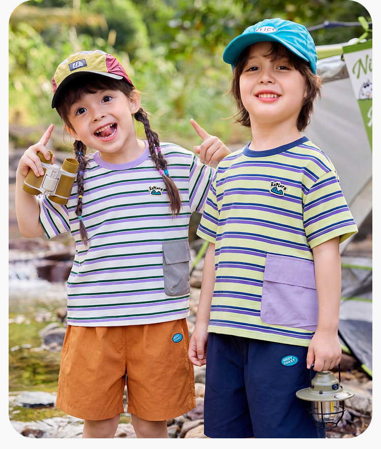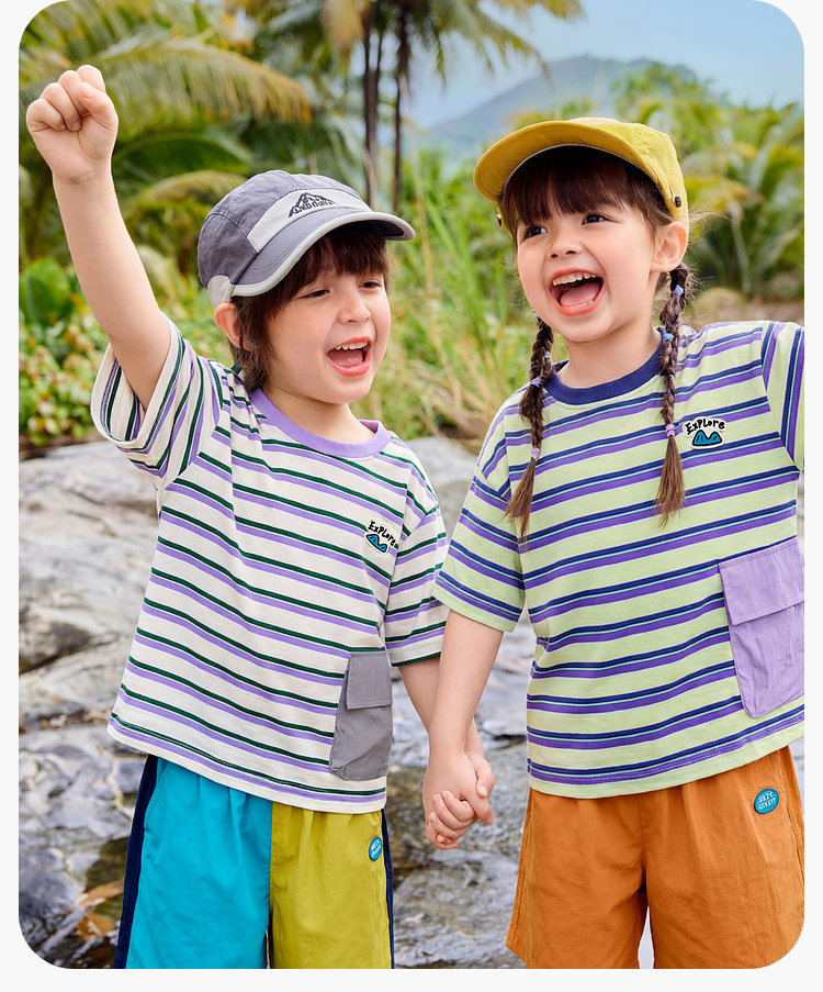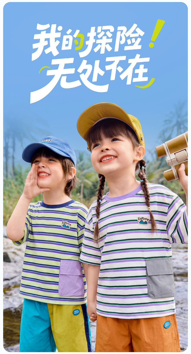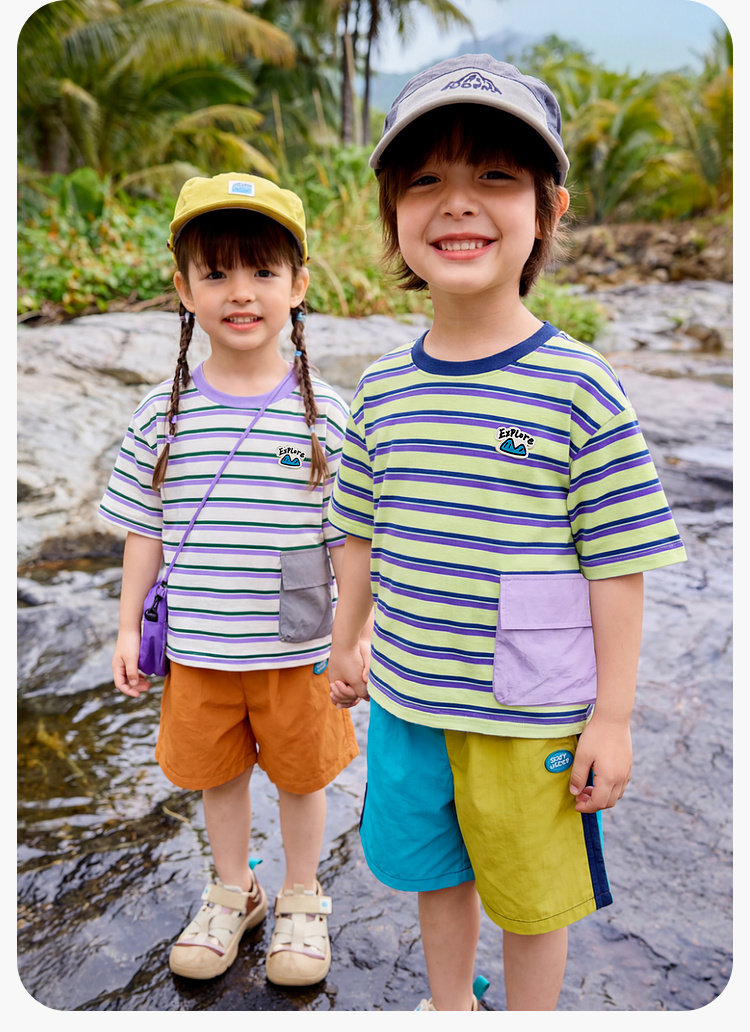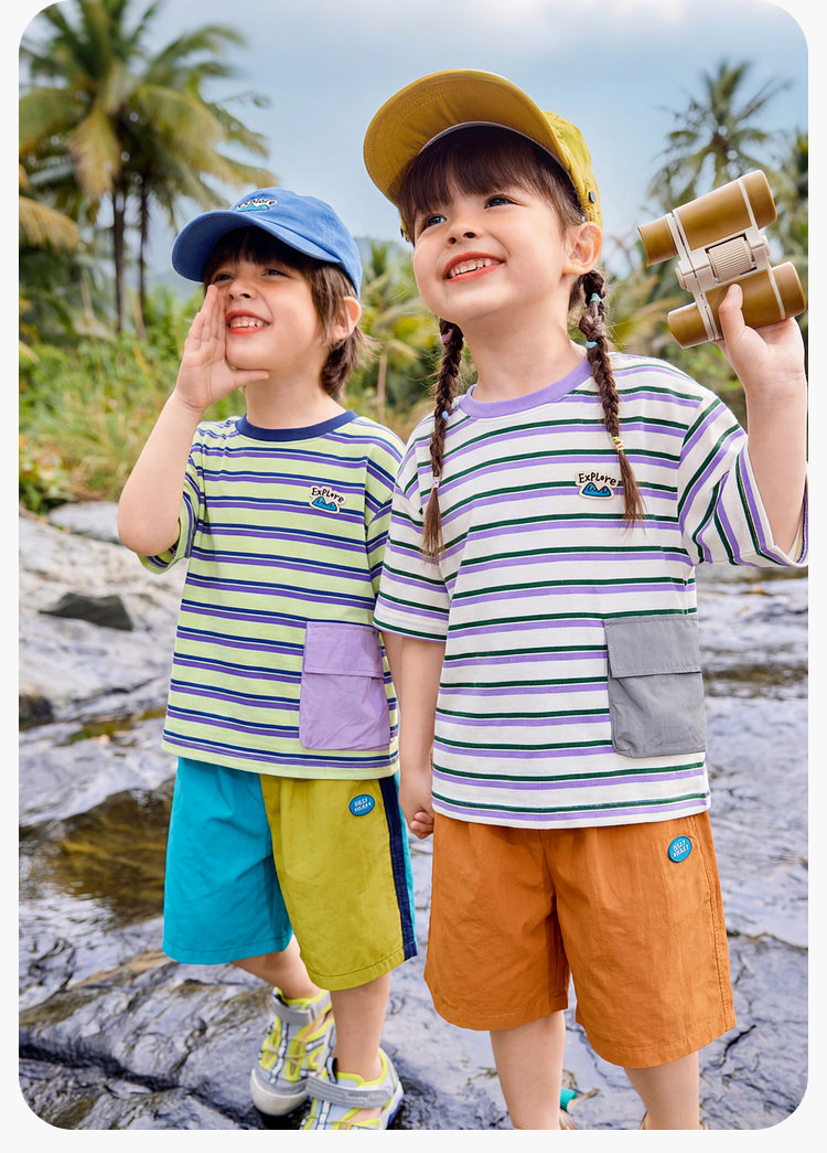 【纯棉】嘟嘟家男童T恤纯棉宝宝短袖上衣女童条纹衣服儿童童装aT6BTX221