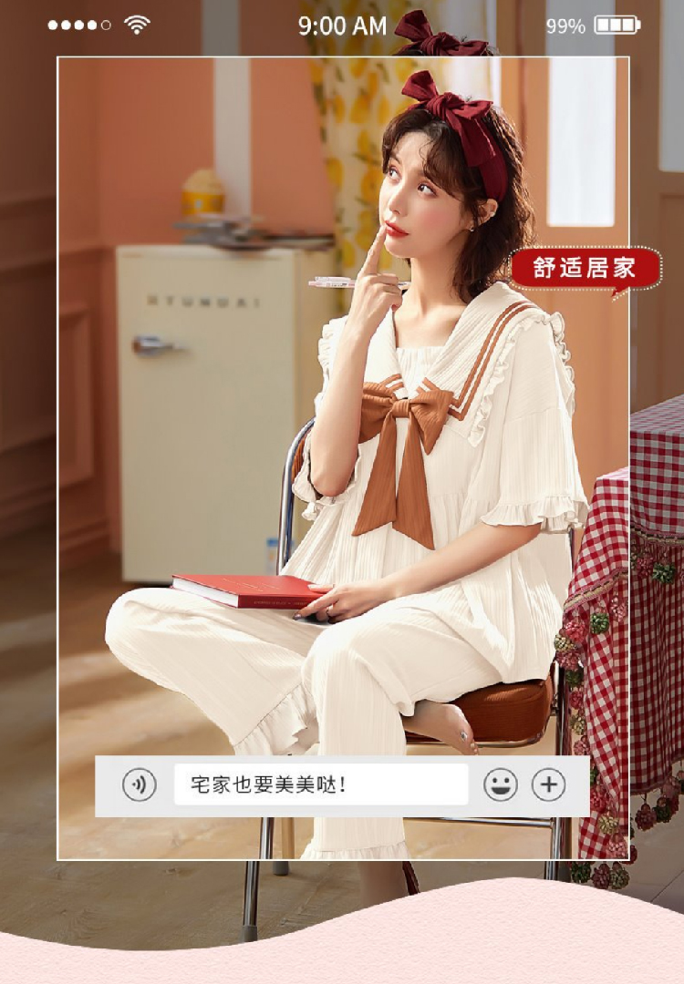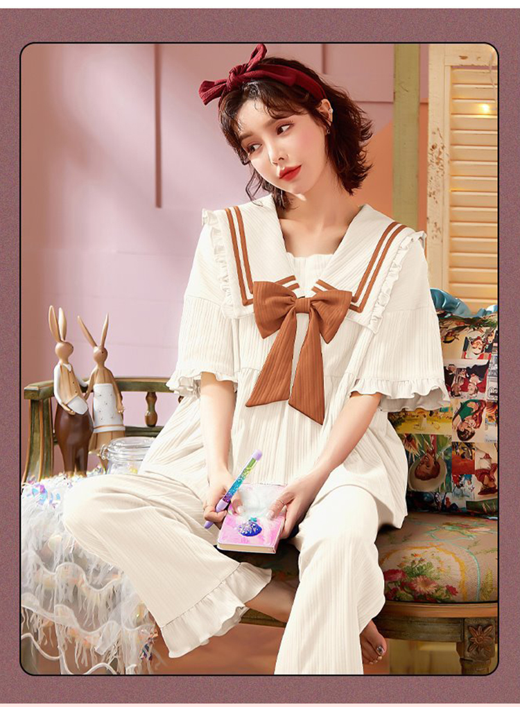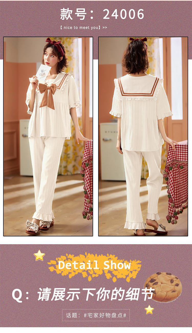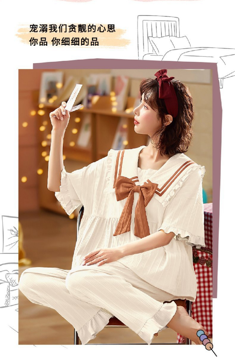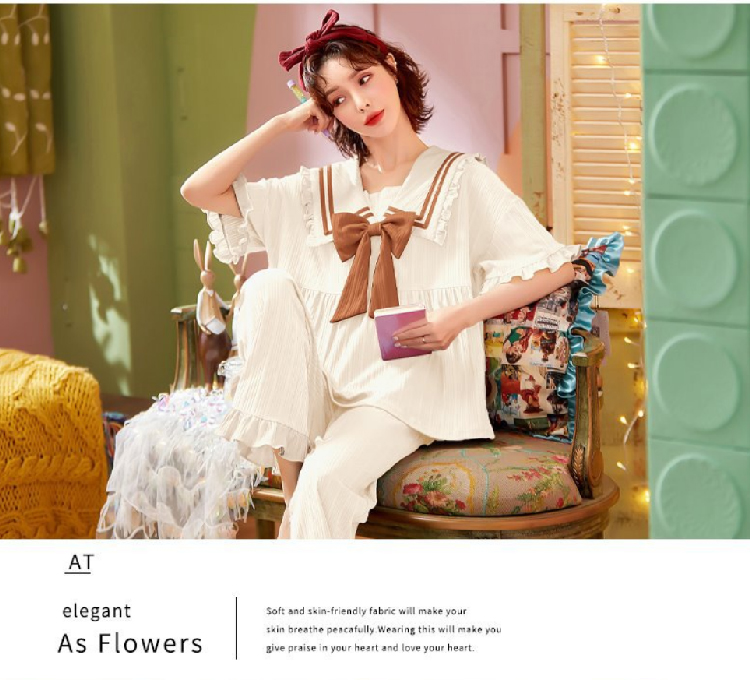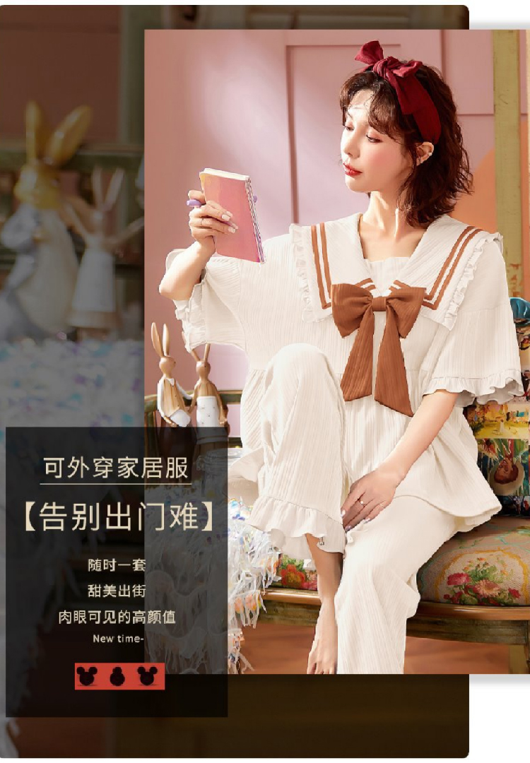 【抖音爆款公主风睡衣】春夏短袖可爱蝴蝶结家居服 夏日清爽棉质吸汗睡衣