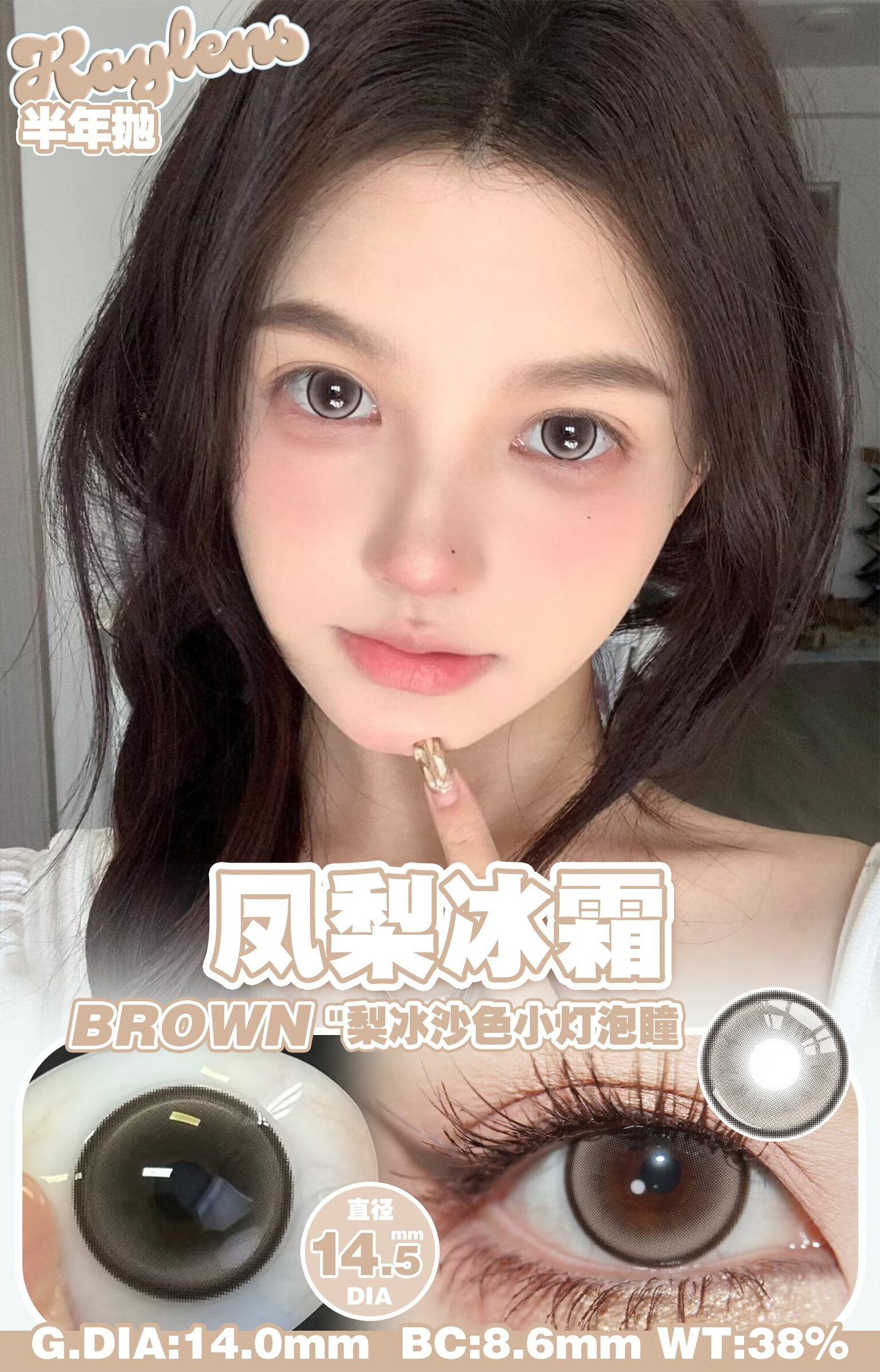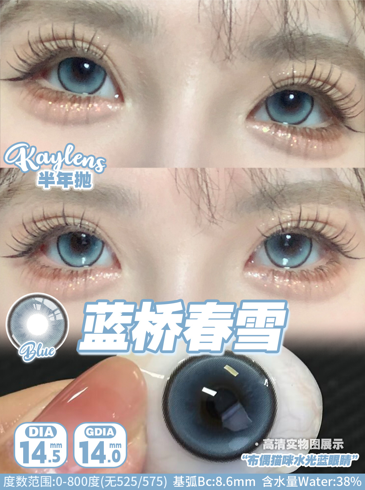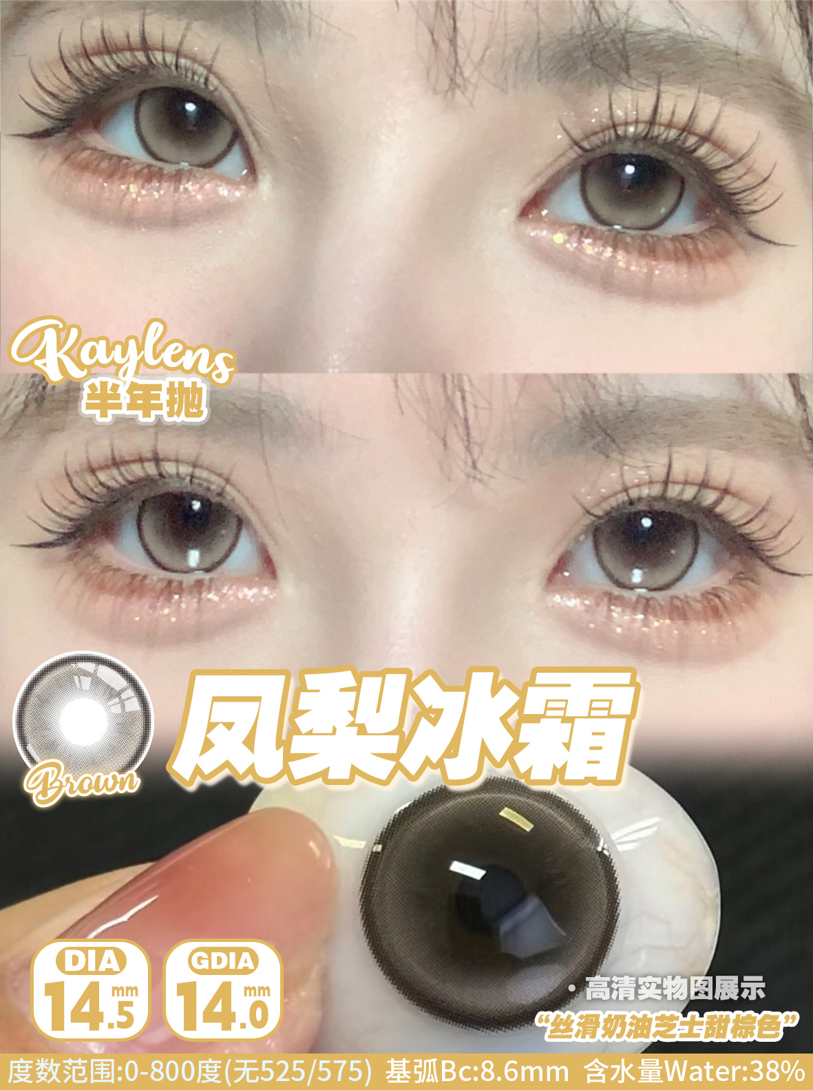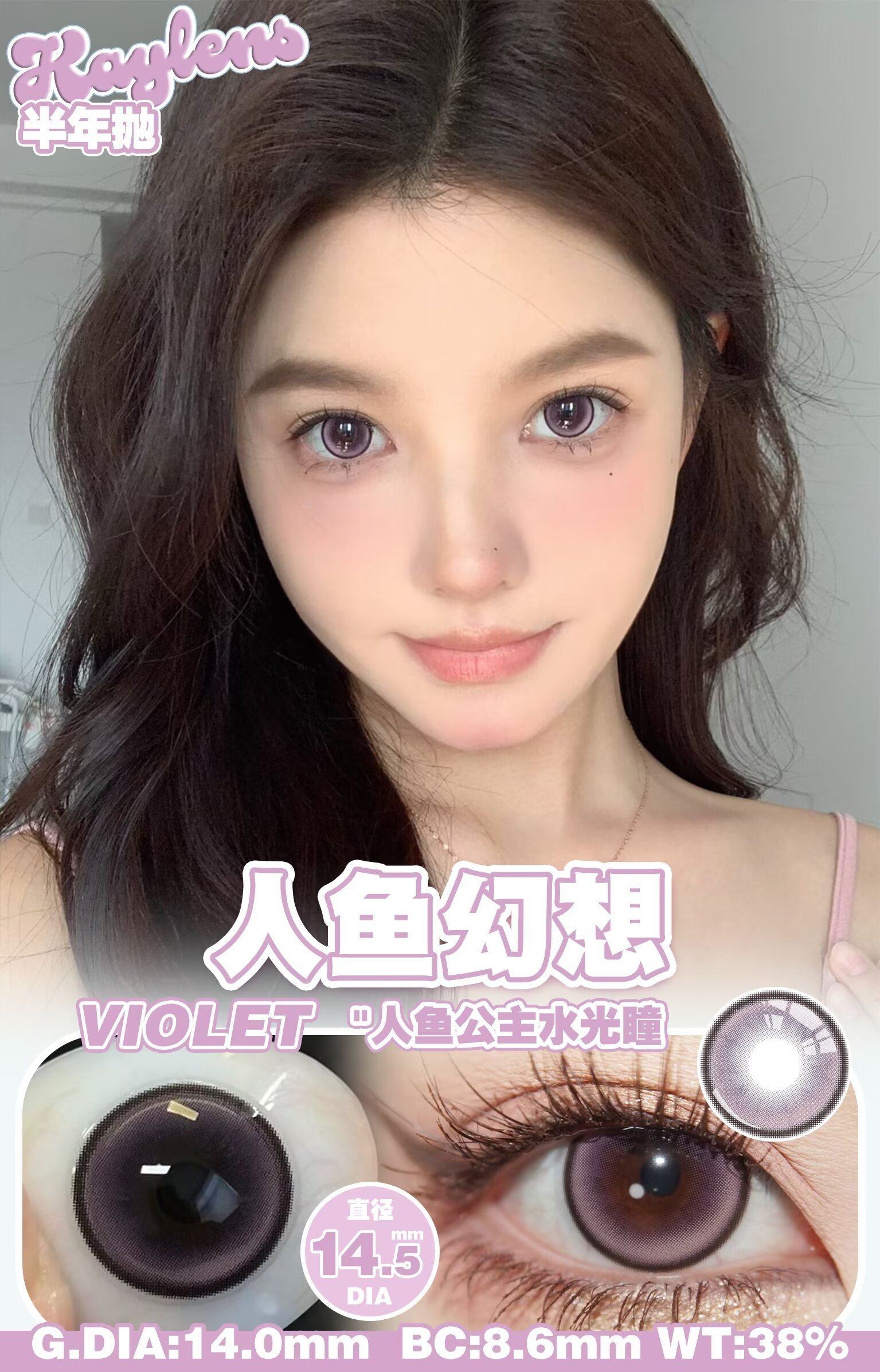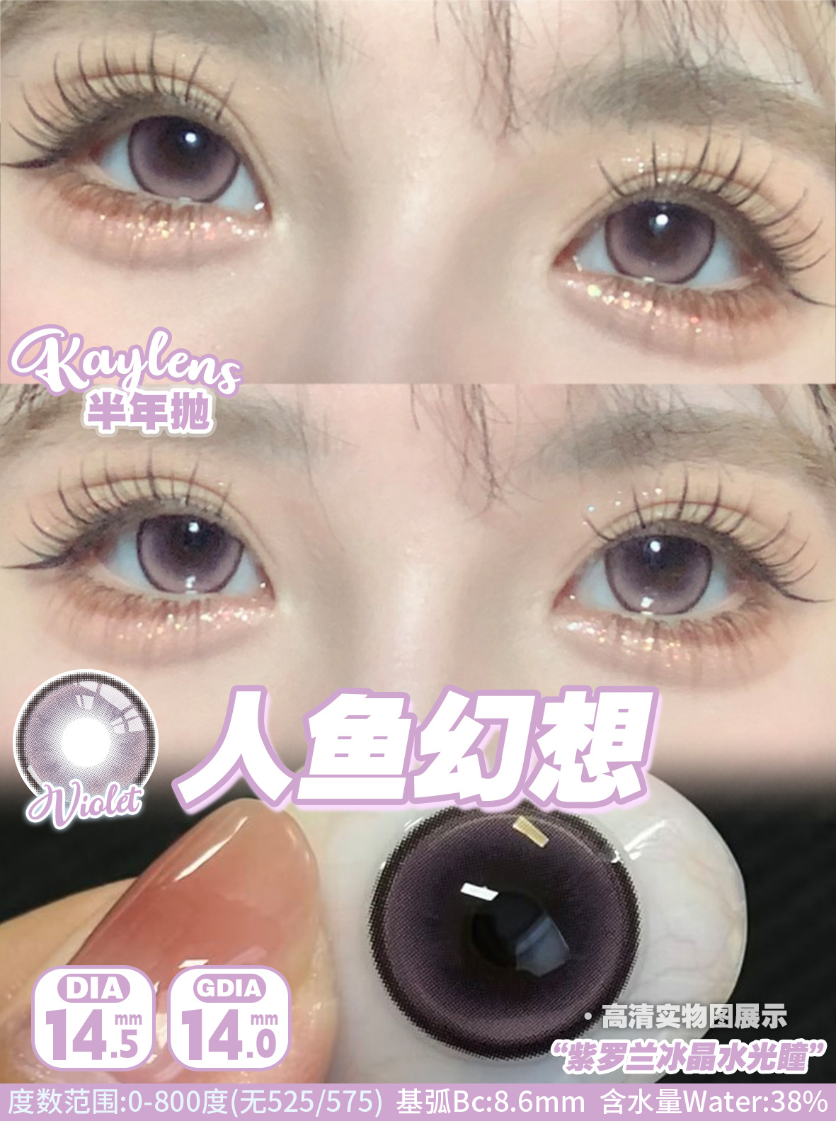 Kaylens 半年抛 人鱼幻想/蓝桥春雪/凤梨冰霜 14.5mm 美瞳两片装 粉紫/蓝/棕