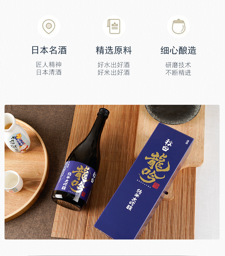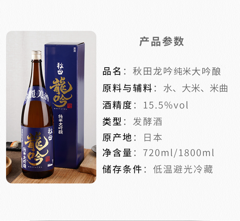 日本秋田龙吟纯米大吟酿清酒720ml/1.8L 精选原料 细心酿造 220021/220022
