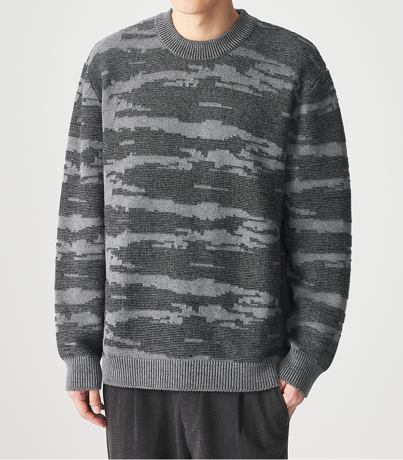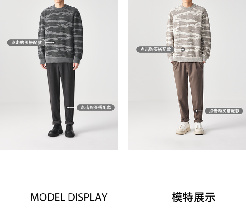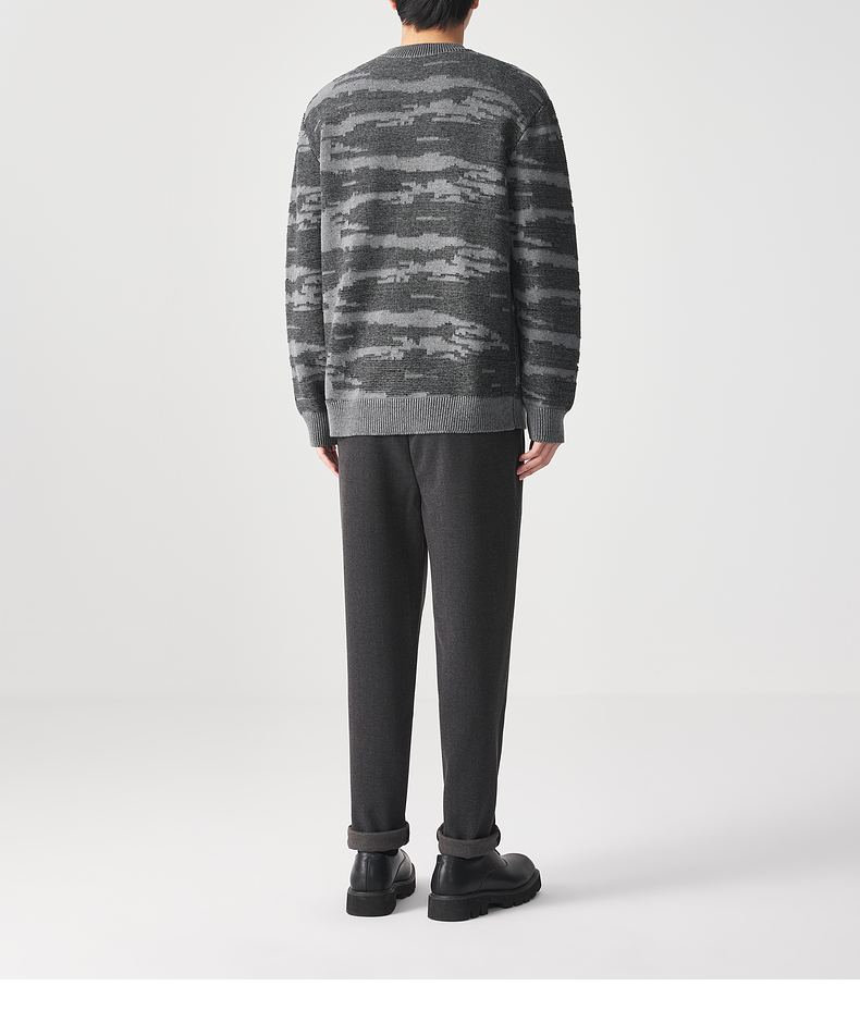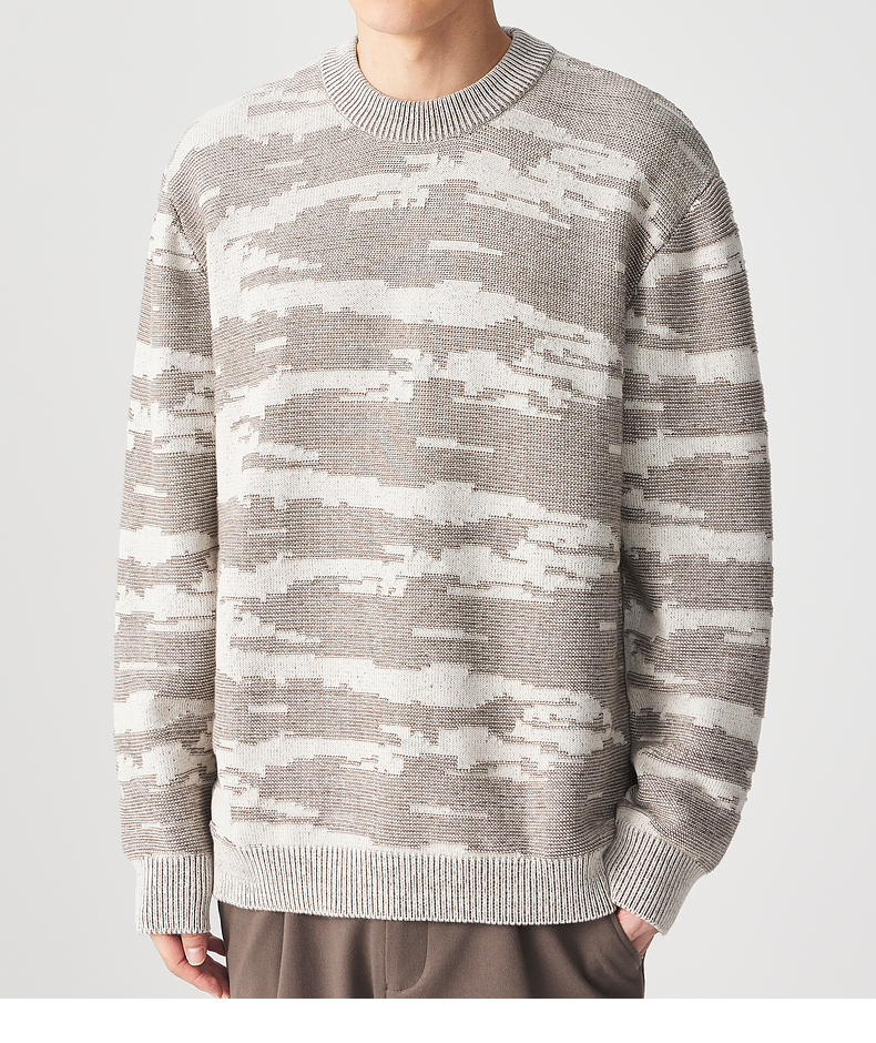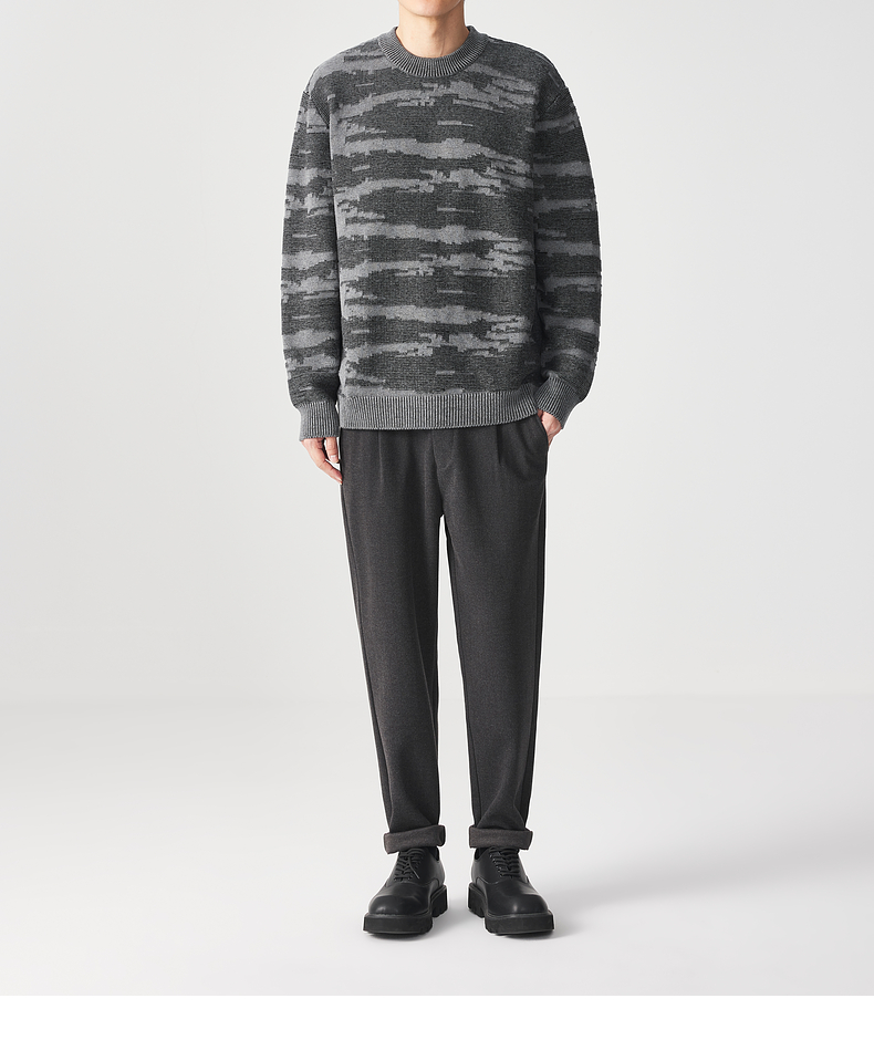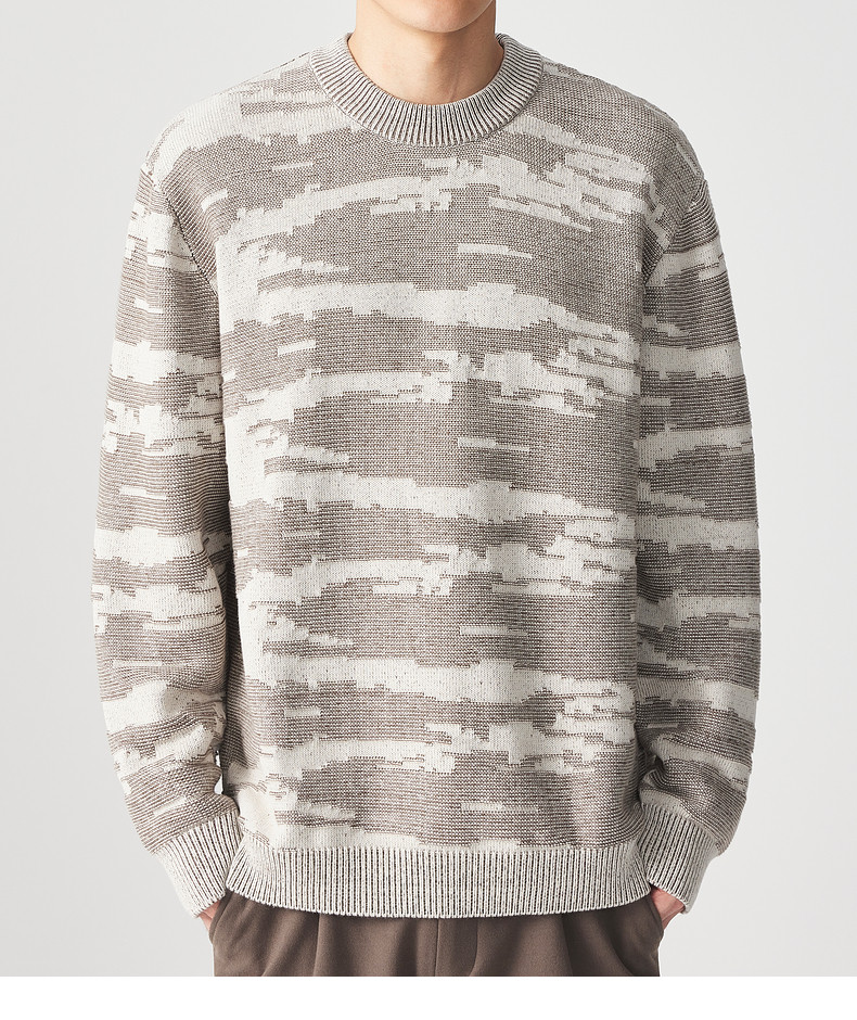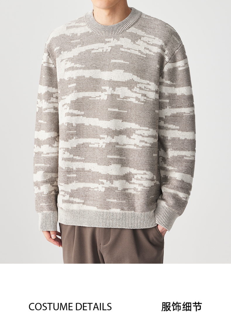 墨麦客男装远红外升温圆领针织衫冬季新款撞色提花保暖加厚毛衣男