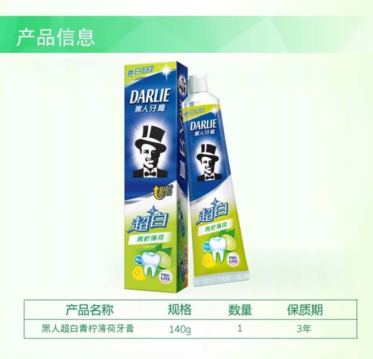 黑人牙膏超白青柠薄荷 140g