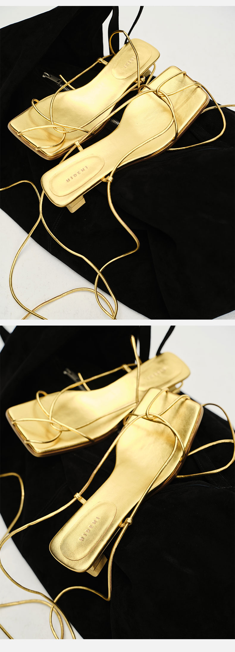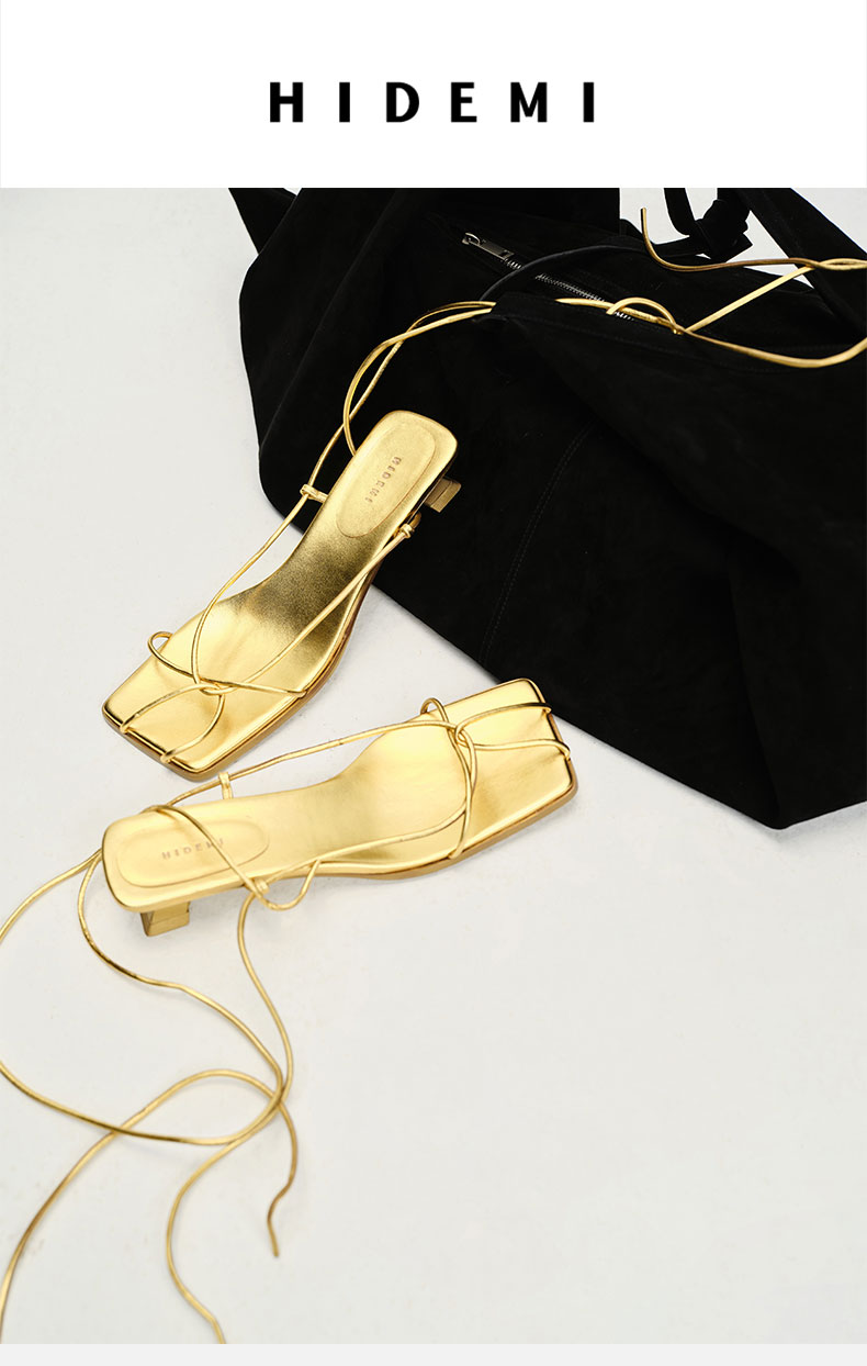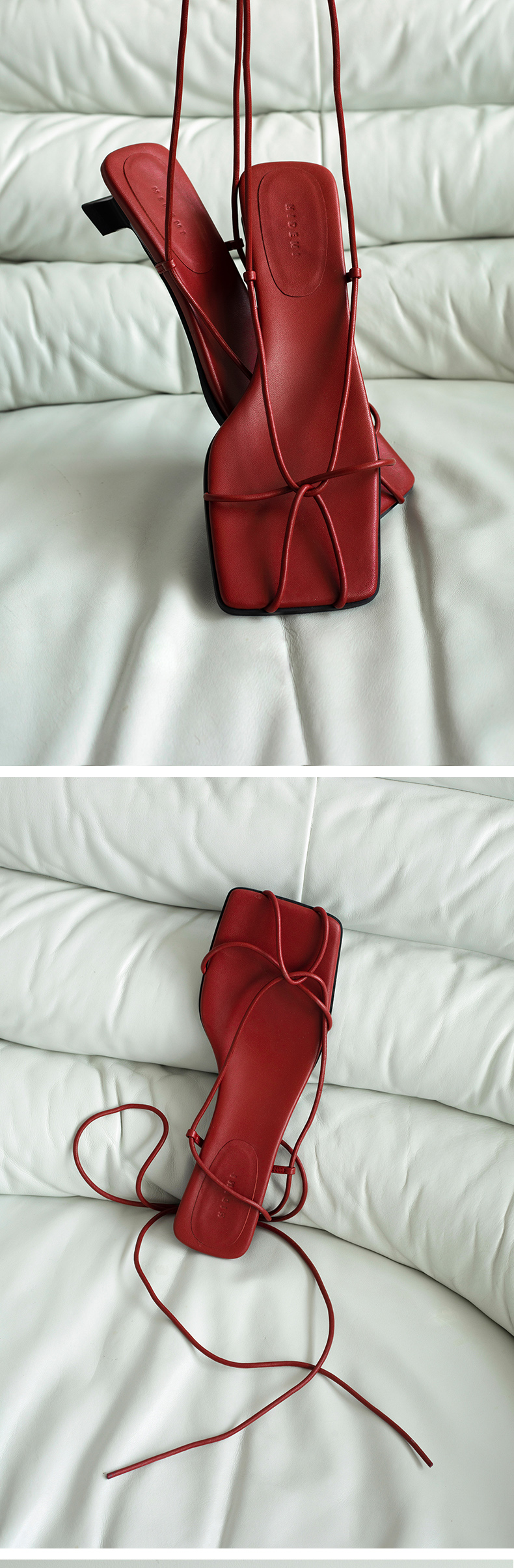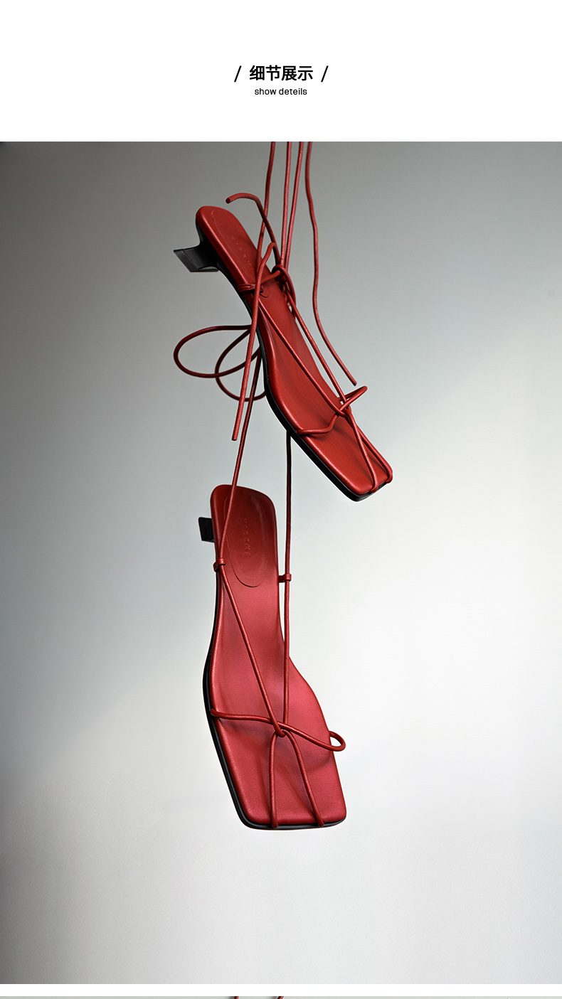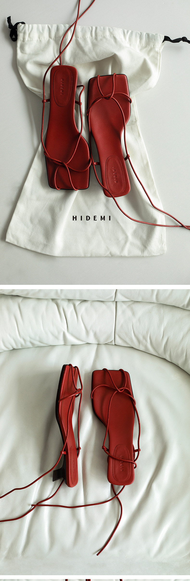 HIDEMI方头系带设计感小跟凉鞋 红色/黑色/白色/金色