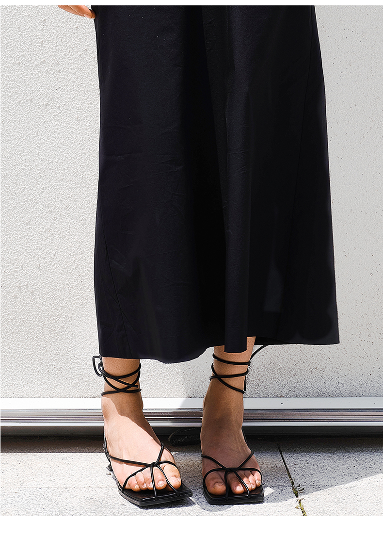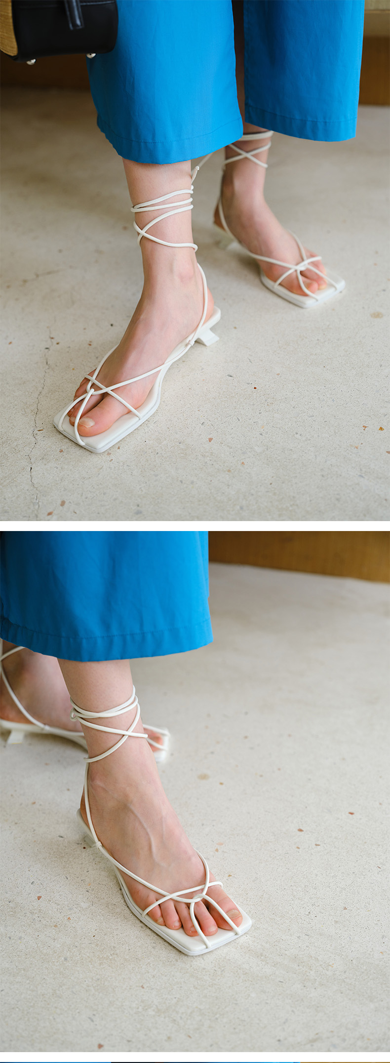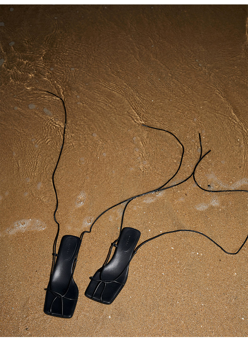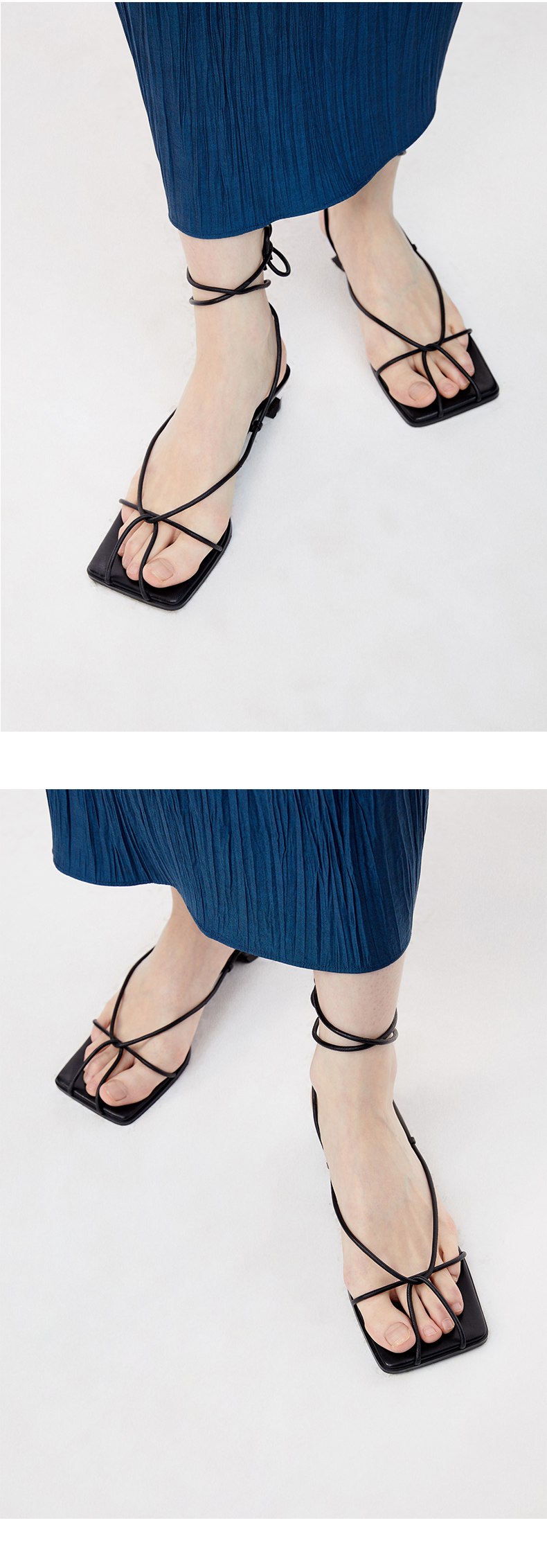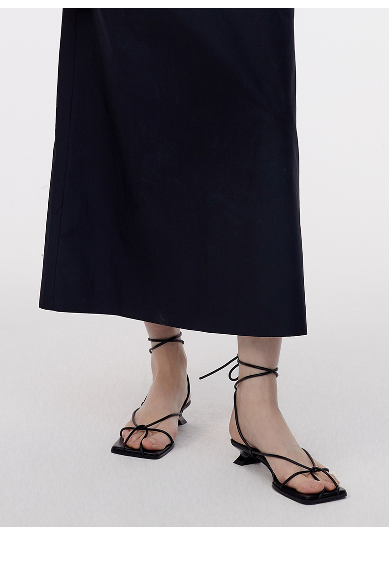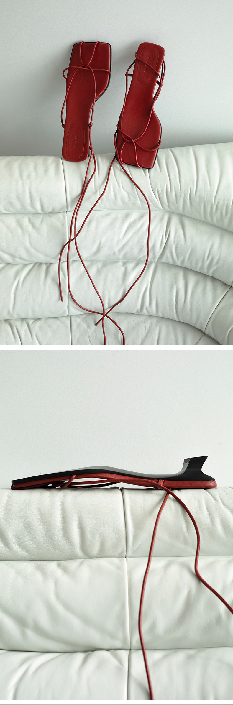 HIDEMI方头系带设计感小跟凉鞋 红色/黑色/白色/金色
