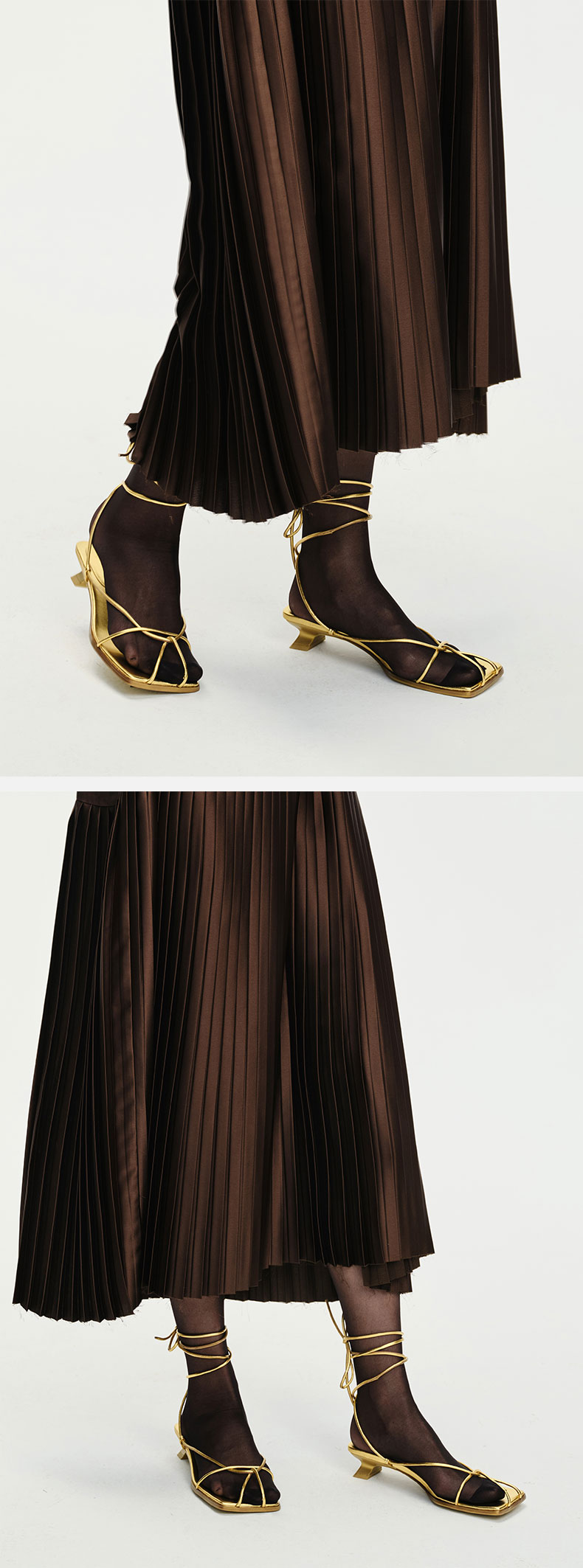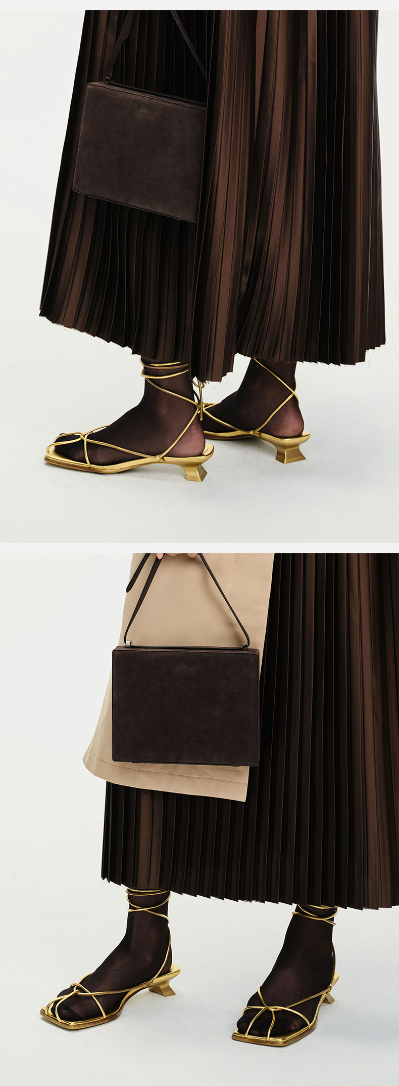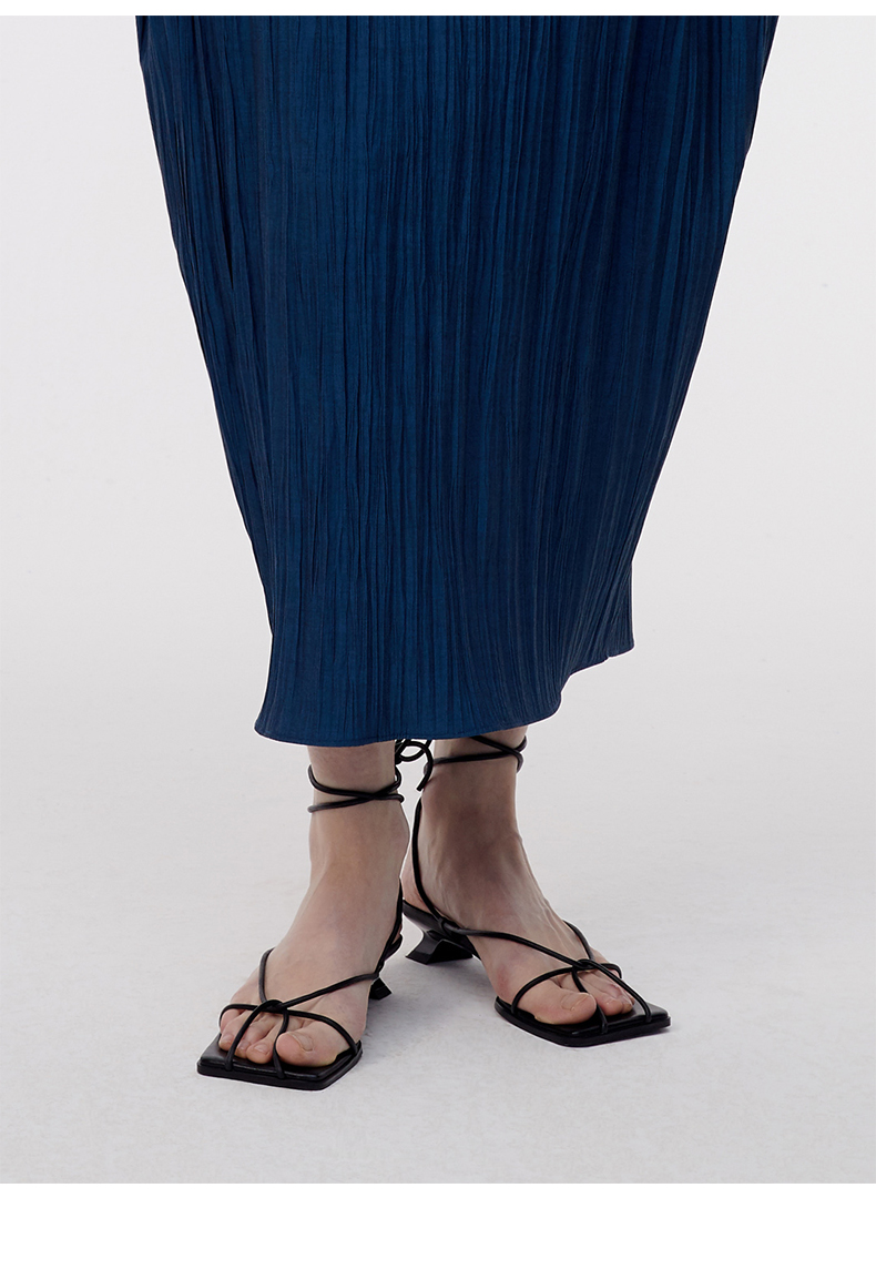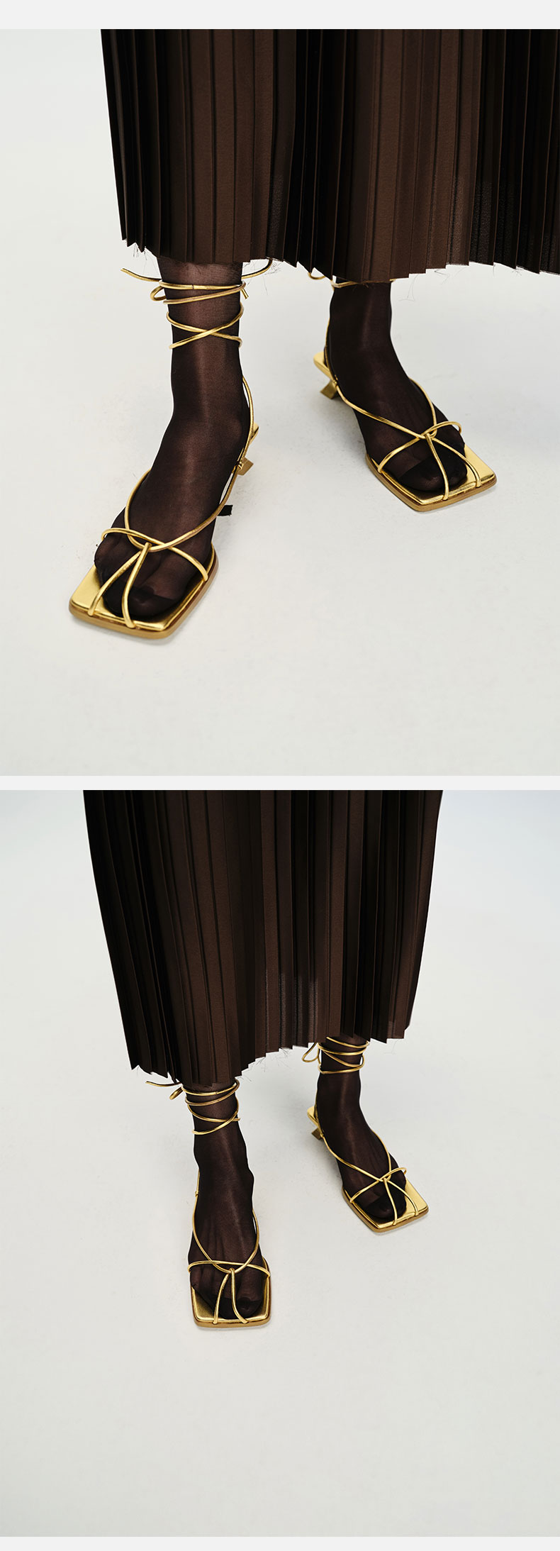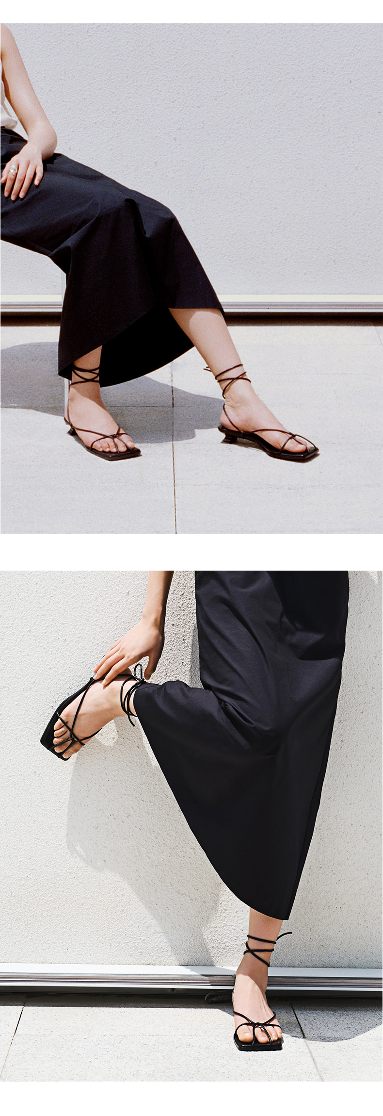 HIDEMI方头系带设计感小跟凉鞋 红色/黑色/白色/金色