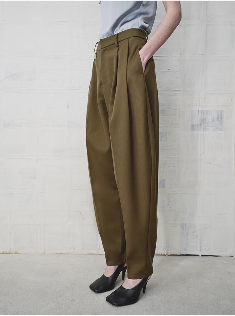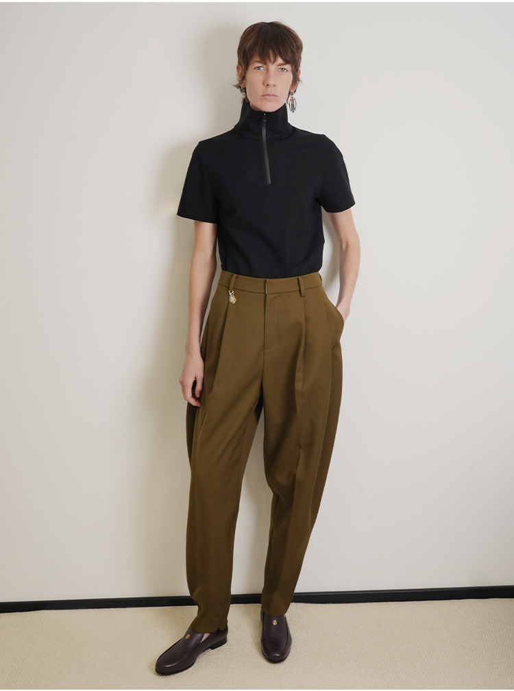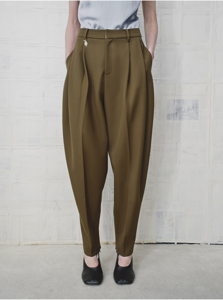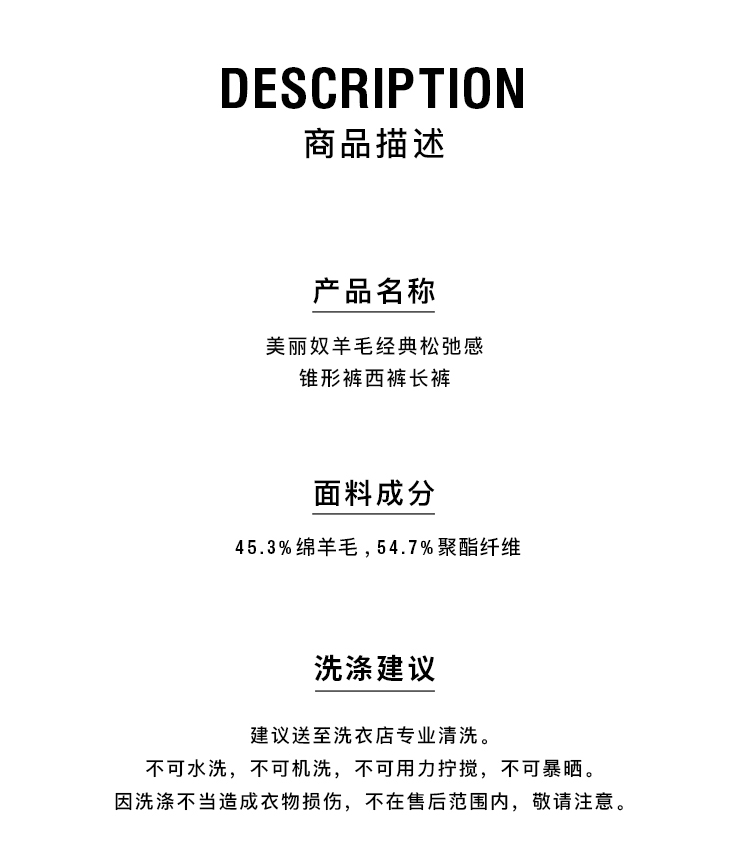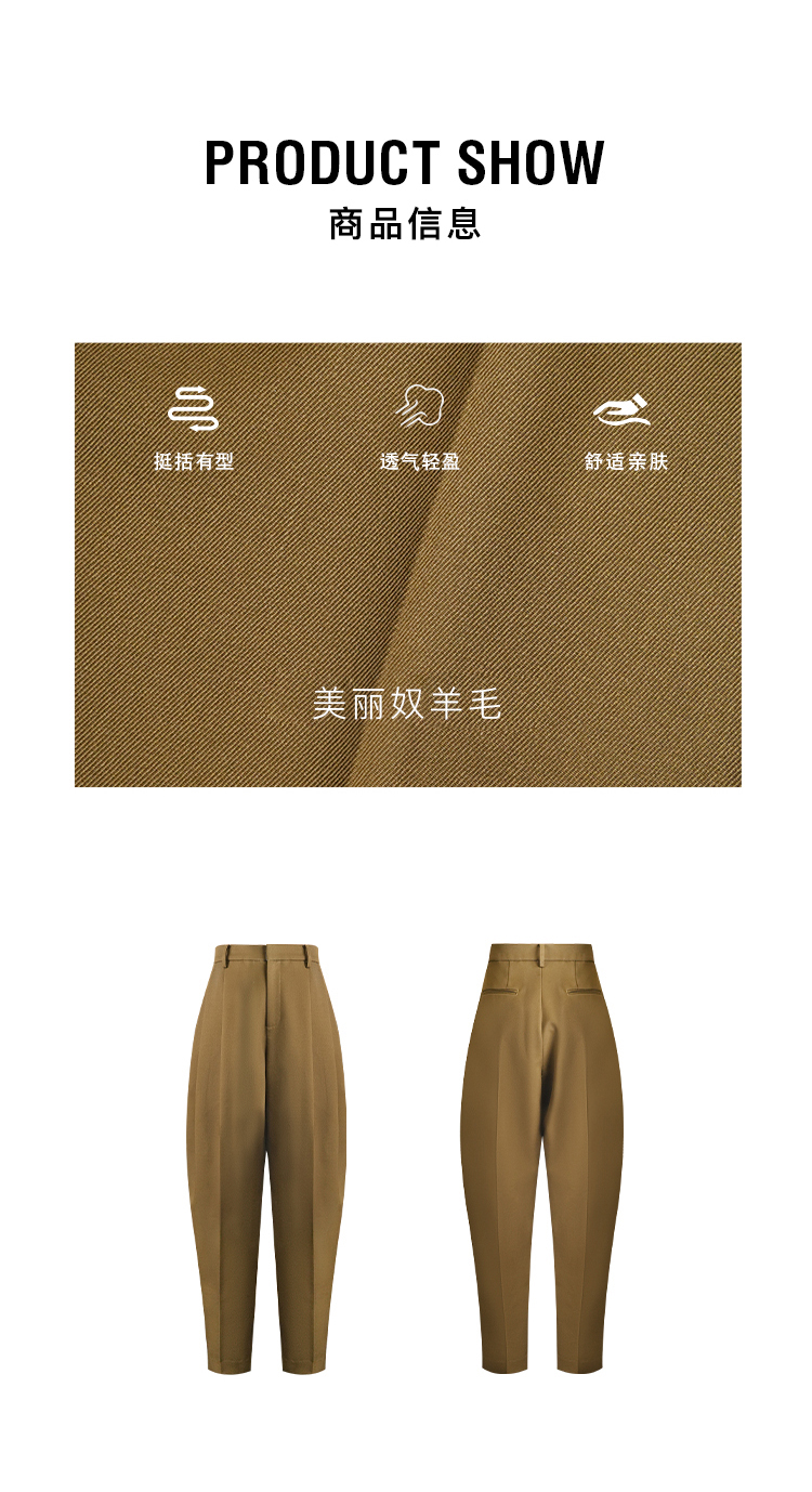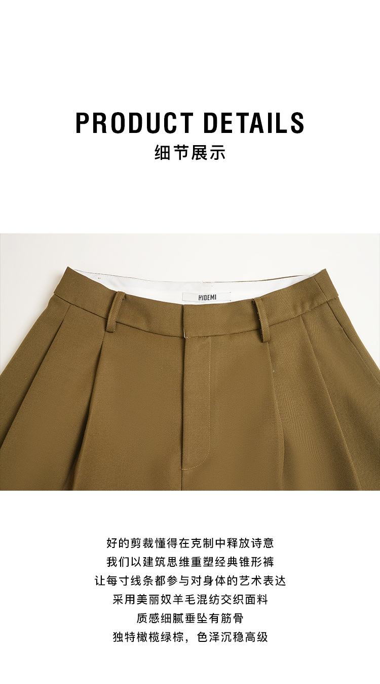 HIDEMI 美丽奴羊毛经典松弛感锥形裤西裤长裤