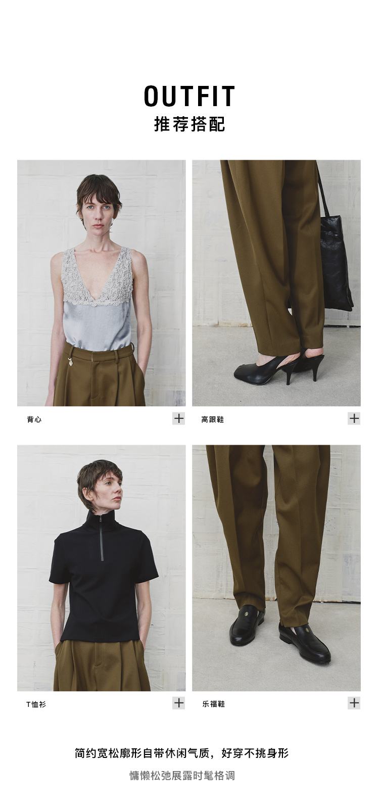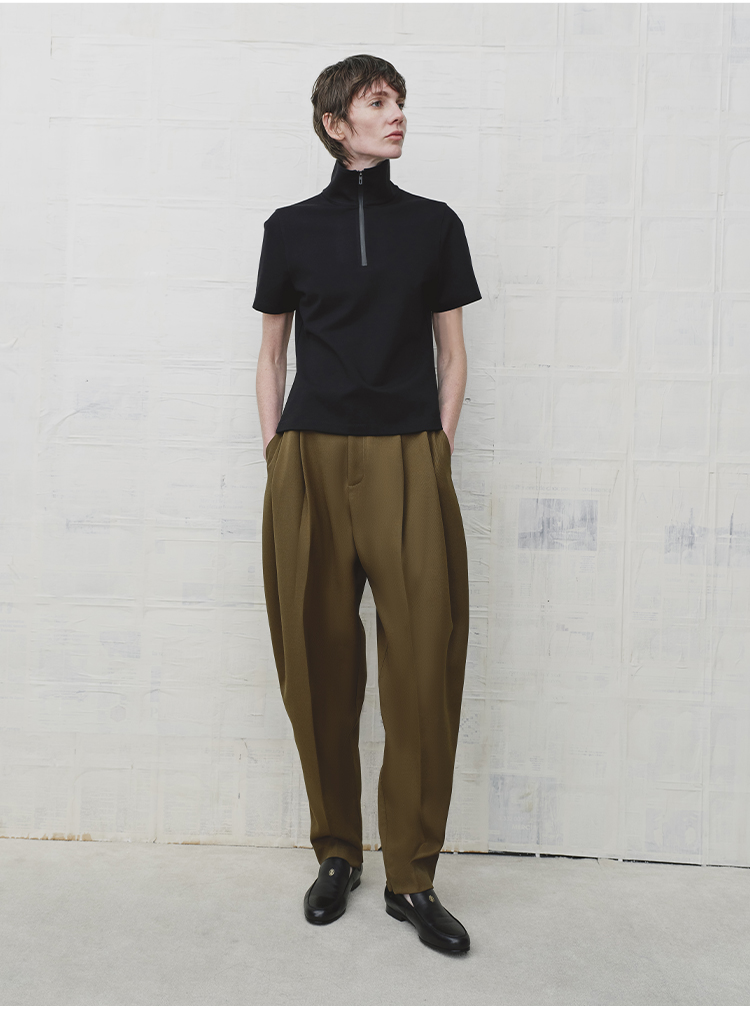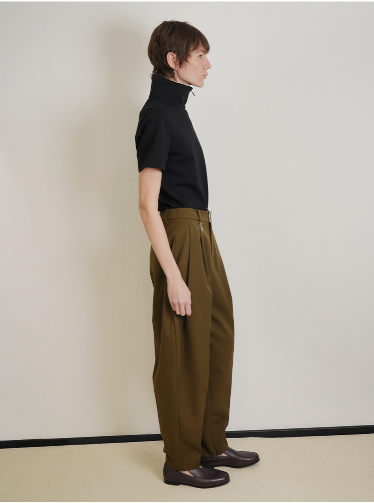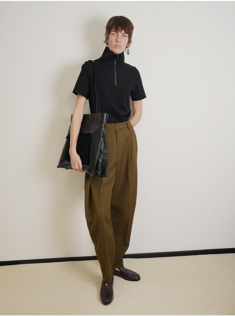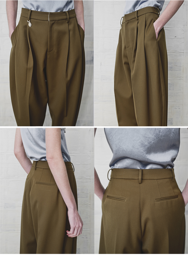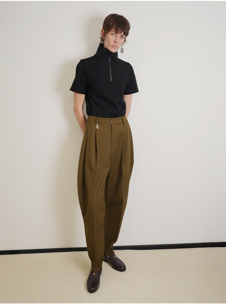 HIDEMI 美丽奴羊毛经典松弛感锥形裤西裤长裤