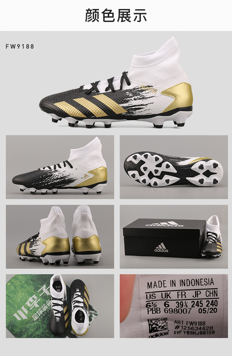 正品ADIDAS阿迪达斯猎鹰高帮20.3中端MG男子足球鞋FW9188