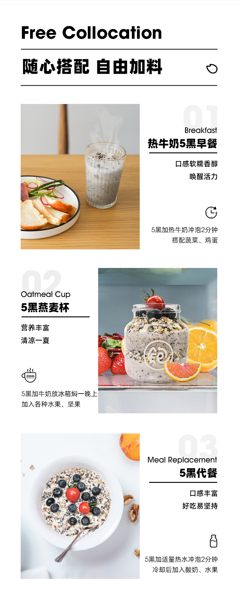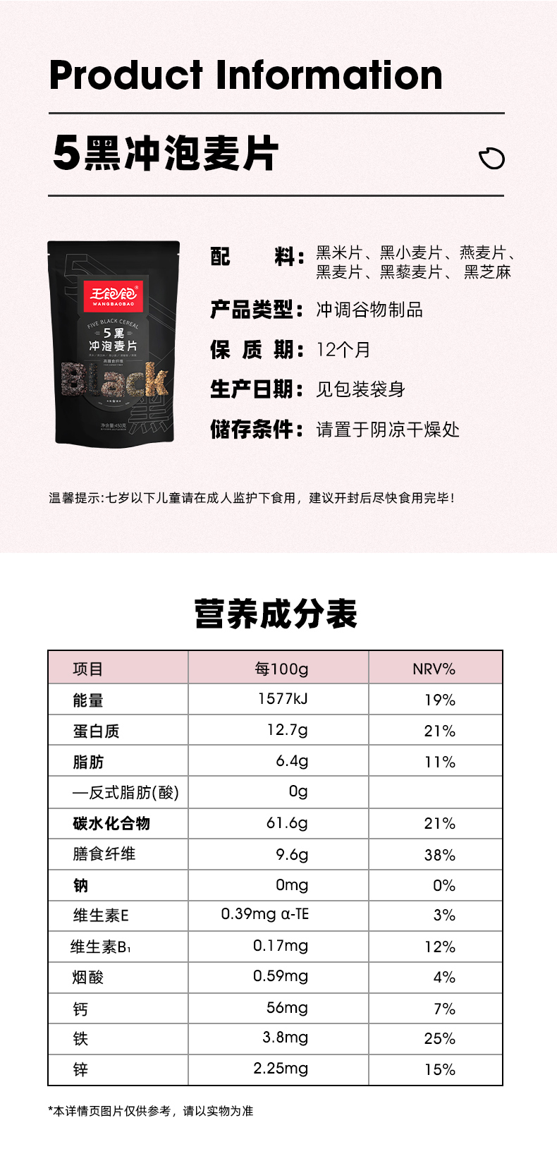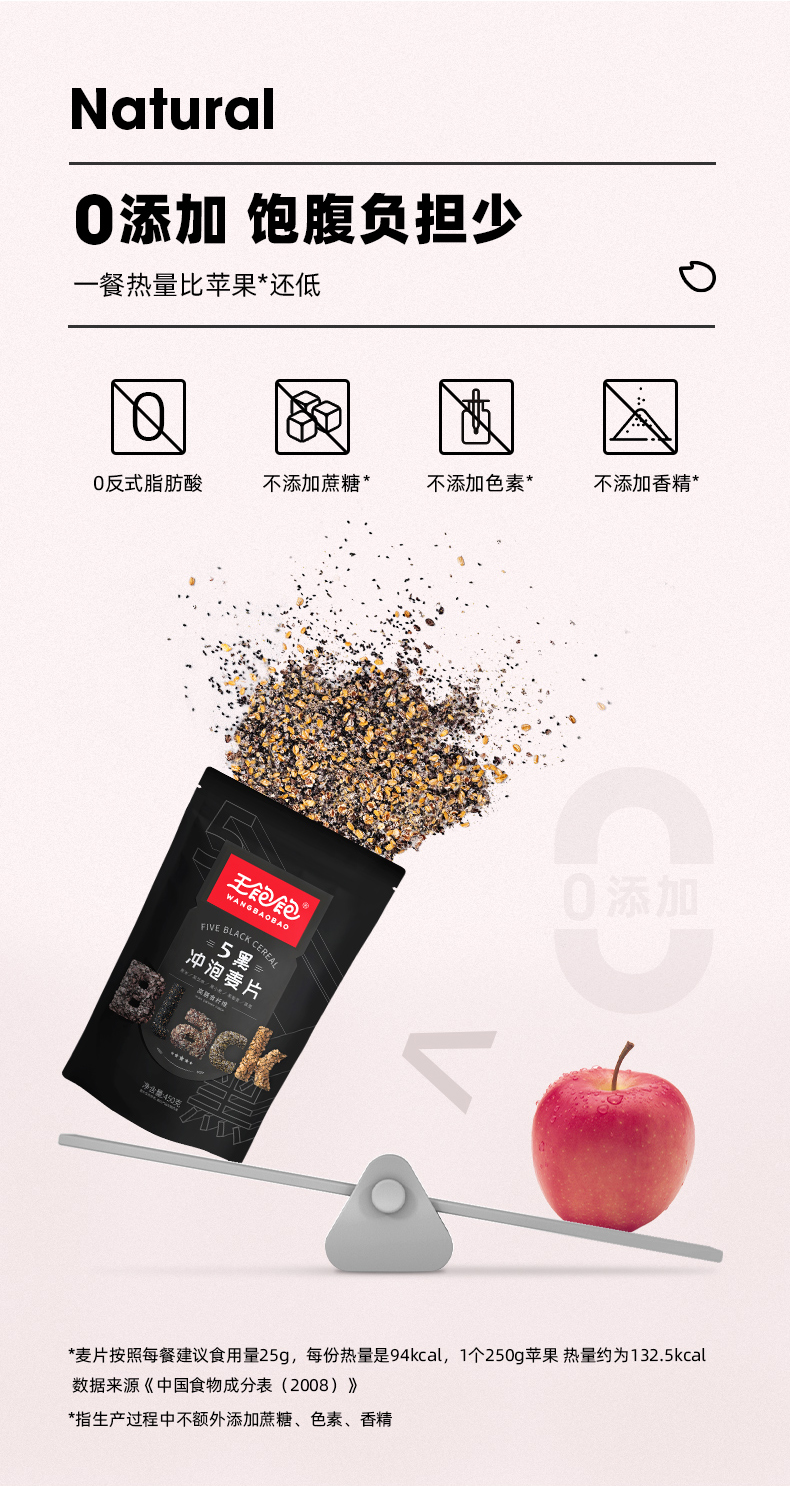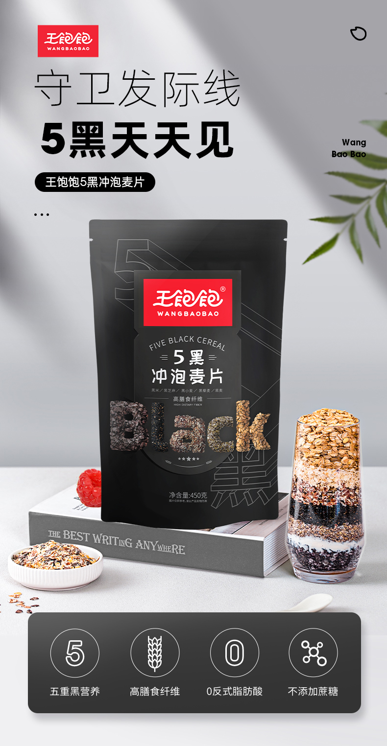 王饱饱五黑冲泡麦片&高纤黑麦片双包组合装谷物早餐代餐即食