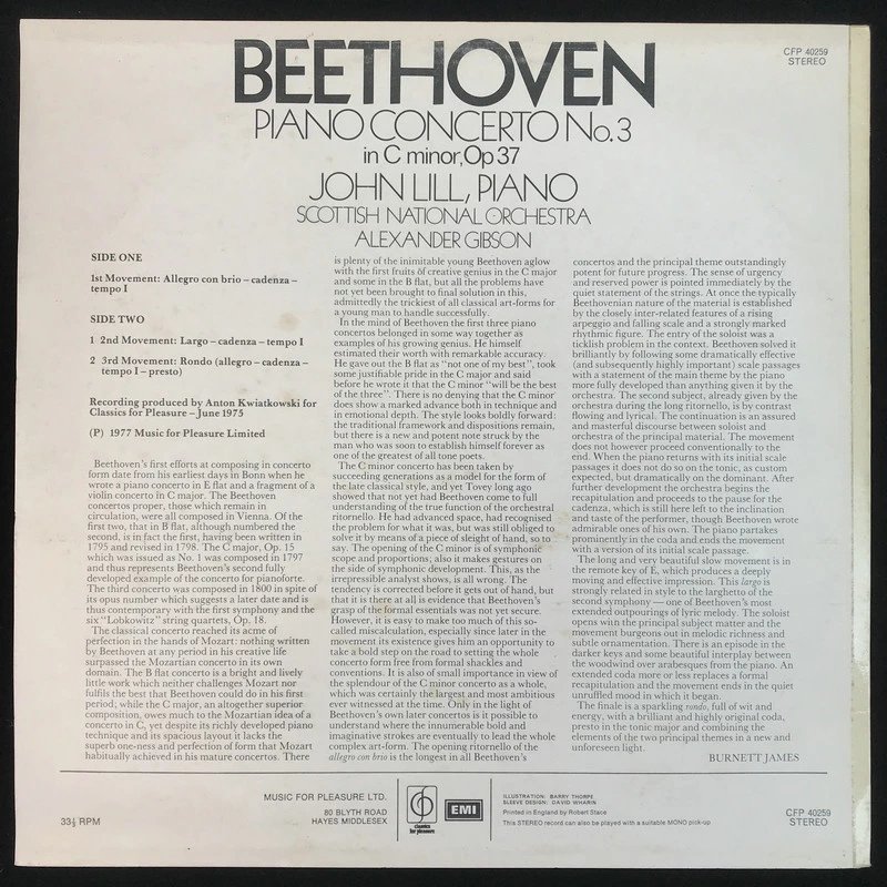 LP黑胶唱片 贝多芬《第三钢琴协奏曲》 苏格兰国家管弦乐团 亚历山大·吉布森指挥 钢琴:约翰·利尔