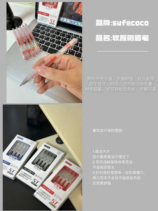 🔺【sufecoco软握中性笔3盒装】🔺1、简洁大方这大概就是🌈风格设计理念了🔺2、写字流畅笔珠非常灵活✨不会拖泥带水