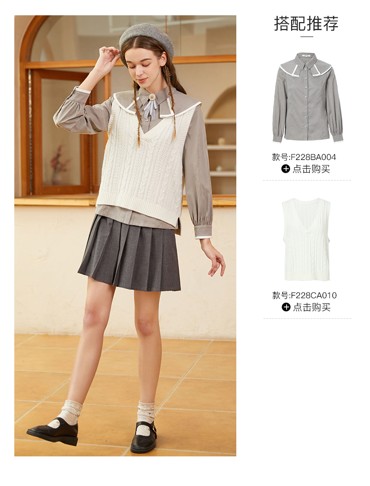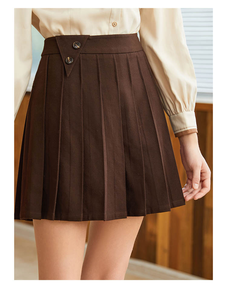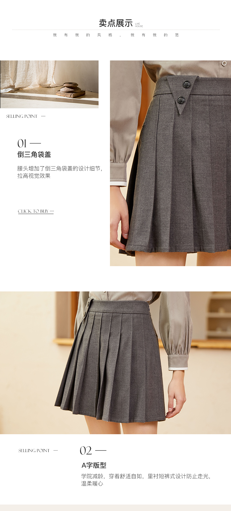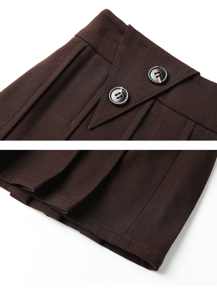 Famecoco范可儿羊毛百褶短裙内衬防走光a字裙裤显瘦遮胯F228GE003