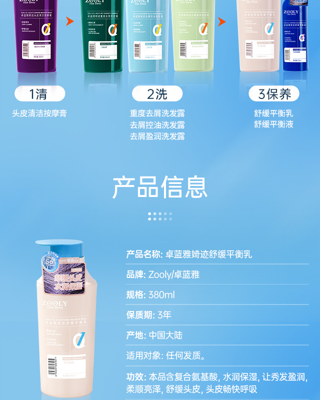 清仓【1件39元】卓蓝雅婍迹平衡乳护发素 舒缓头皮 抚平毛糙 可接触头皮