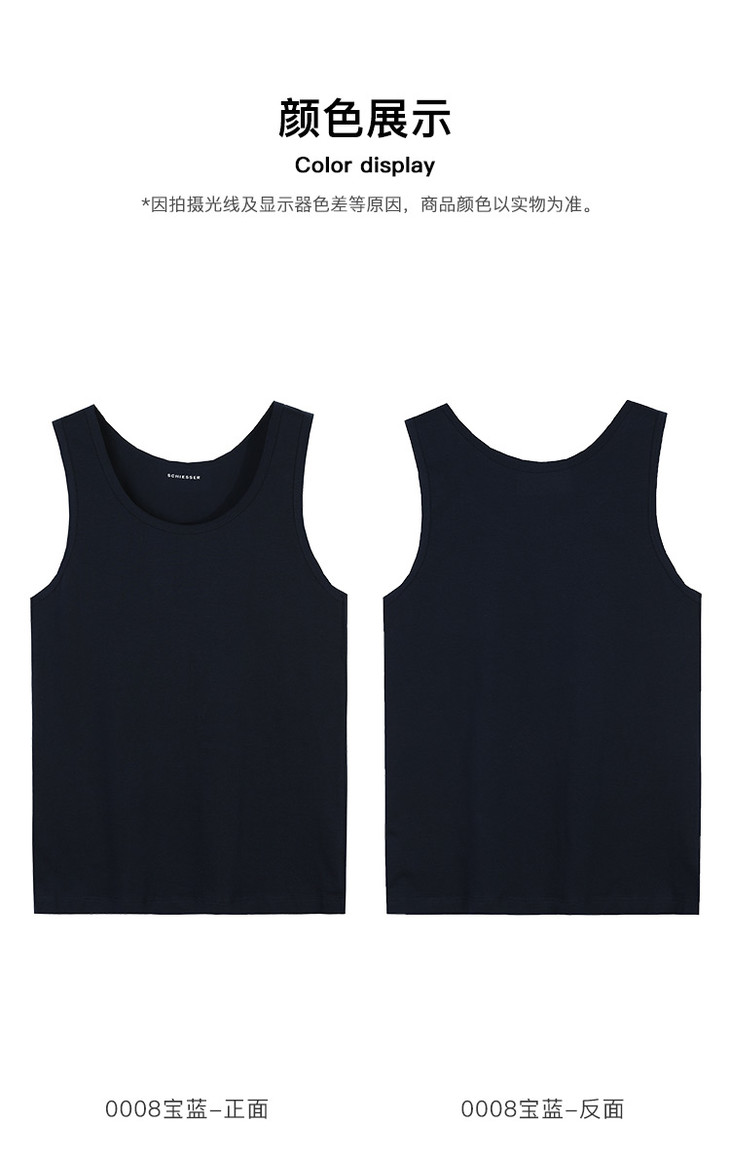 【清仓 不退换 只有M码】SCHIESSER/舒雅男士棉质透气纯色运动健身无袖背心(1包2件同色装)35/5651V