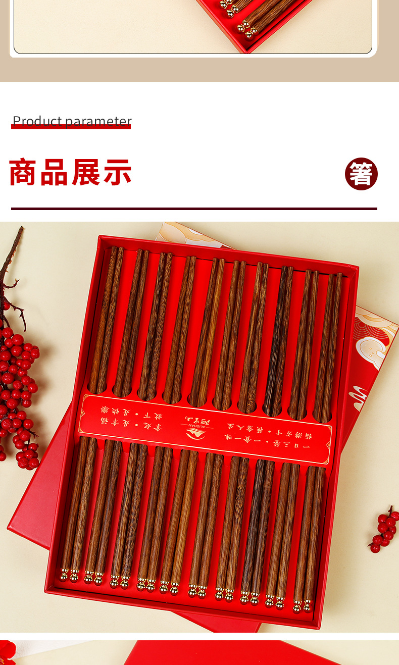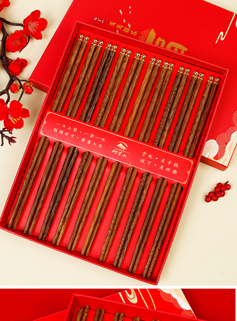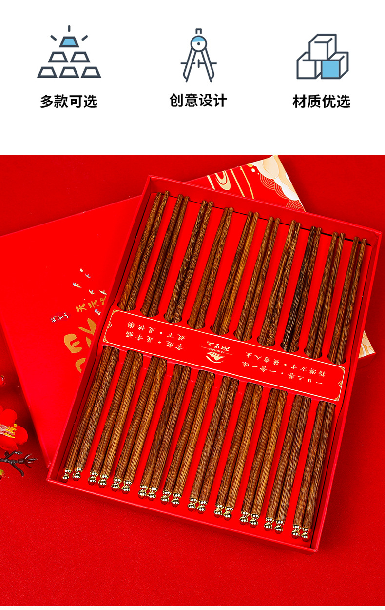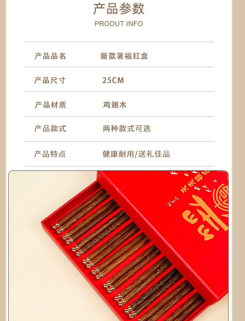 【高级大气持久耐用❗️精品包装送礼佳品】国潮礼品筷子套装鸡翅木筷子家用实木龙珠无漆无蜡红色箸福礼盒装。jb