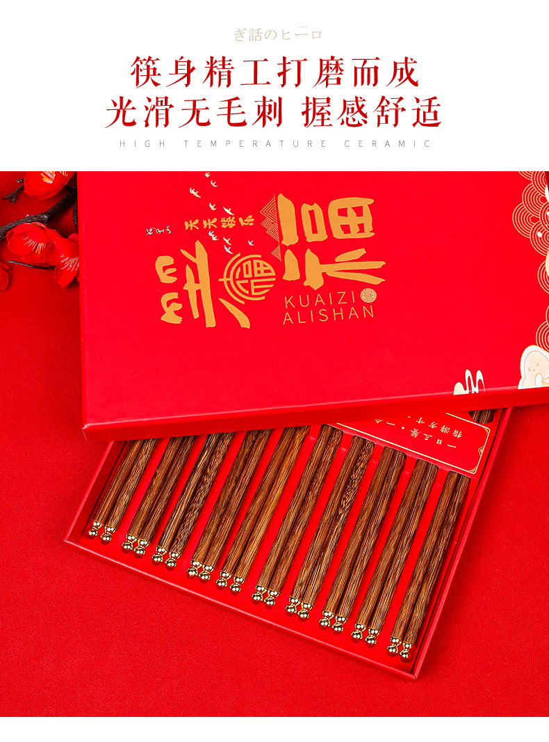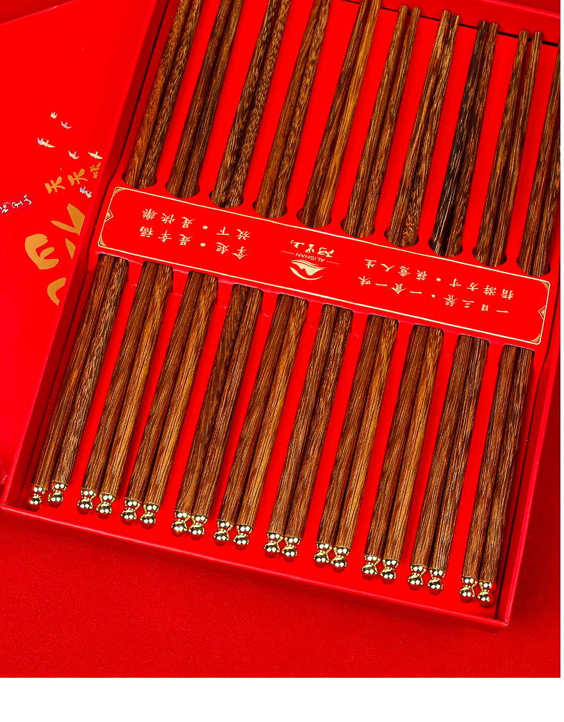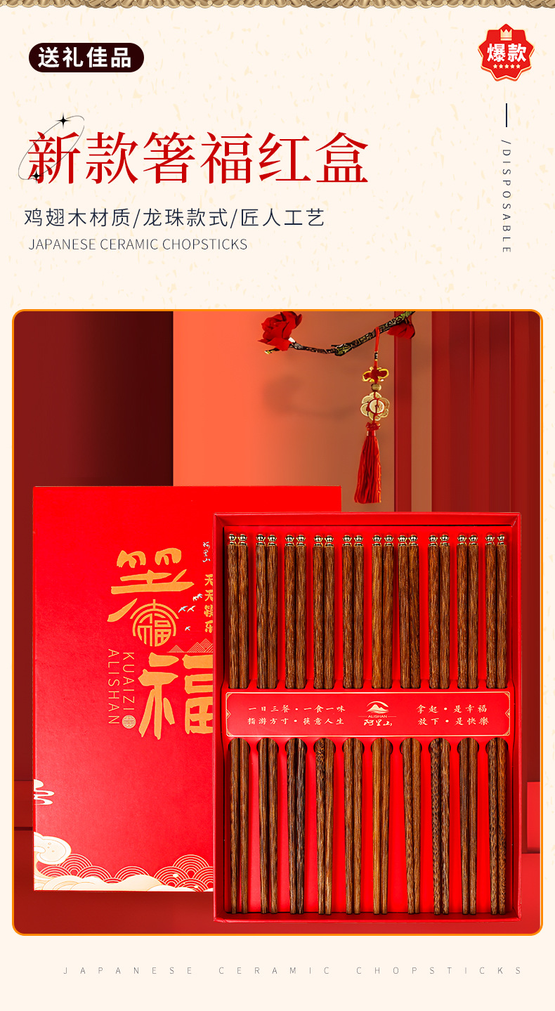 【高级大气持久耐用❗️精品包装送礼佳品】国潮礼品筷子套装鸡翅木筷子家用实木龙珠无漆无蜡红色箸福礼盒装。jb