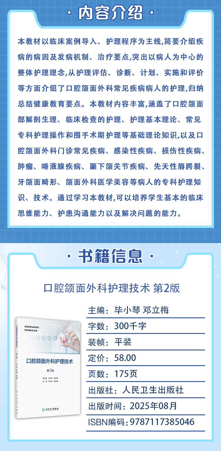 书名:口腔颌面外科护理技术(第2版/创新教材/专科/高职)