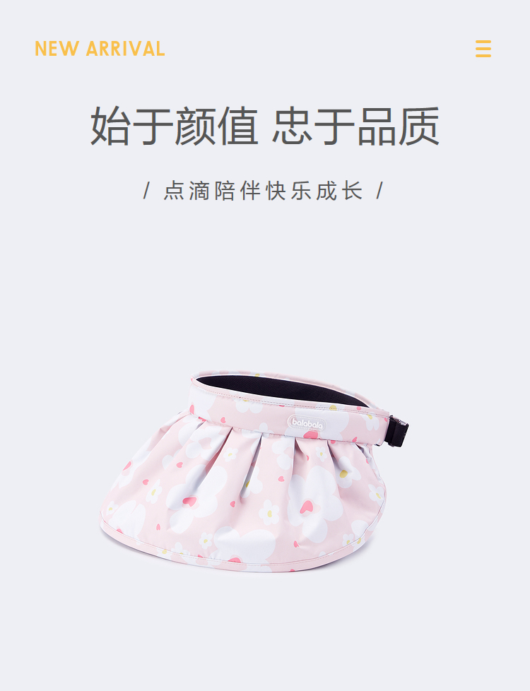 巴拉巴拉儿童帽子女童防晒帽夏季遮阳帽舒适空顶帽宽帽檐便携时尚