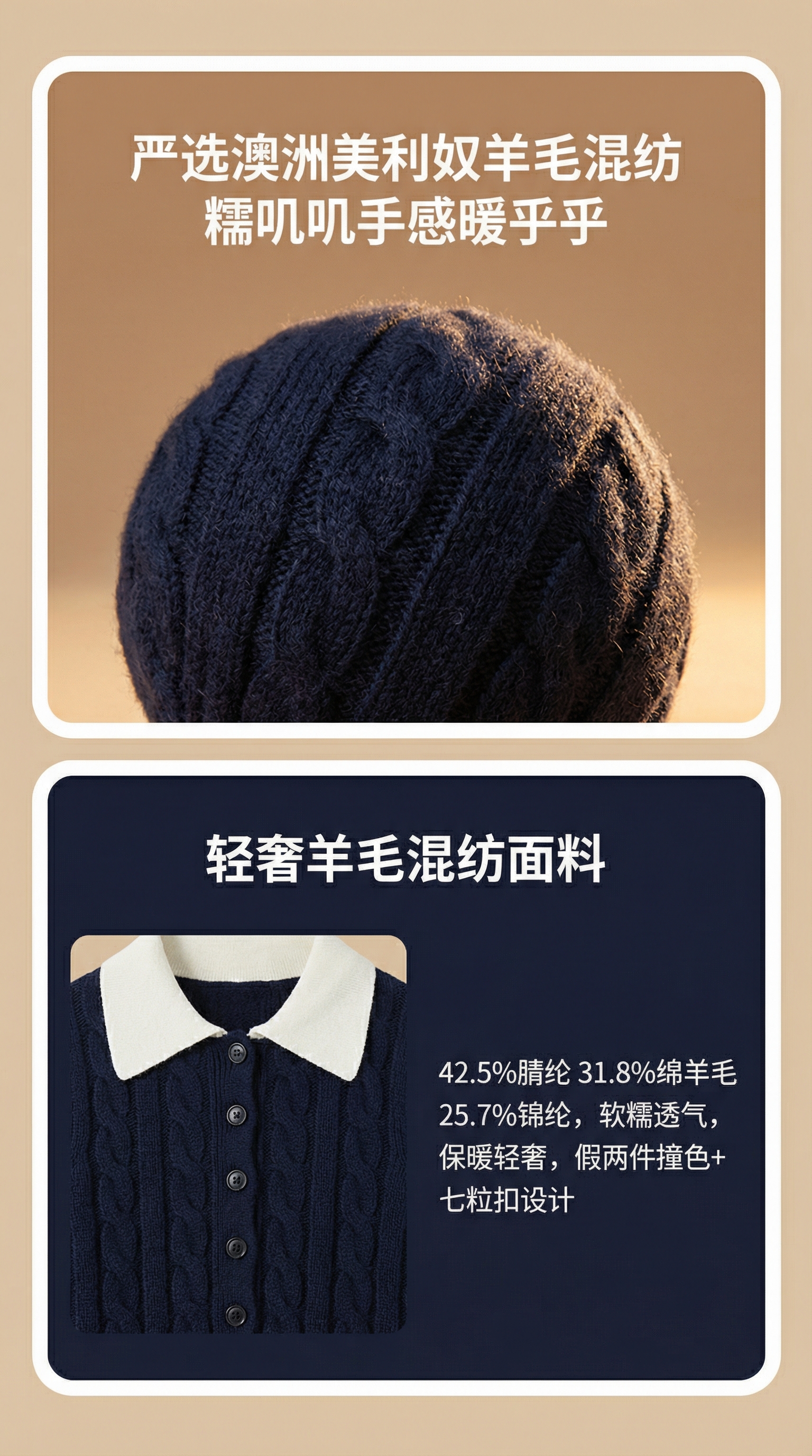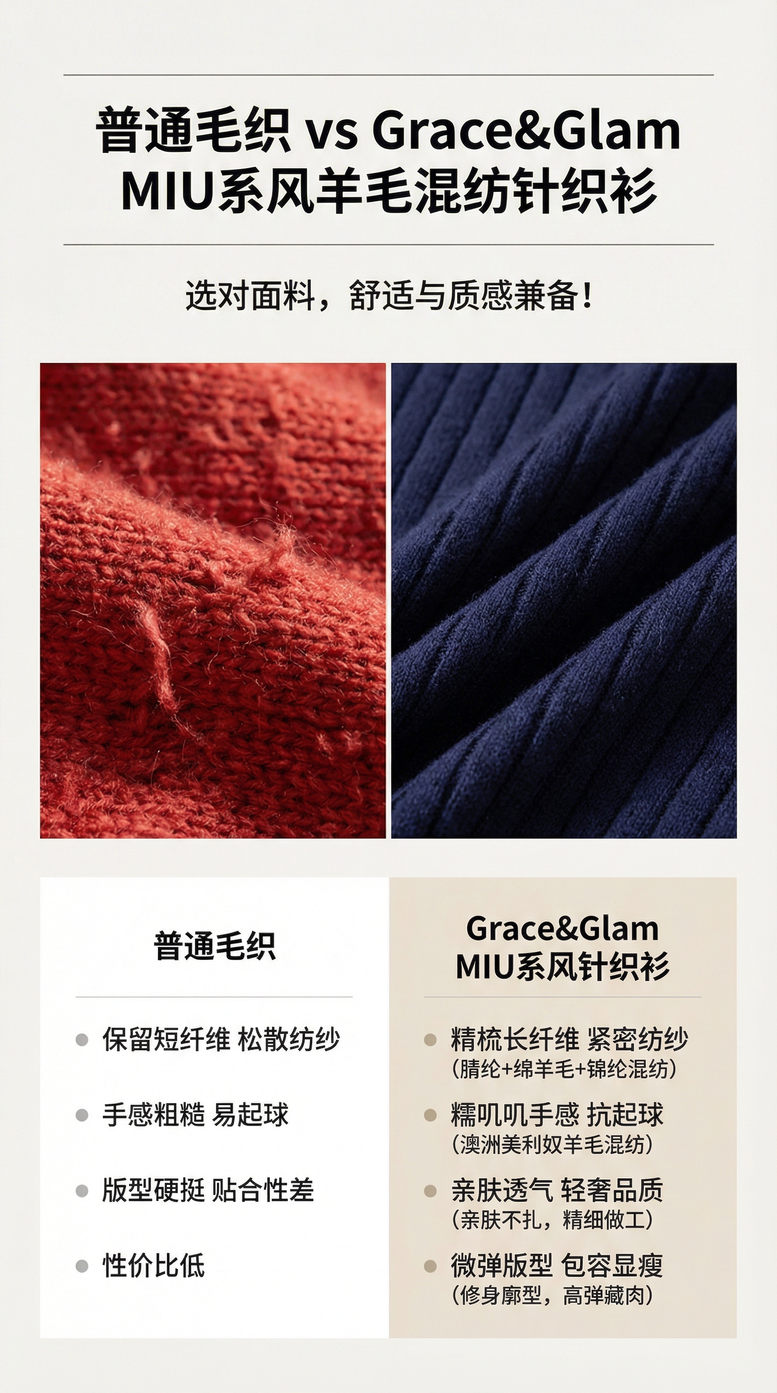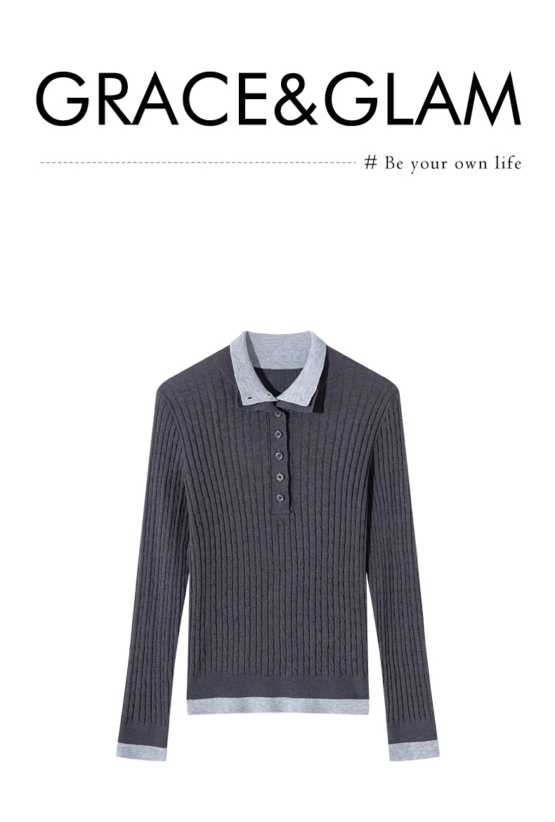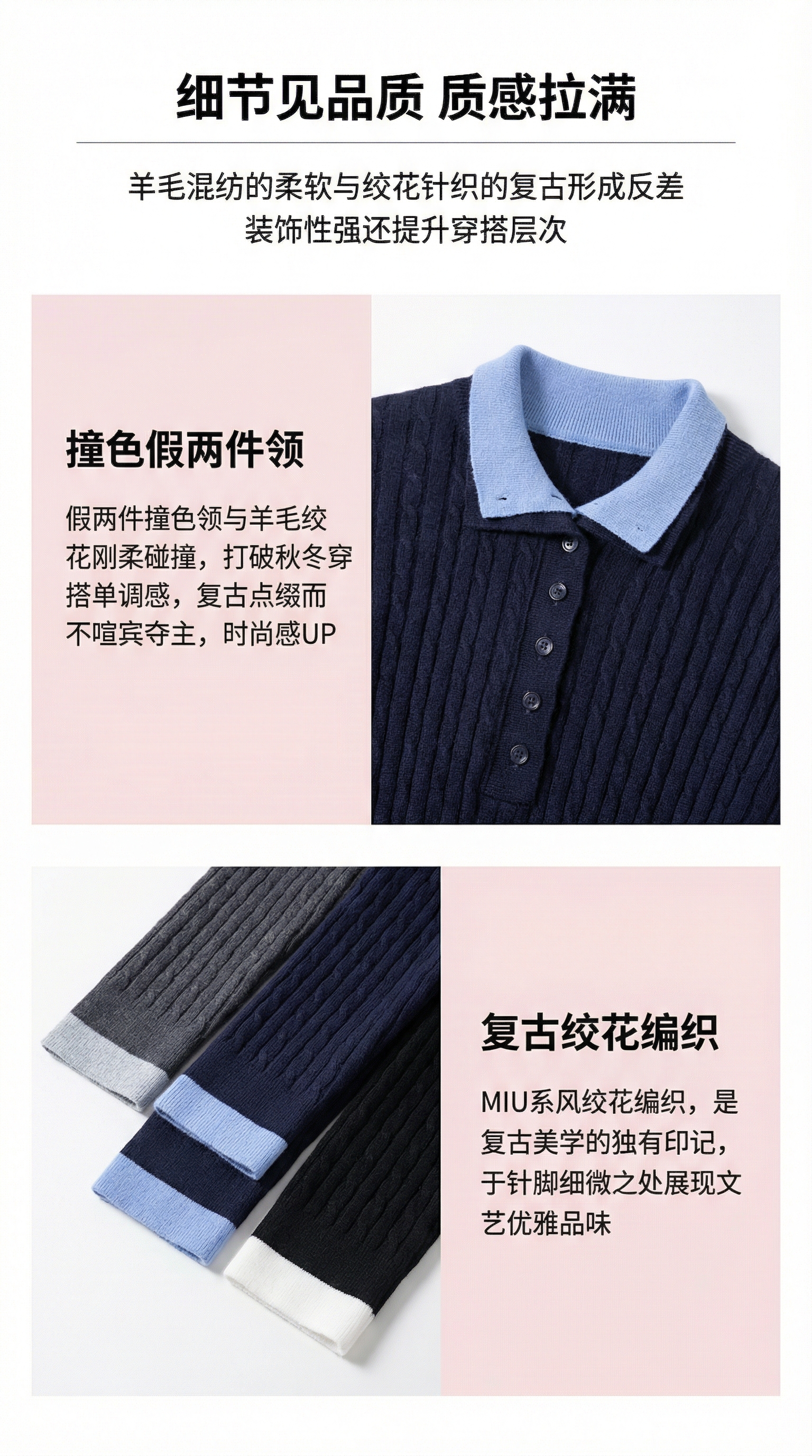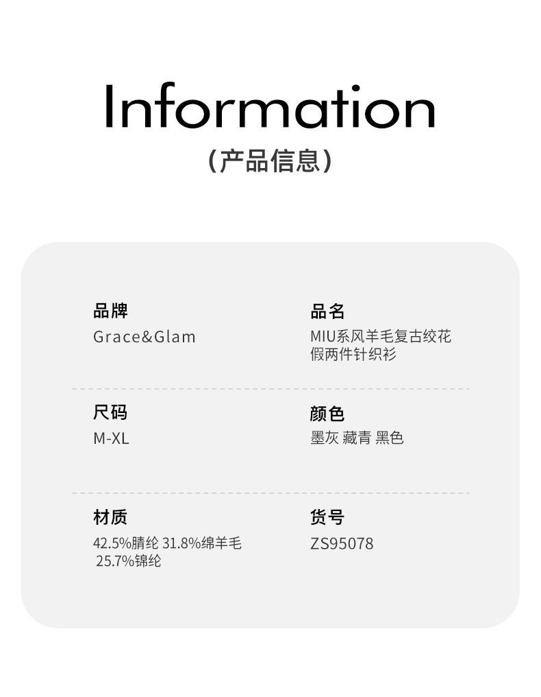Grace&Glam MIU系风羊毛复古绞花假两件针织衫 法式复古时尚百搭撞色休闲通勤