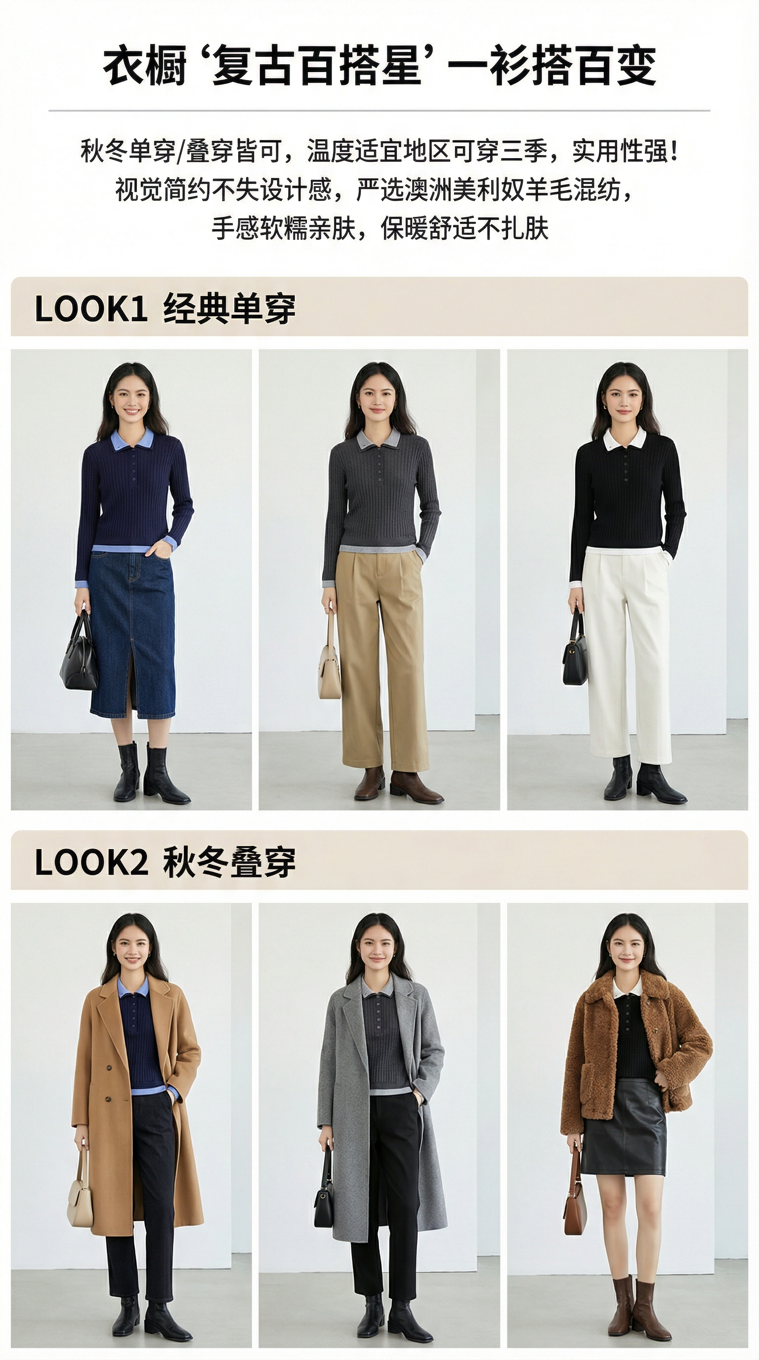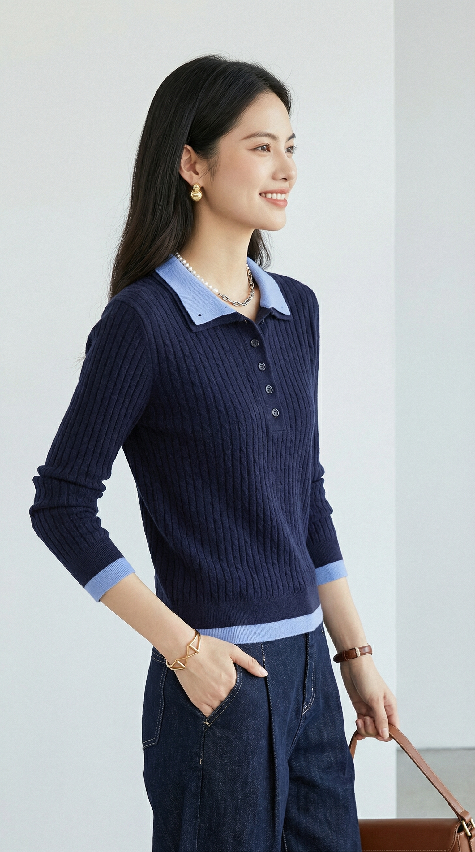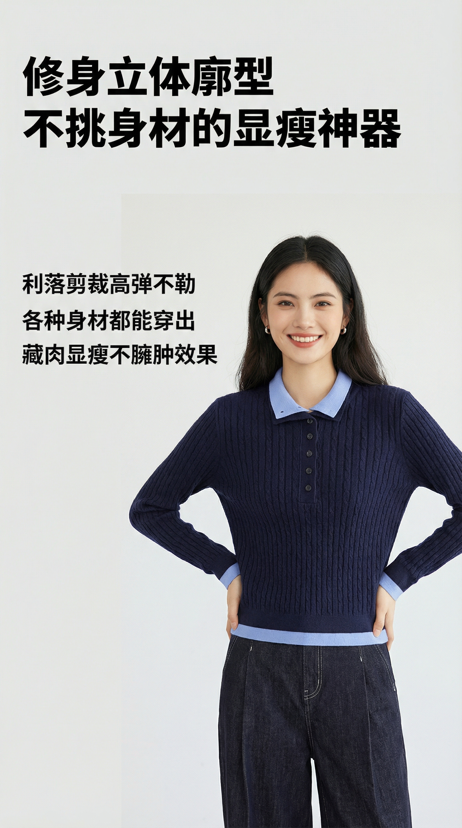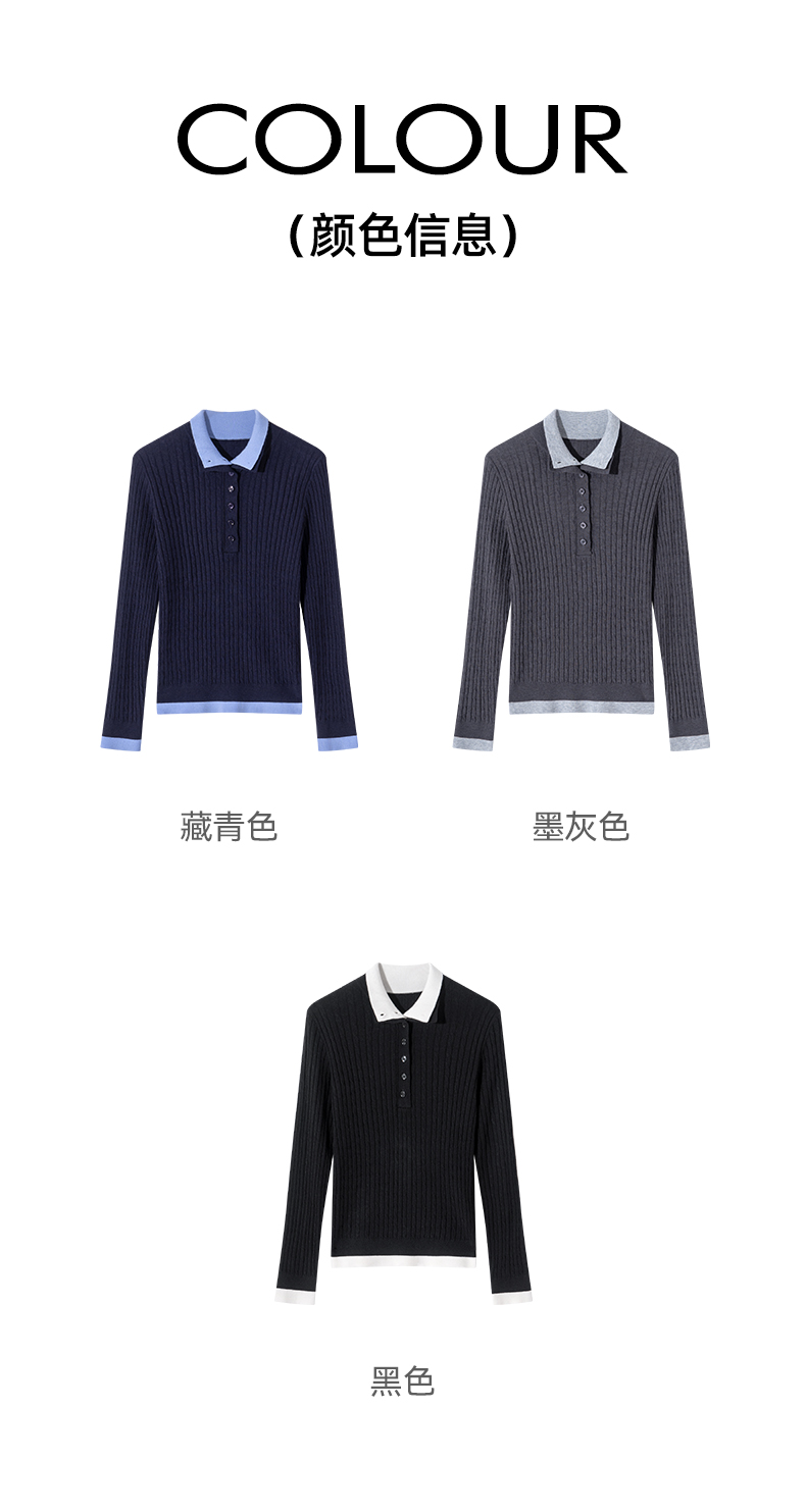 Grace&Glam MIU系风羊毛复古绞花假两件针织衫 法式复古时尚百搭撞色休闲通勤
