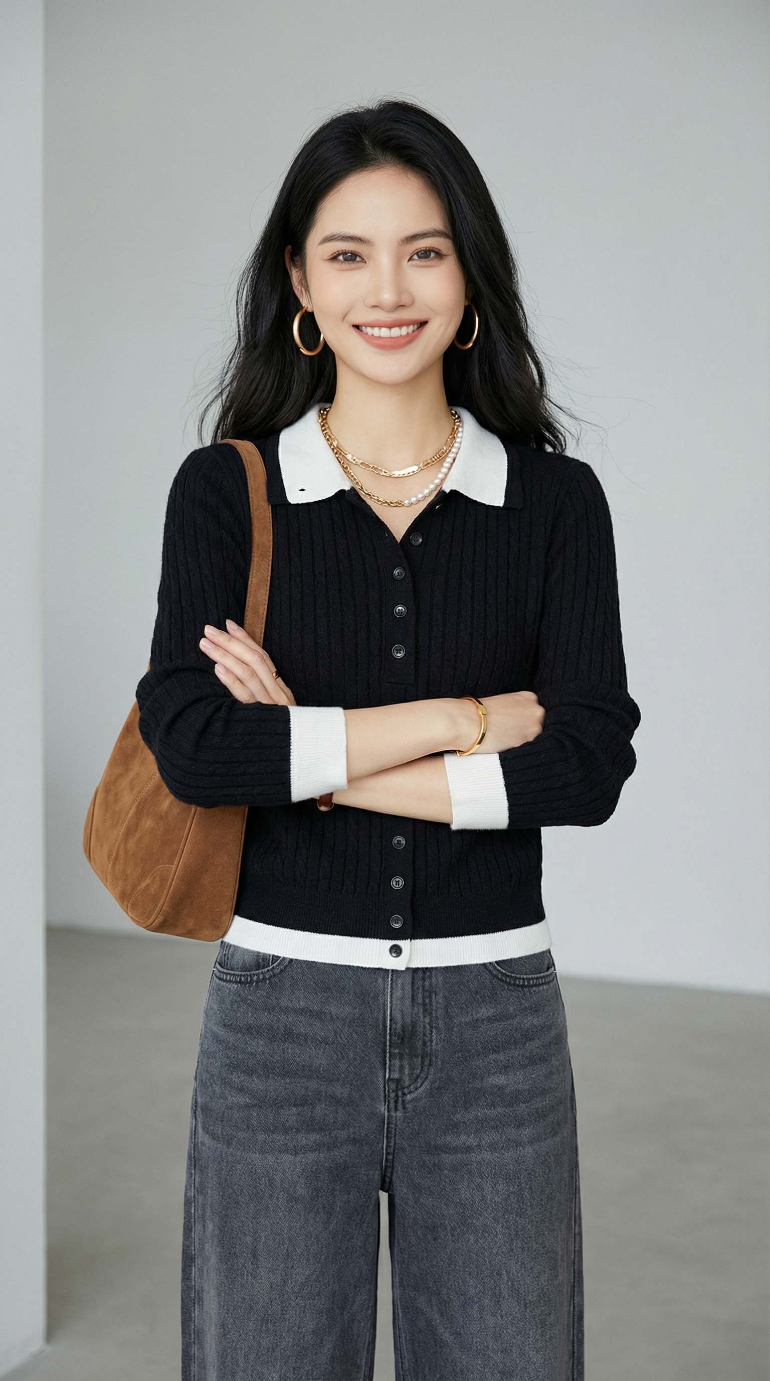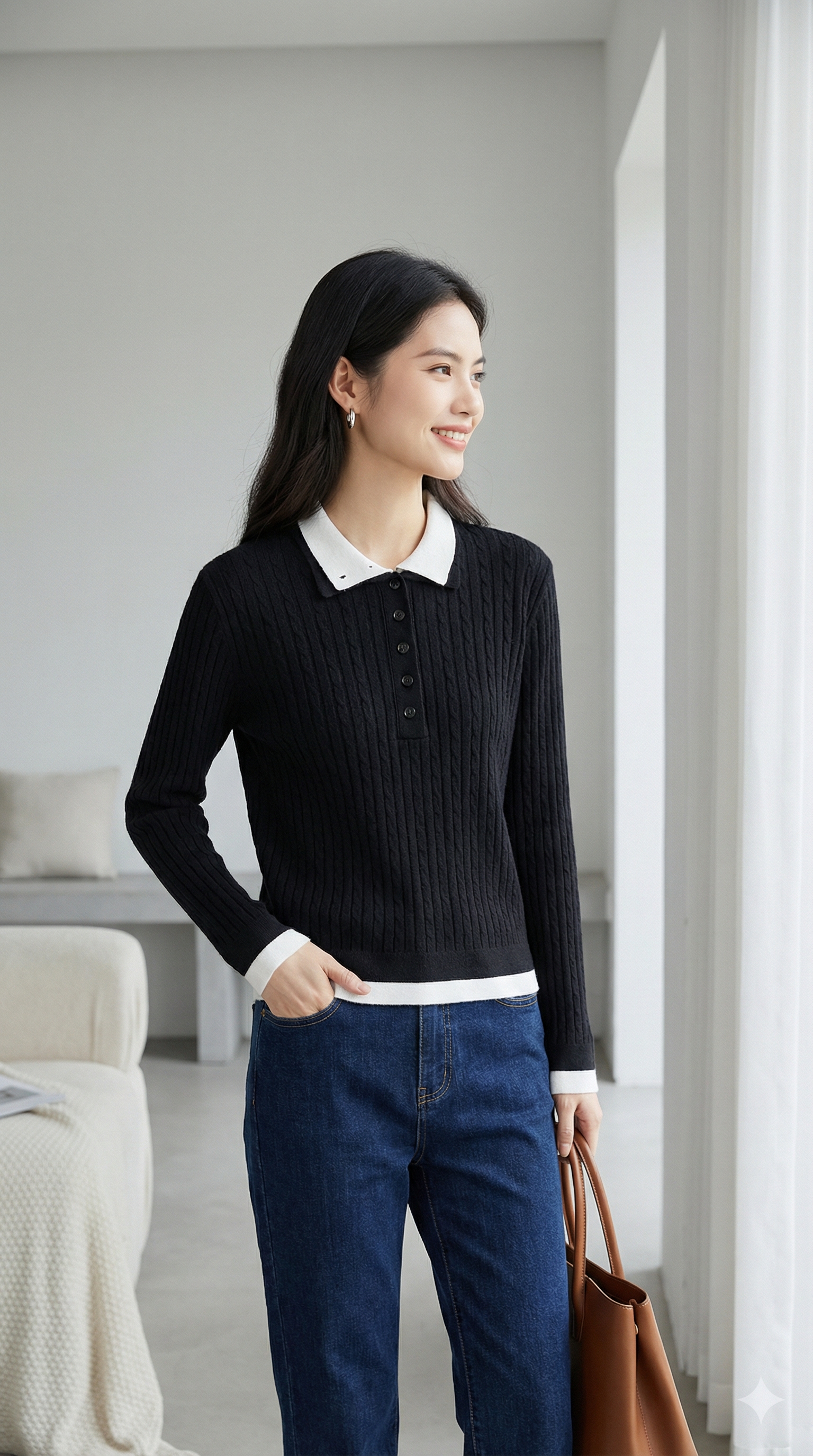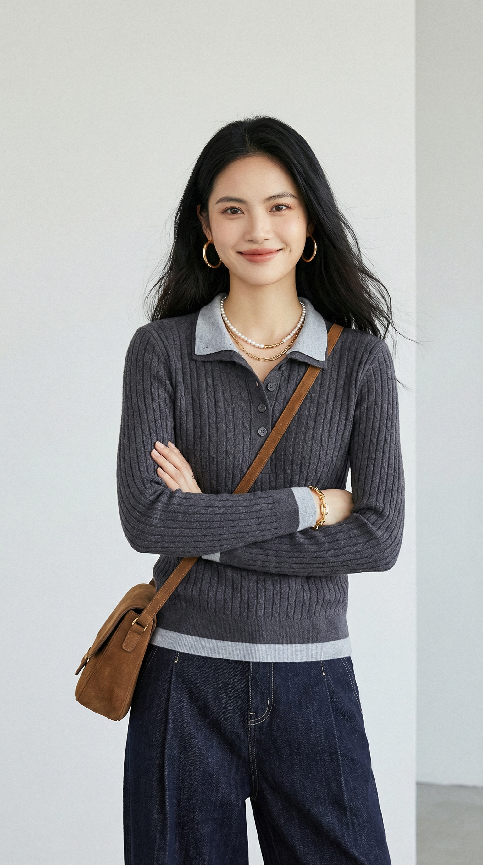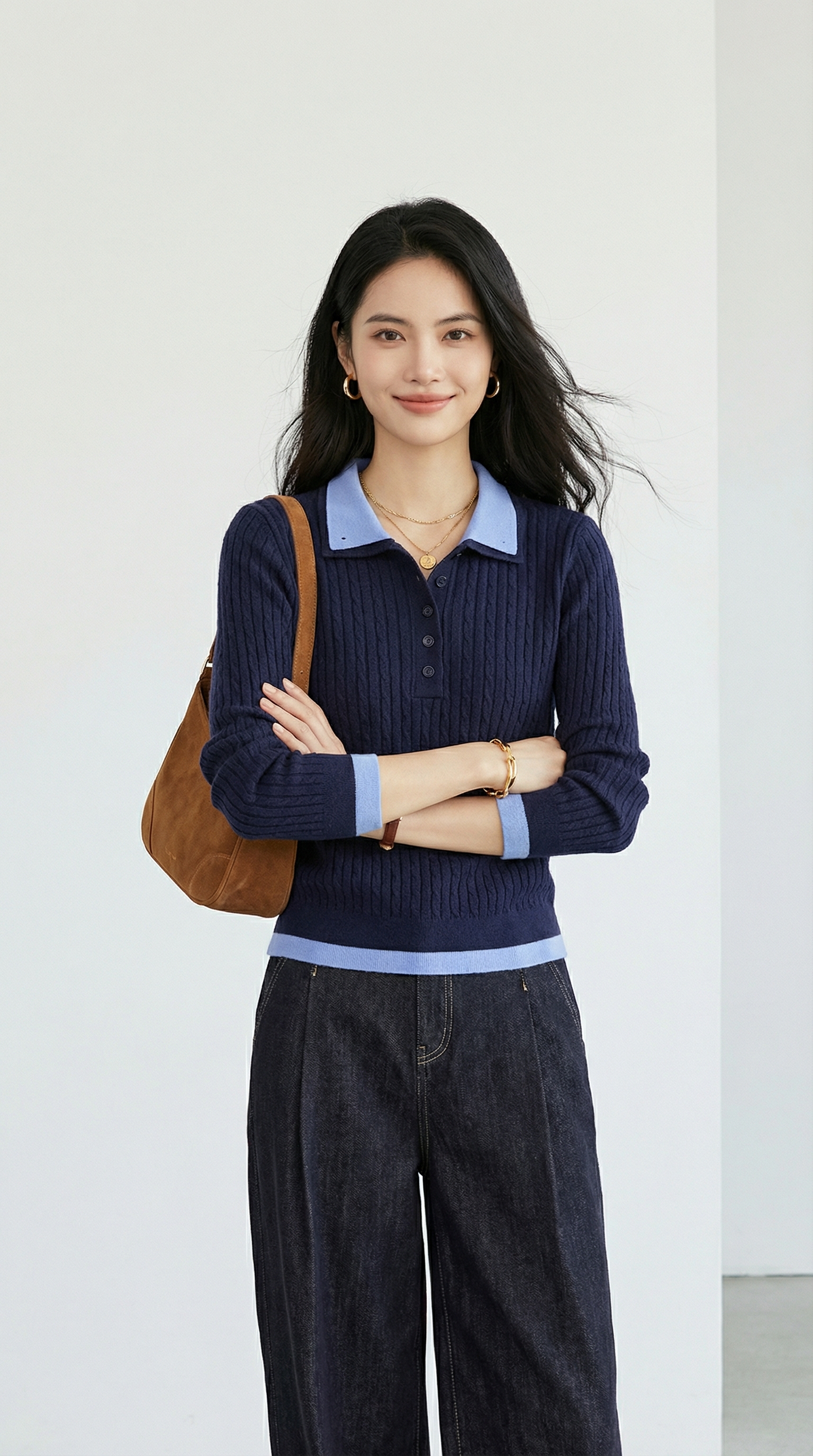 Grace&Glam MIU系风羊毛复古绞花假两件针织衫 法式复古时尚百搭撞色休闲通勤