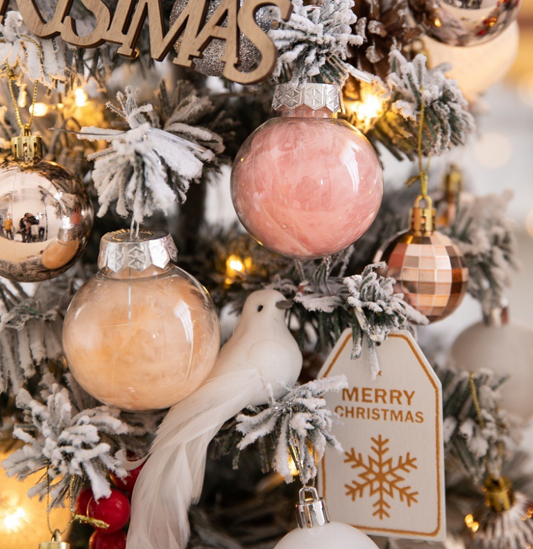 尤其是多了两种颜色的装入羽毛的球球,让圣诞树看起来更有童话感。